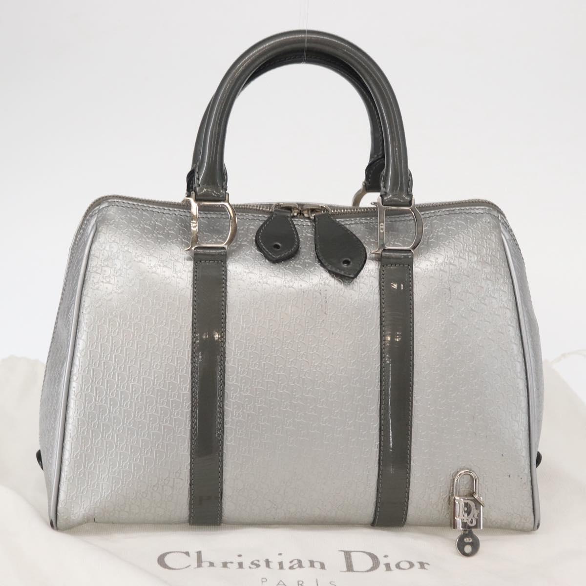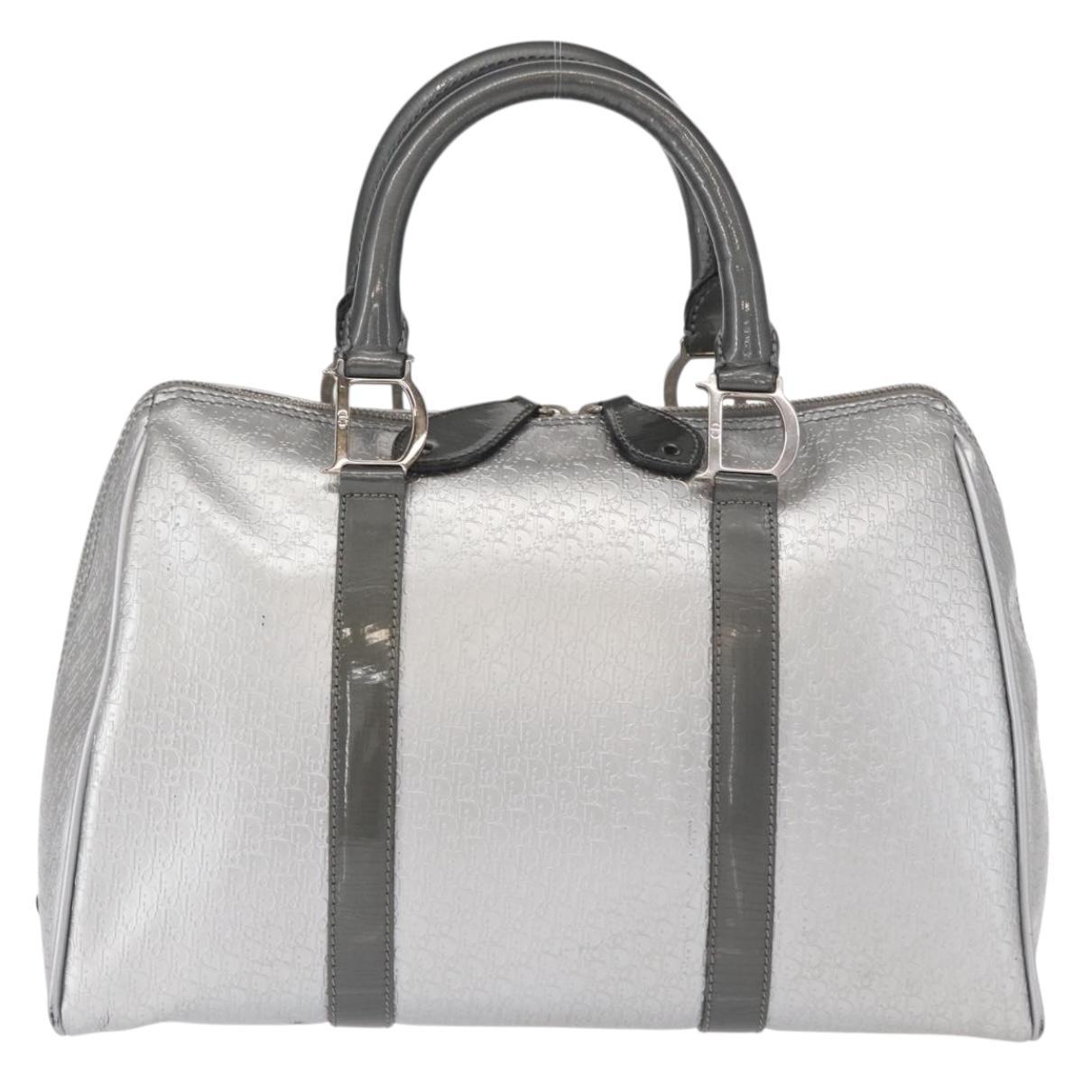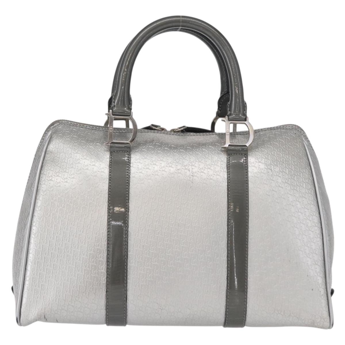 Christian Dior Trotter Canvas Hand Bag PVC Gray Silver Auth yk20143