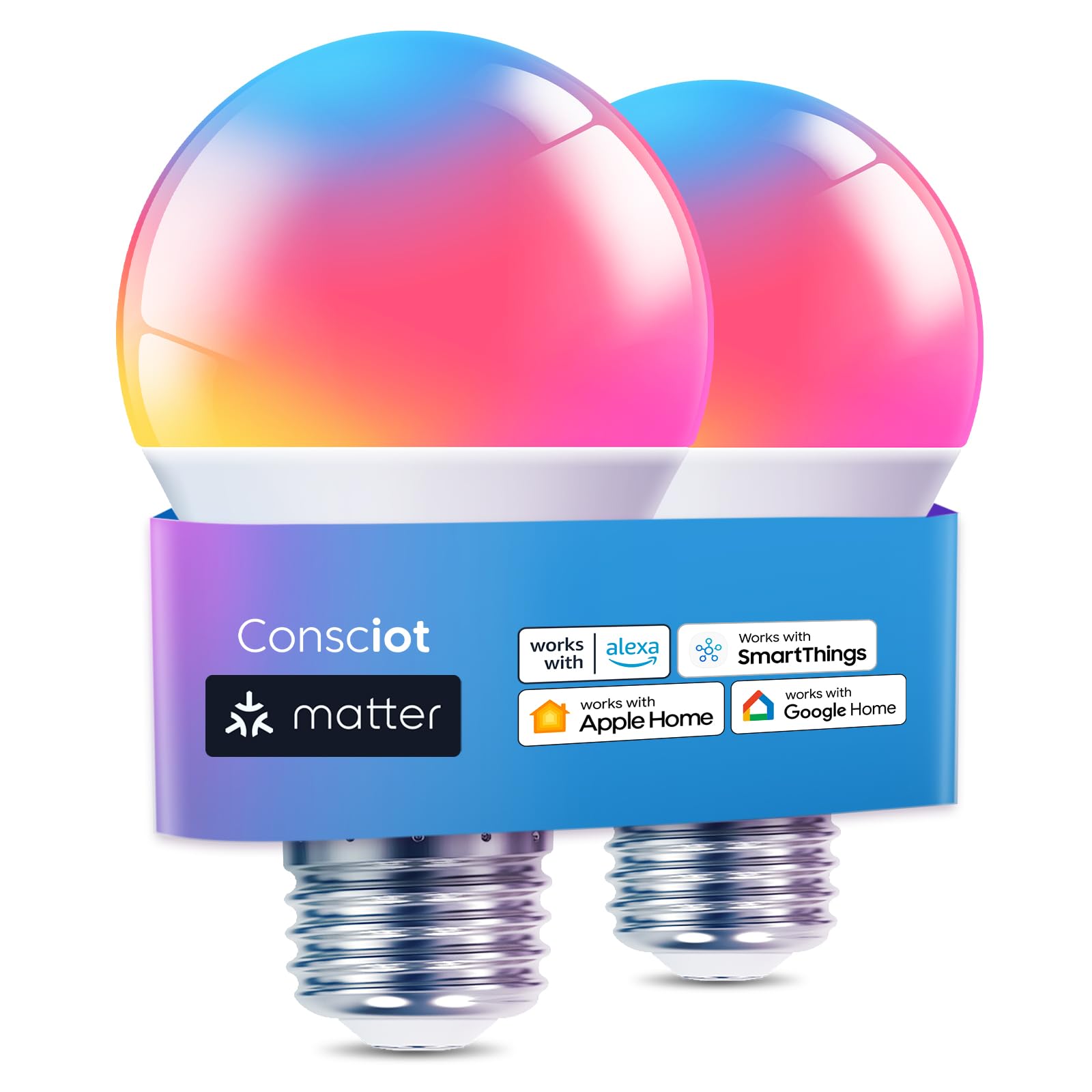 Consciot Matter WiFi Smart Light Bulbs 2 Pack (no remote),