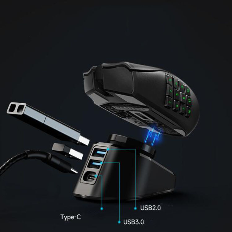 l Dual USB port design, supports two mouse receivers, single port supports USB 3.0 transfer, base powered via type-c connector
