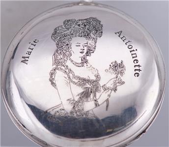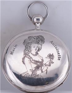 Aesthetic: The back of the heavy silver case features a striking relief engraving of Empress Marie Antoinette.