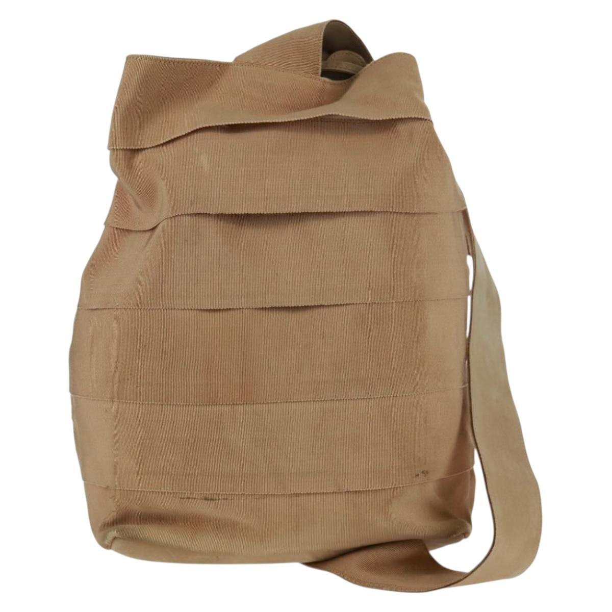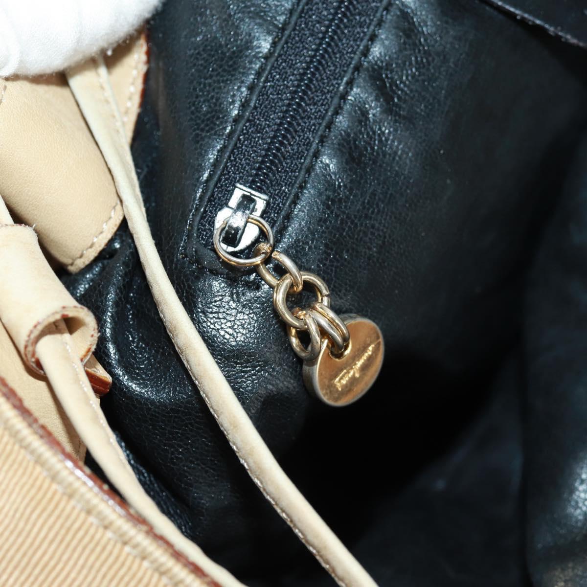 Salvatore Ferragamo Shoulder Bag Canvas Beige Gold Auth bs31859