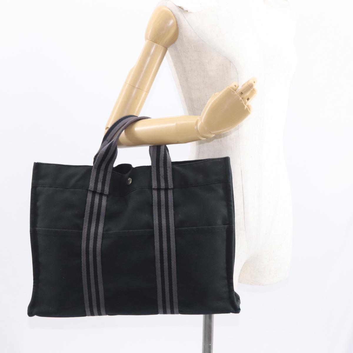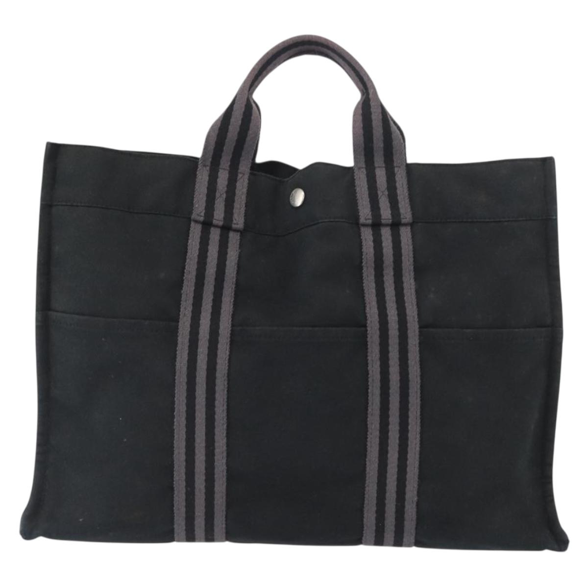 HERMES Fourre Tout MM Hand Bag Canvas Black Auth bs32126