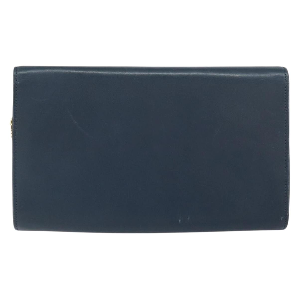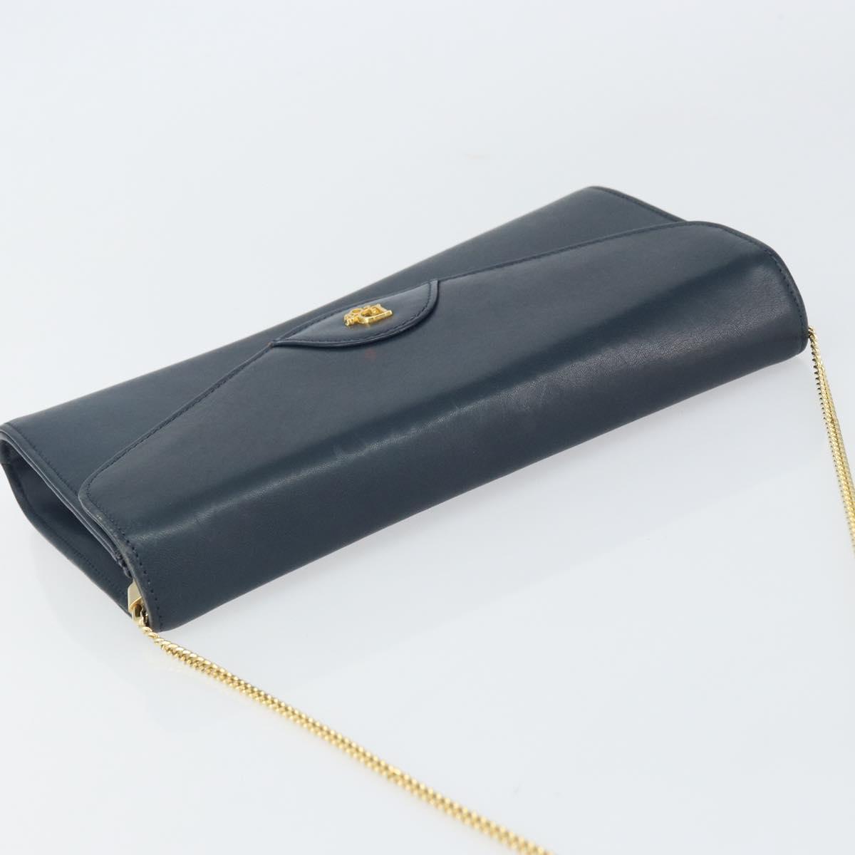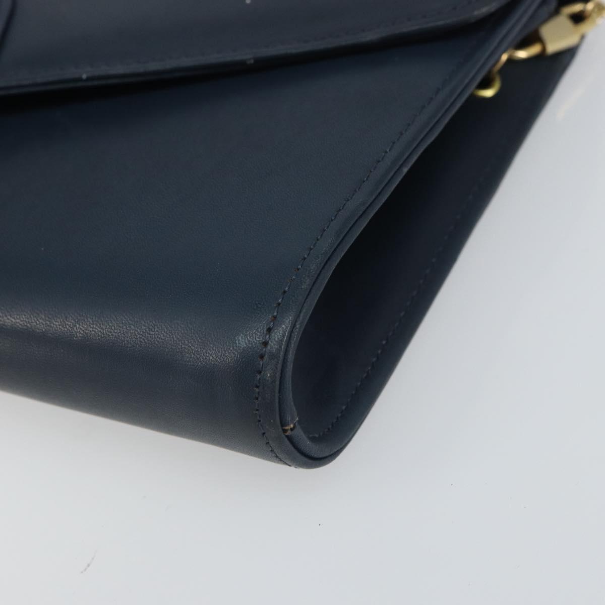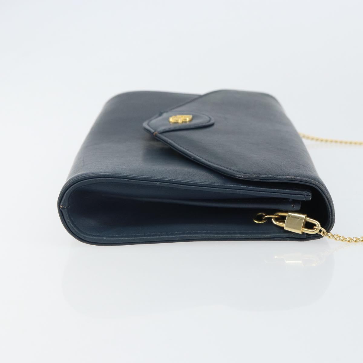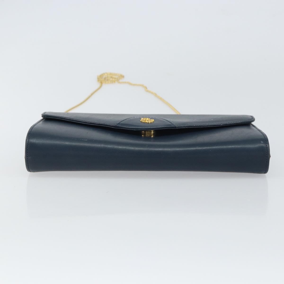 Christian Dior Chain Shoulder Bag Leather Navy Gold Auth BA9389