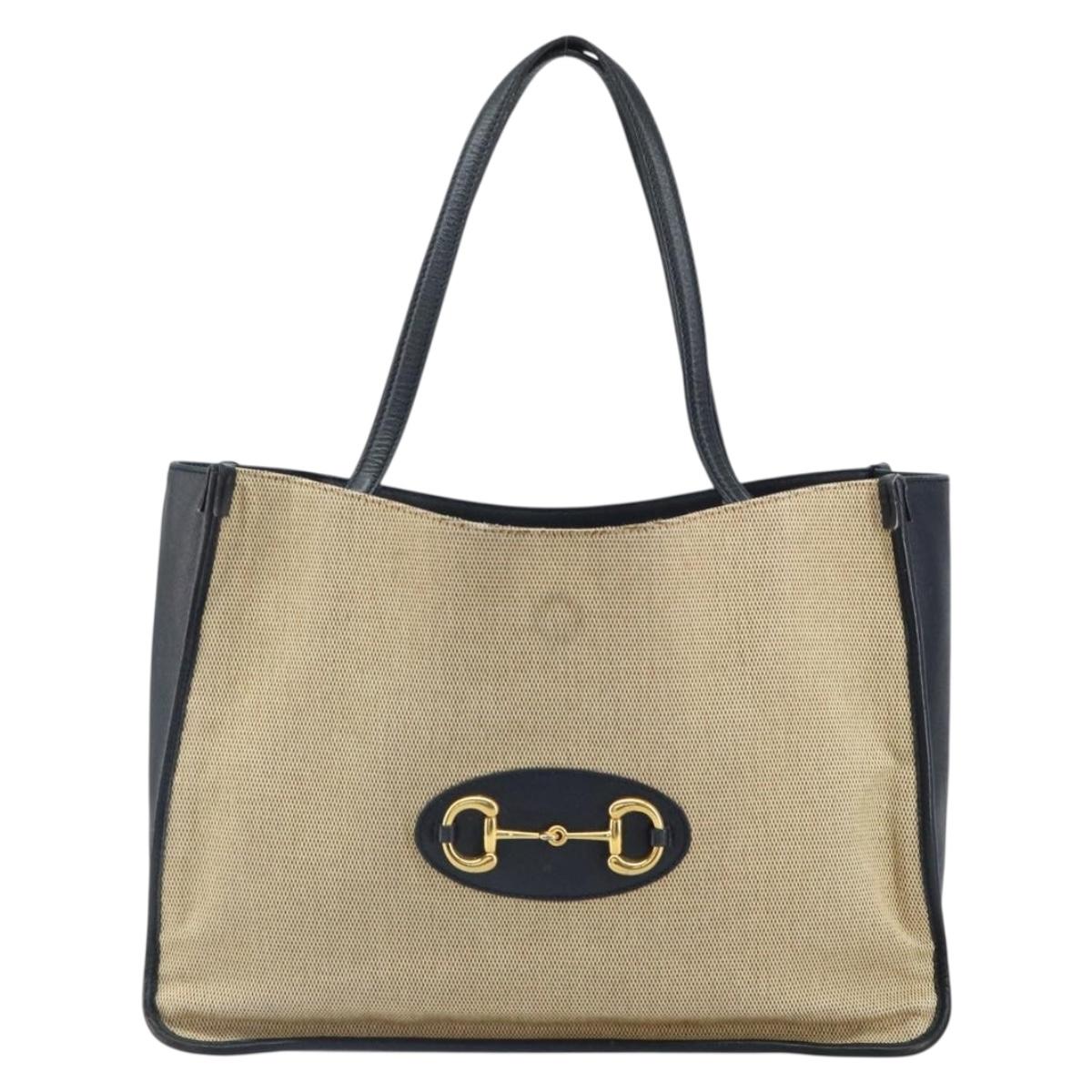 GUCCI Horsebit Tote Bag Canvas Beige Gold 623694 Auth BA9373