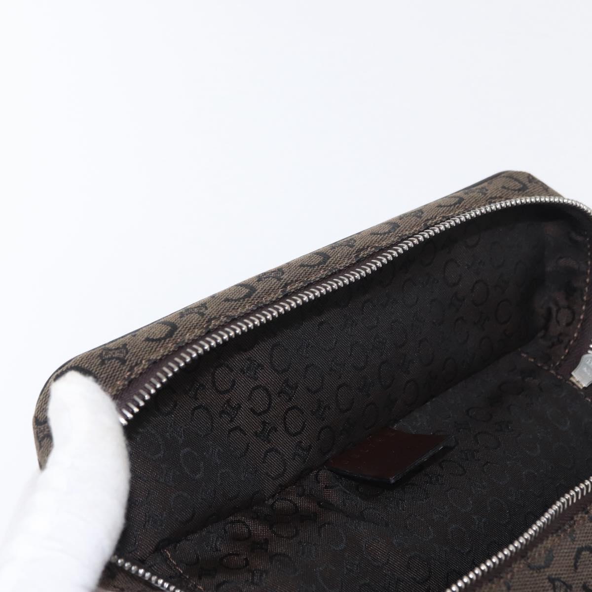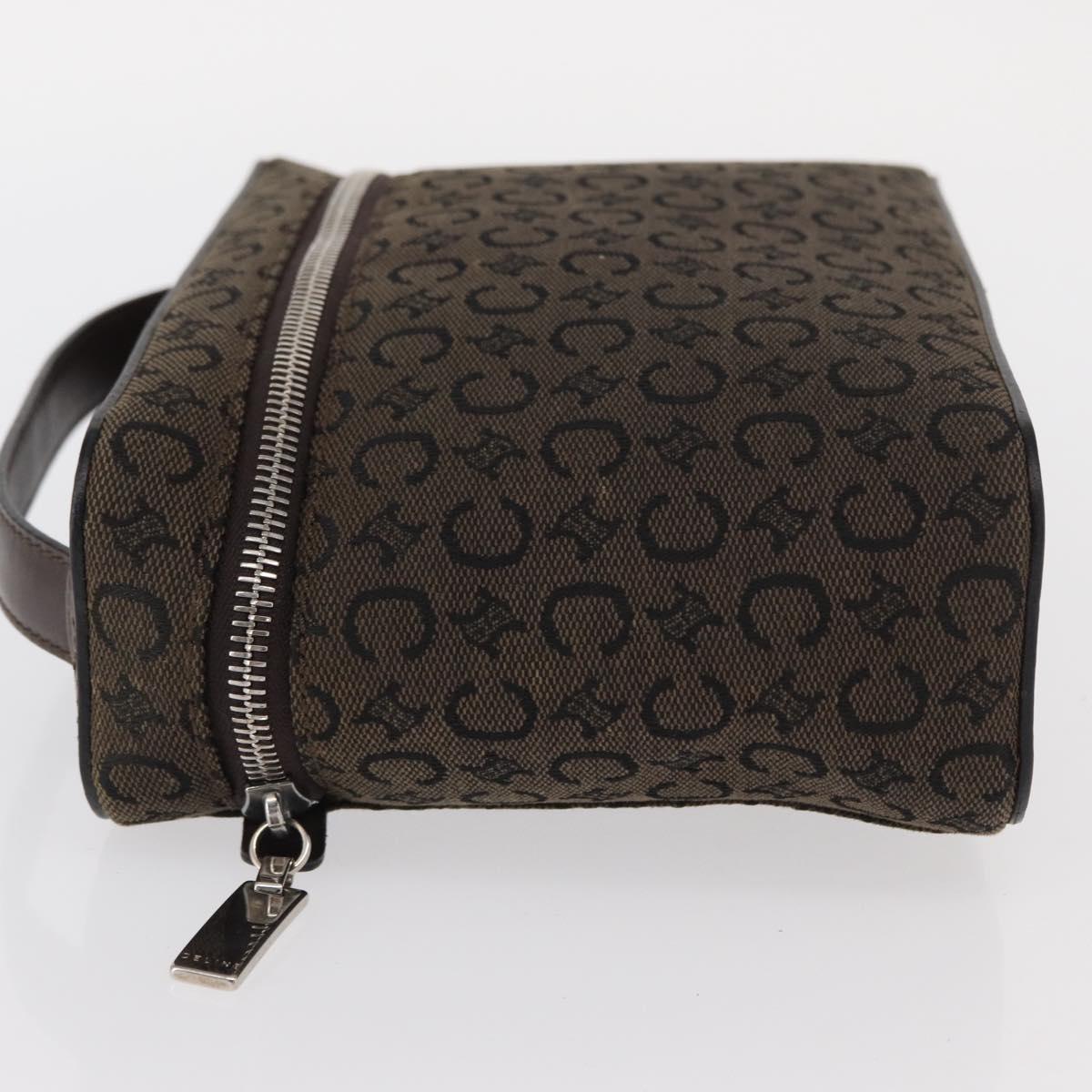 CELINE C Macadam Canvas Vanity Pouch Brown Silver Auth ka1279