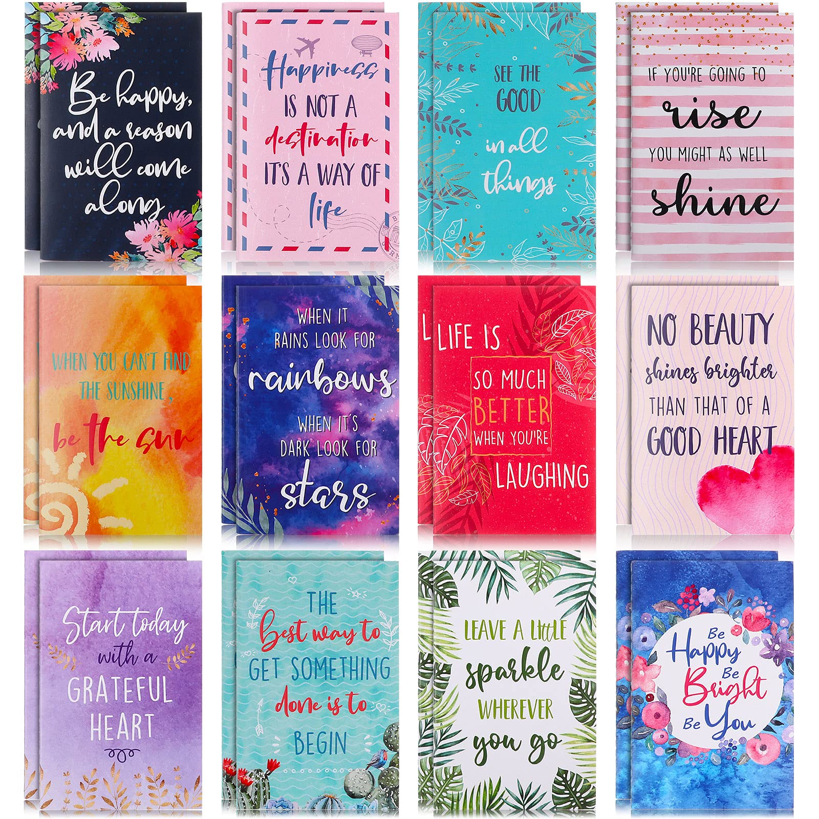 What you will get: package includes 24 pieces of mini inspirational notebooks for woman in 12 different inspirational cover designs, with some positive phrase; Sufficient quantity and various styles for meeting your demands, and you can share them with your friends and family