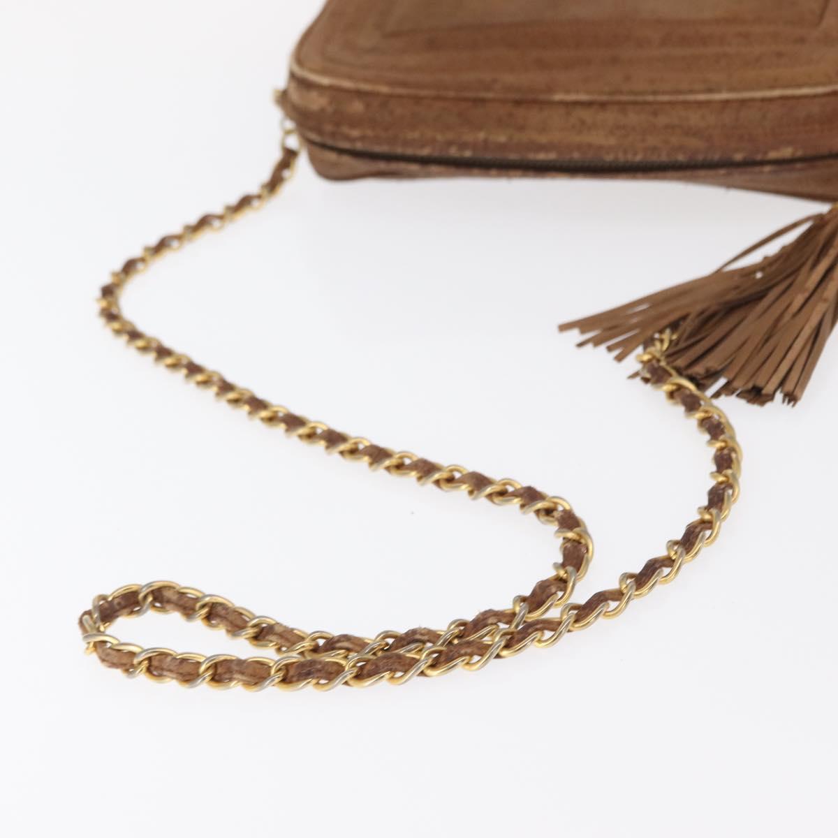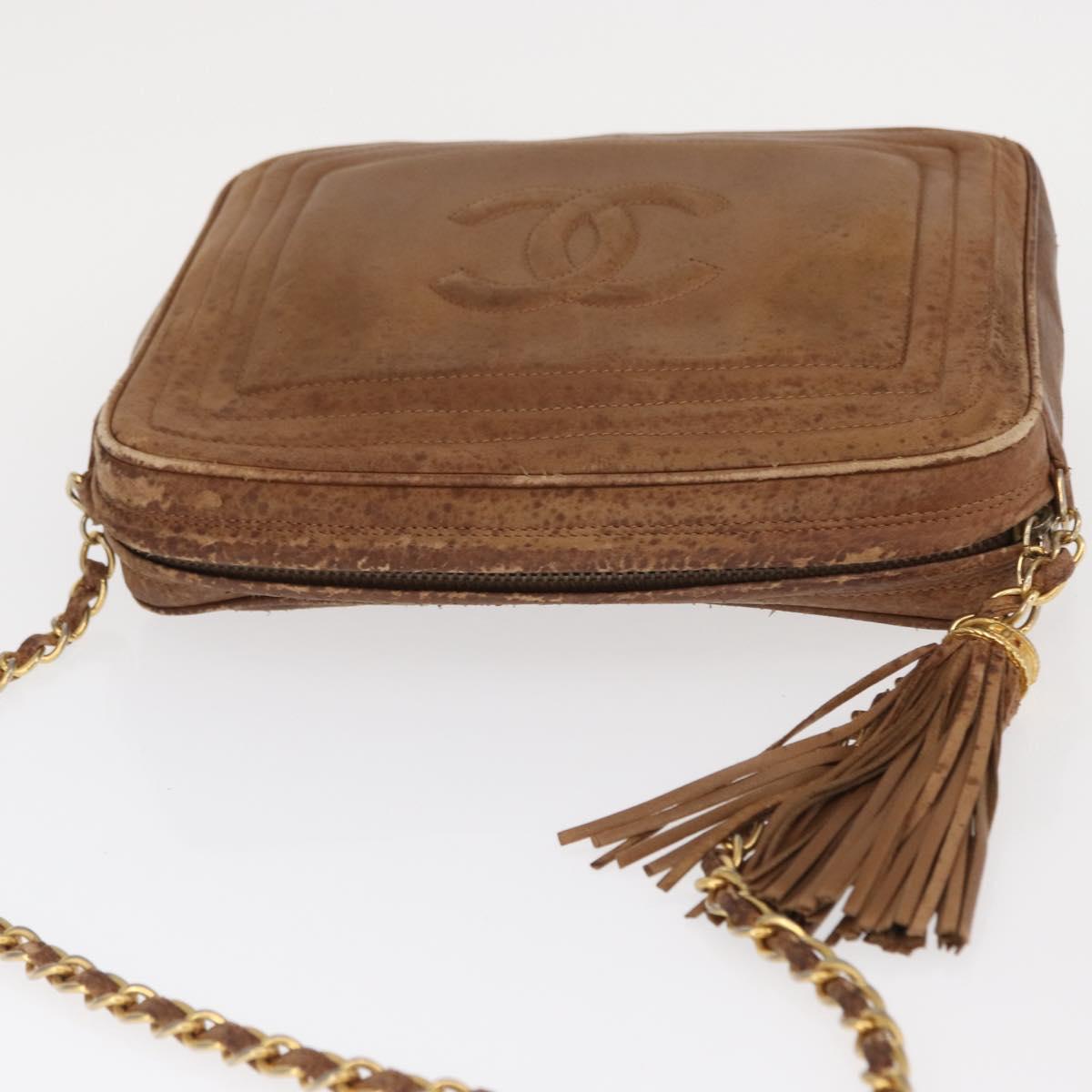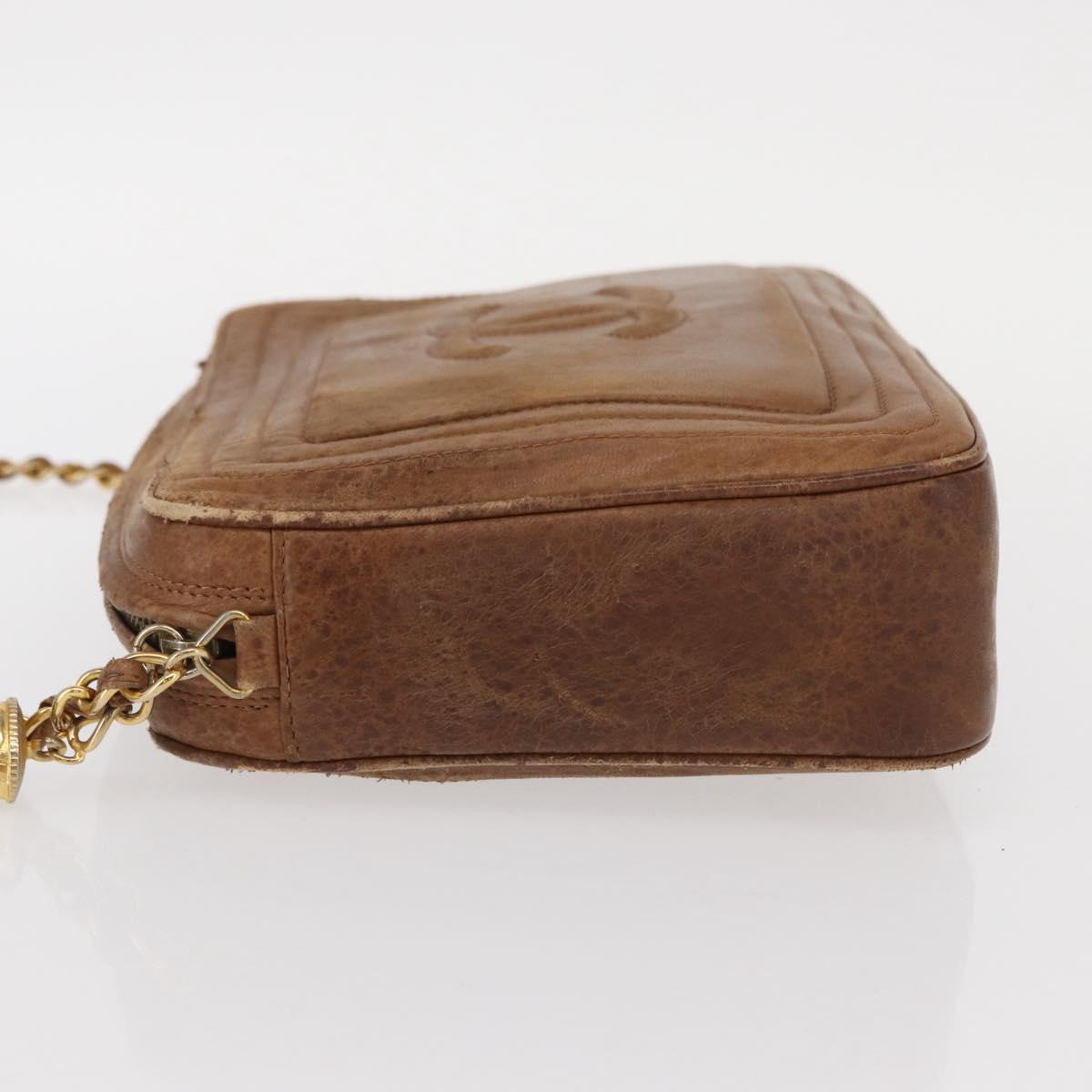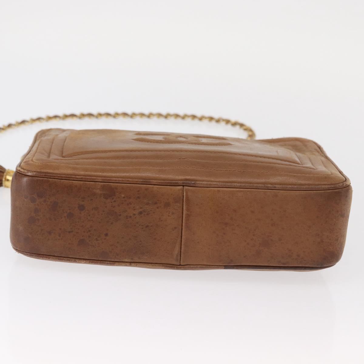 CHANEL Chain Shoulder Bag Leather Brown Gold CC Auth 158037