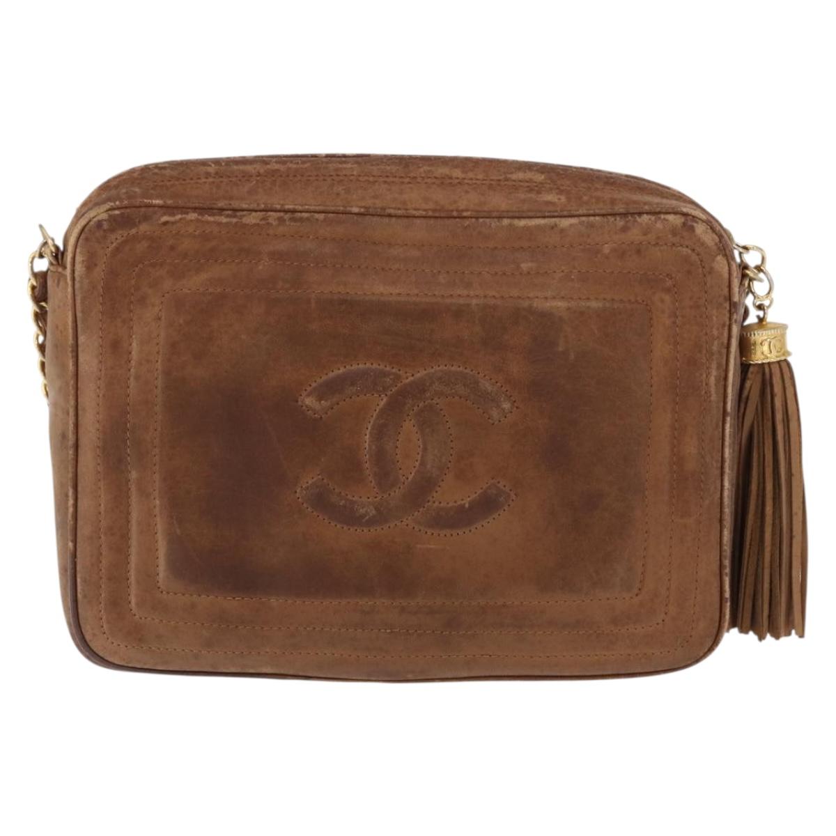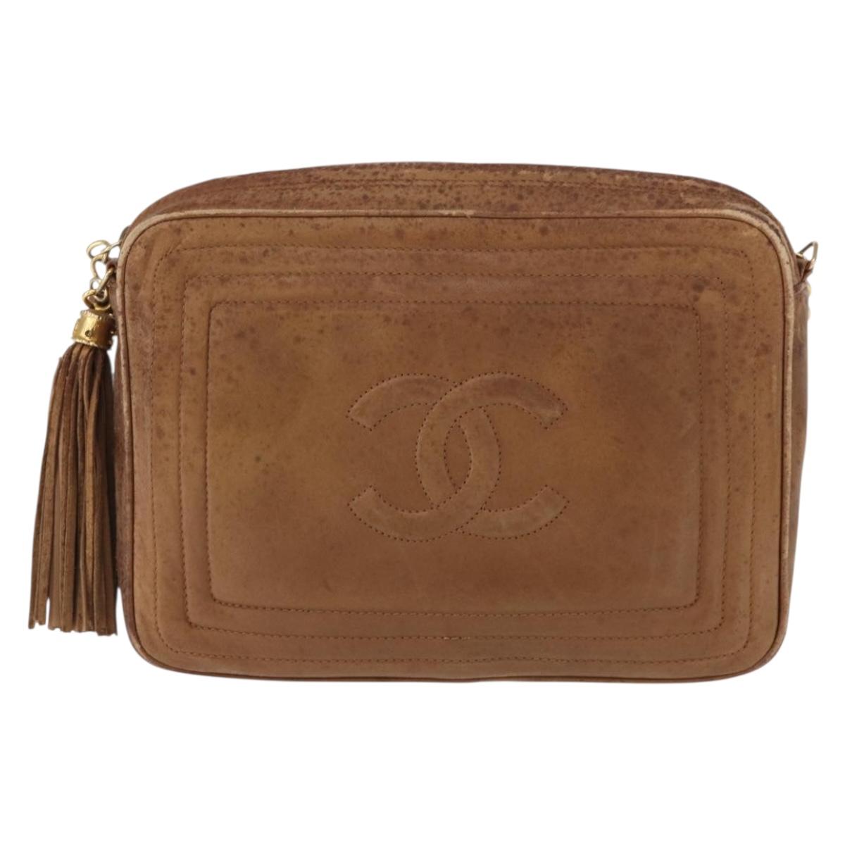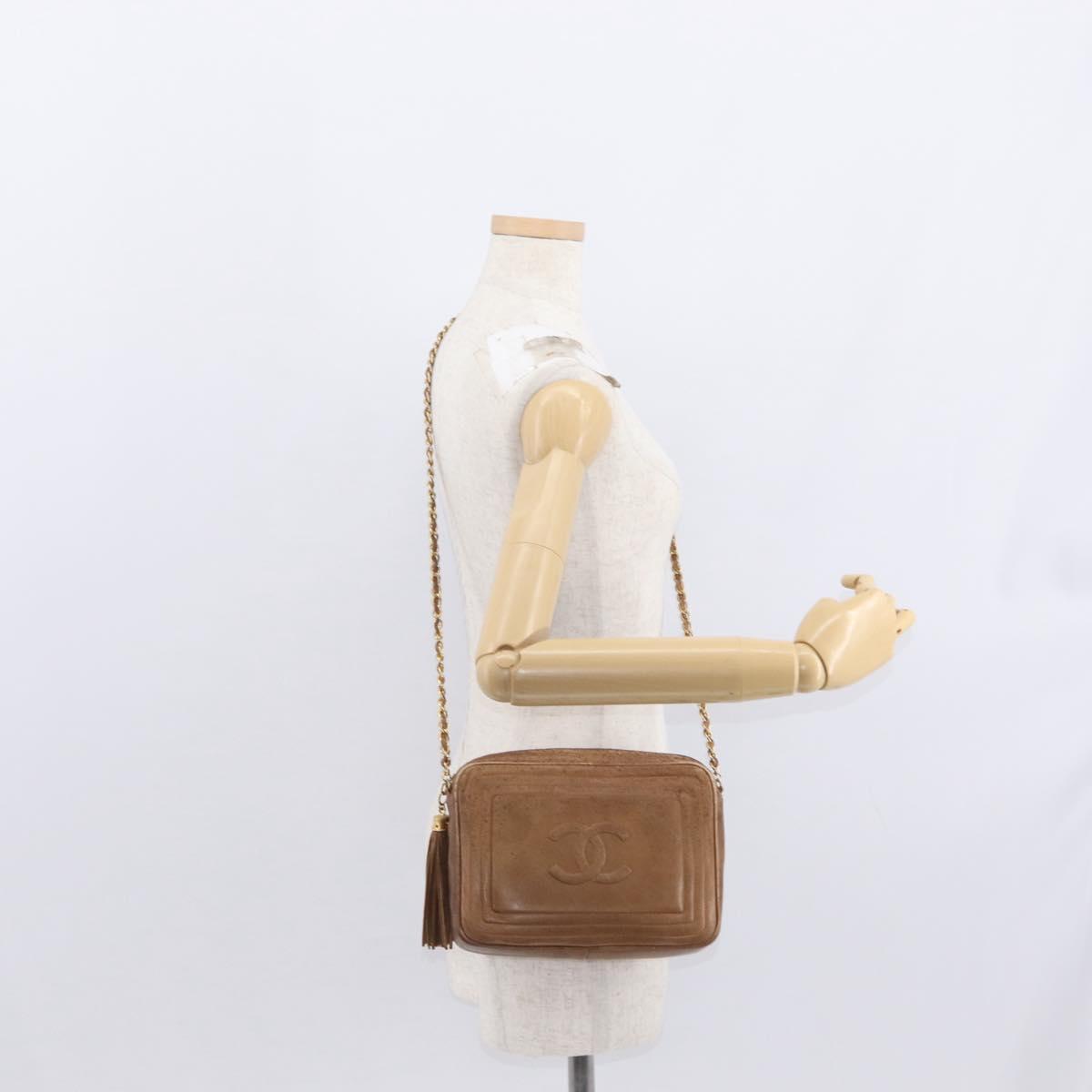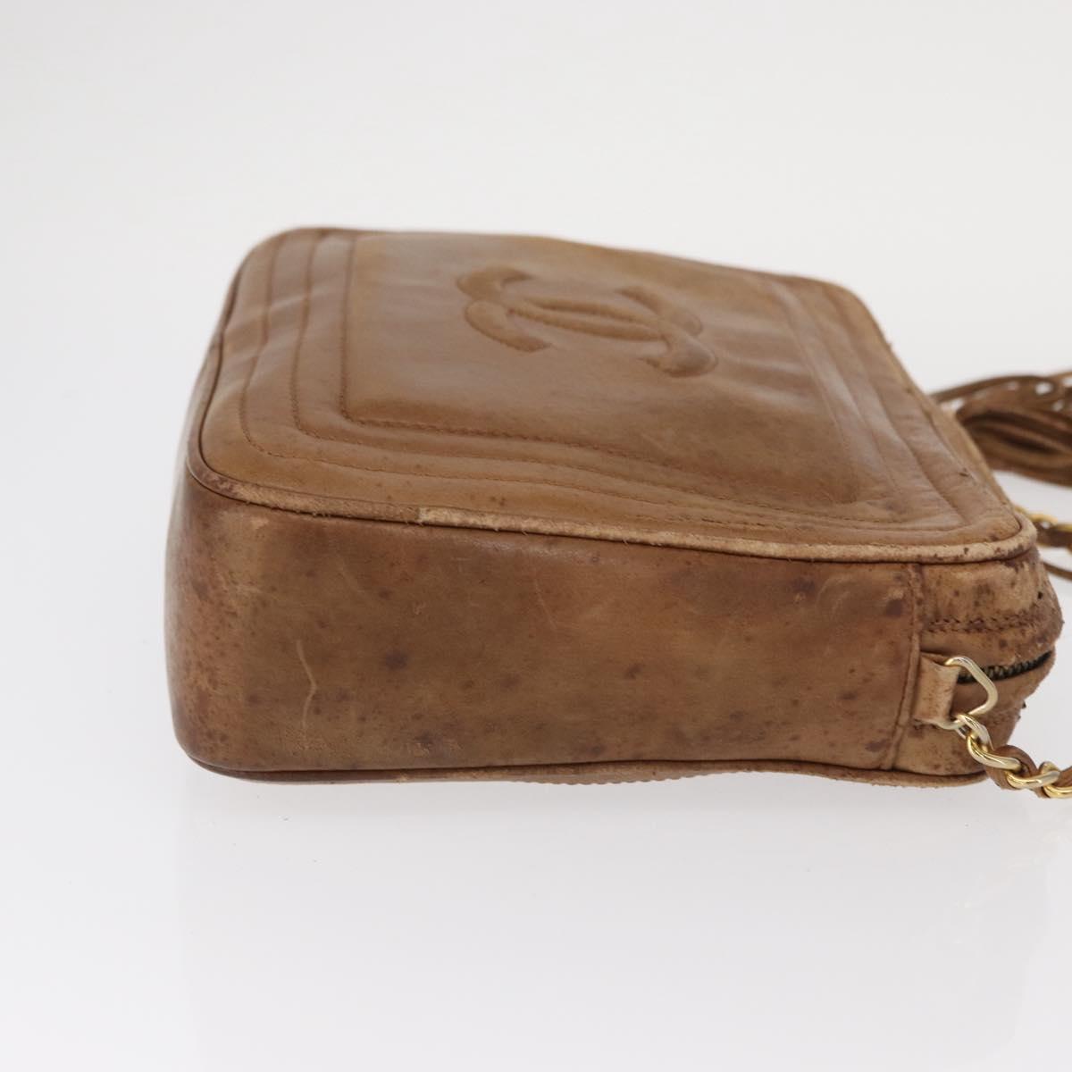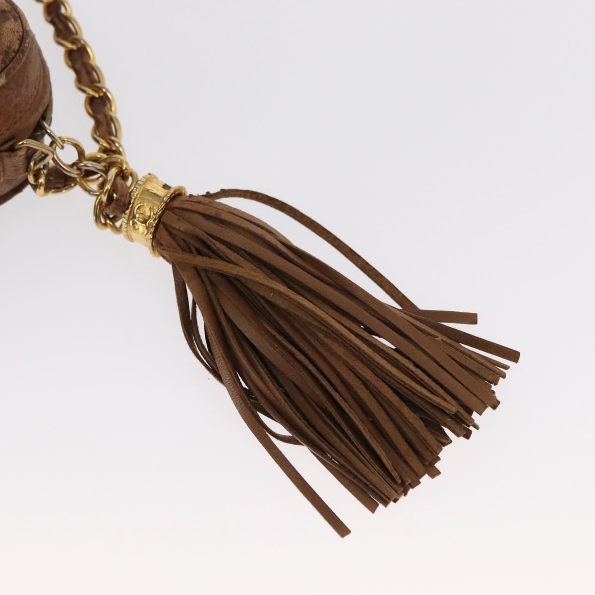 CHANEL Chain Shoulder Bag Leather Brown Gold CC Auth 158037