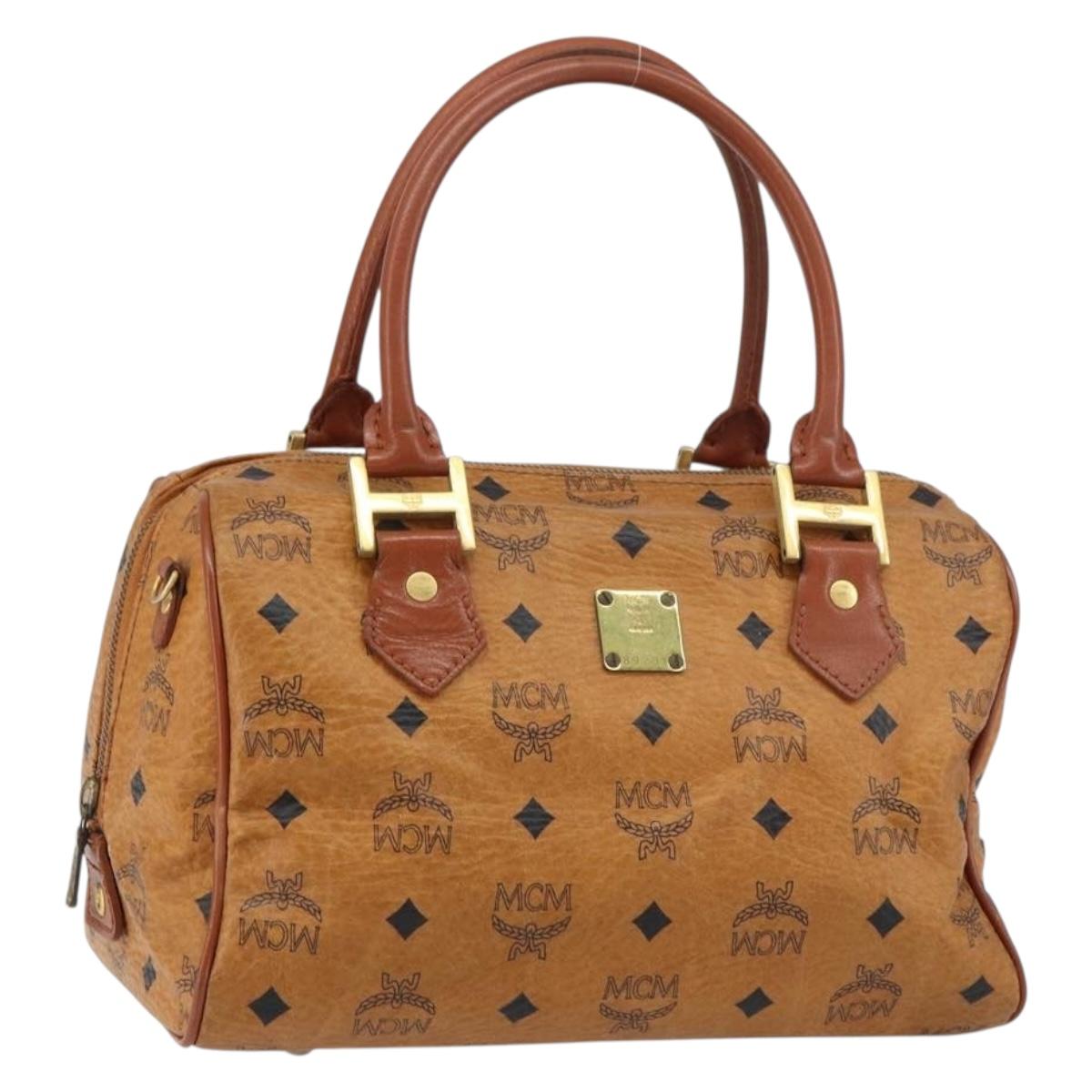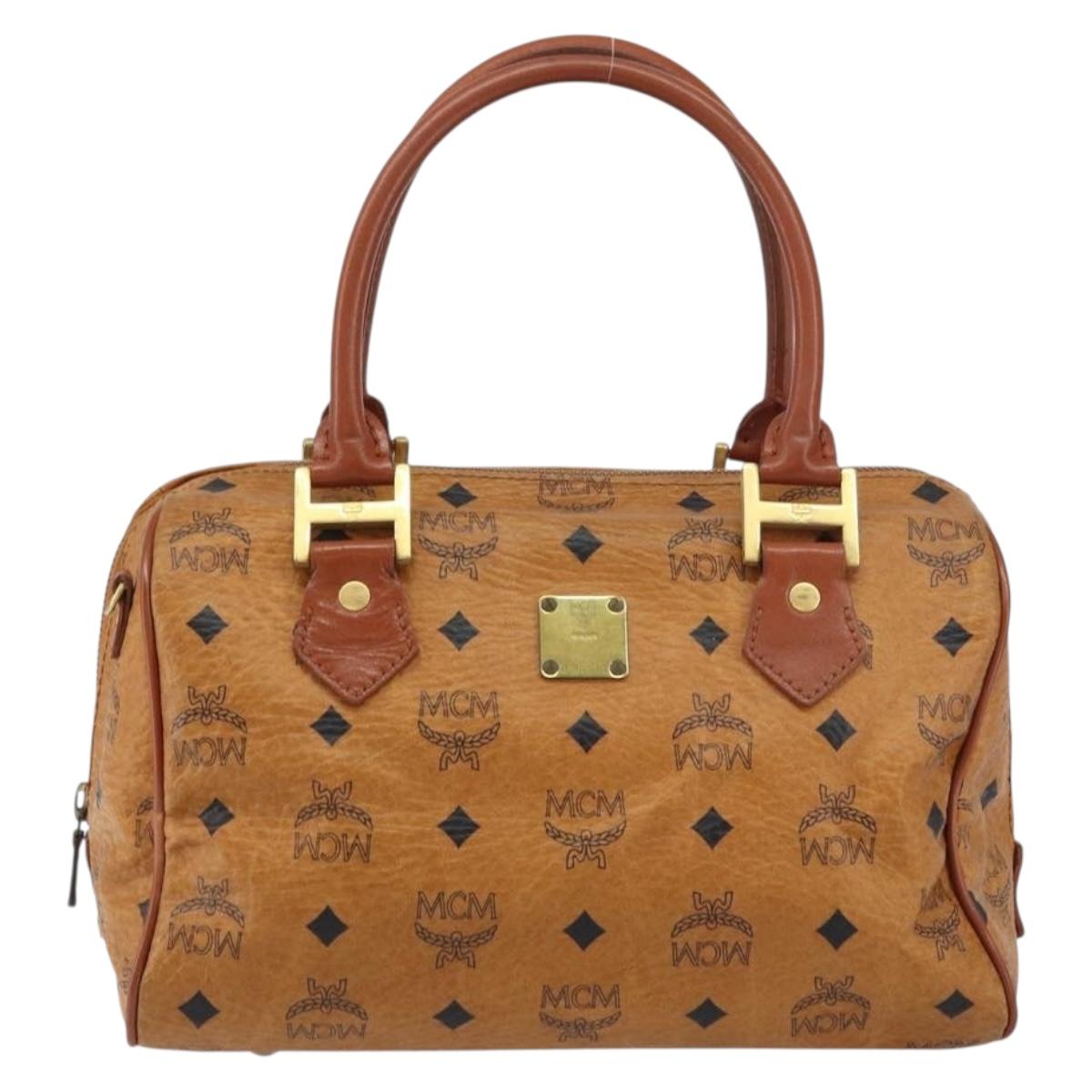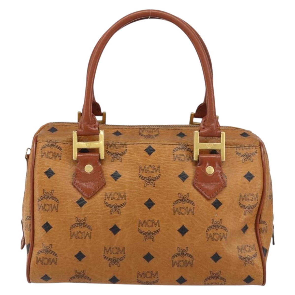 MCM Vicetos Logogram Hand Bag PVC Leather Brown Gold Auth gh1458