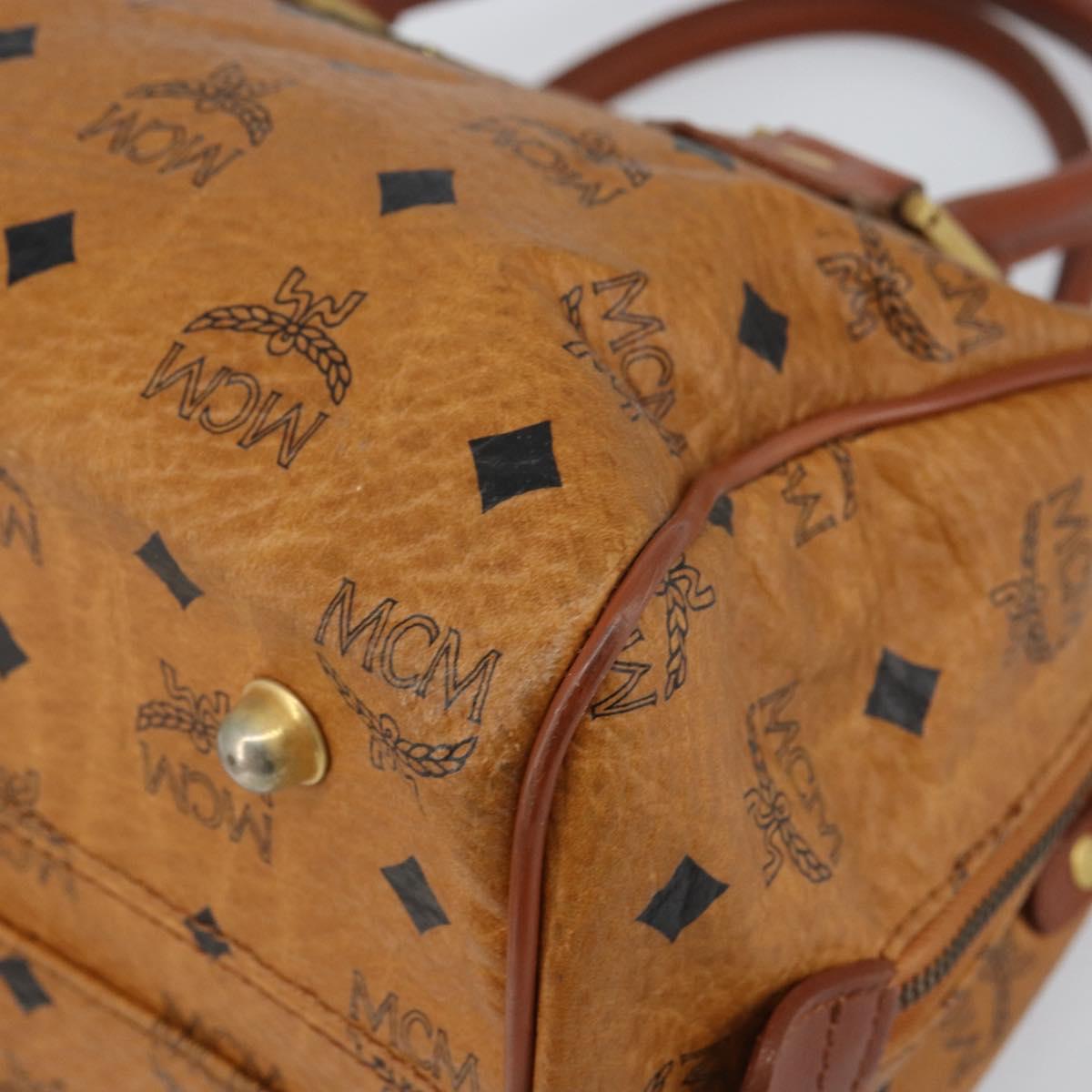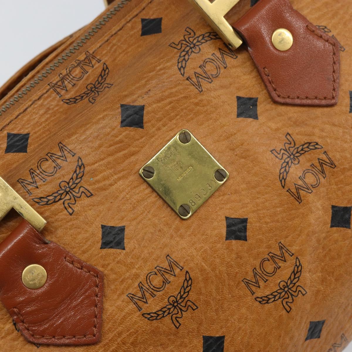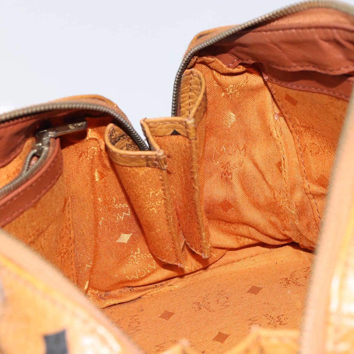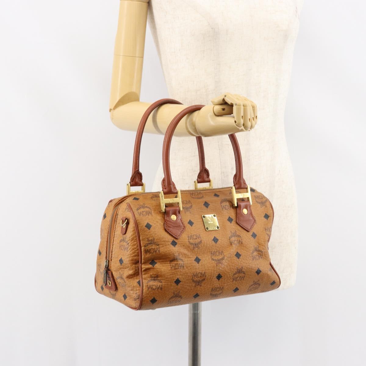 MCM Vicetos Logogram Hand Bag PVC Leather Brown Gold Auth gh1458
