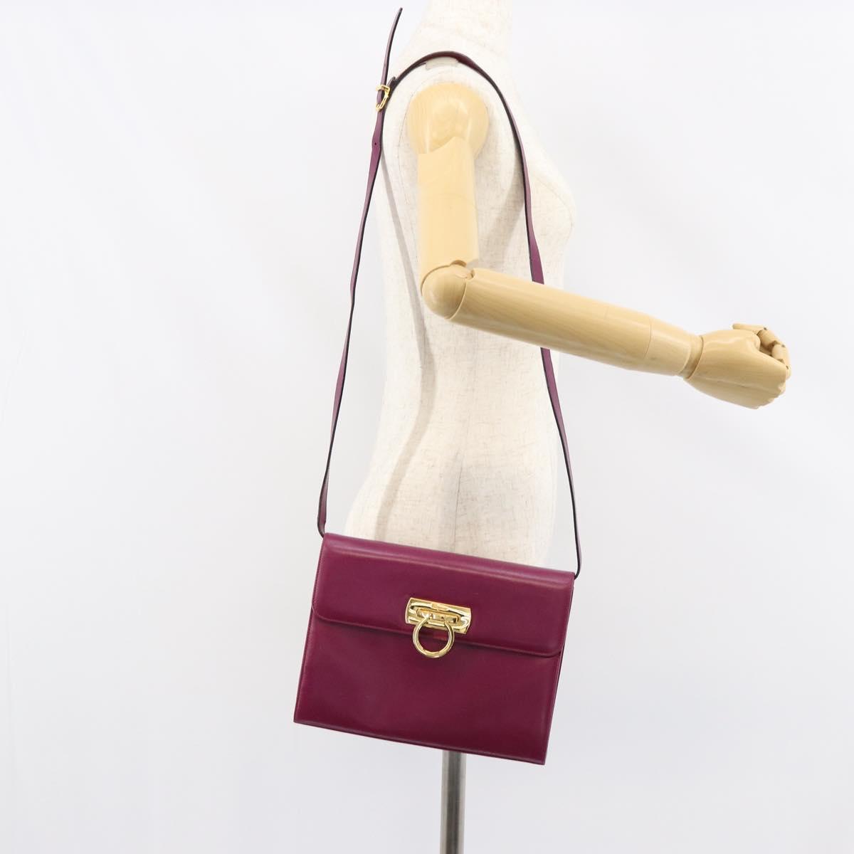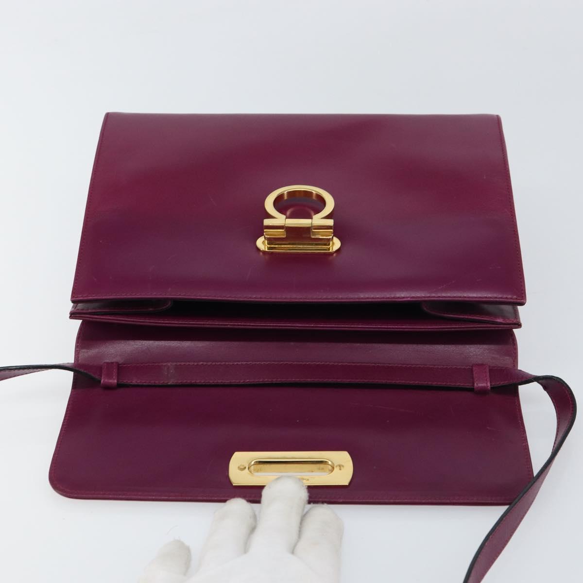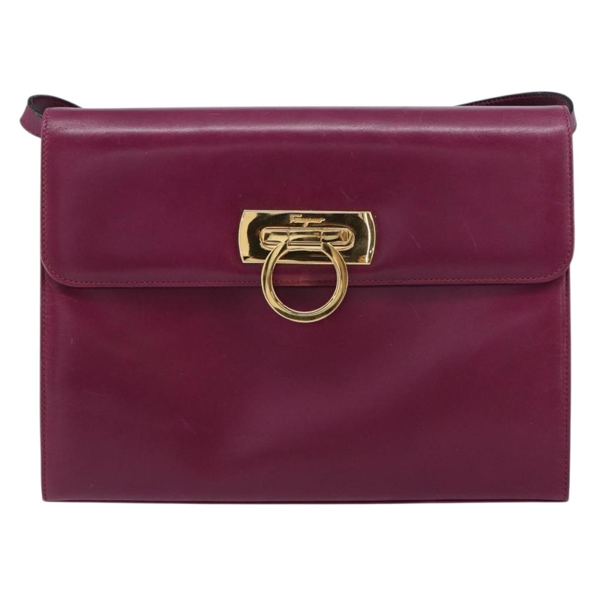 Salvatore Ferragamo Gancini Shoulder Bag Leather Purple Gold Auth 159368