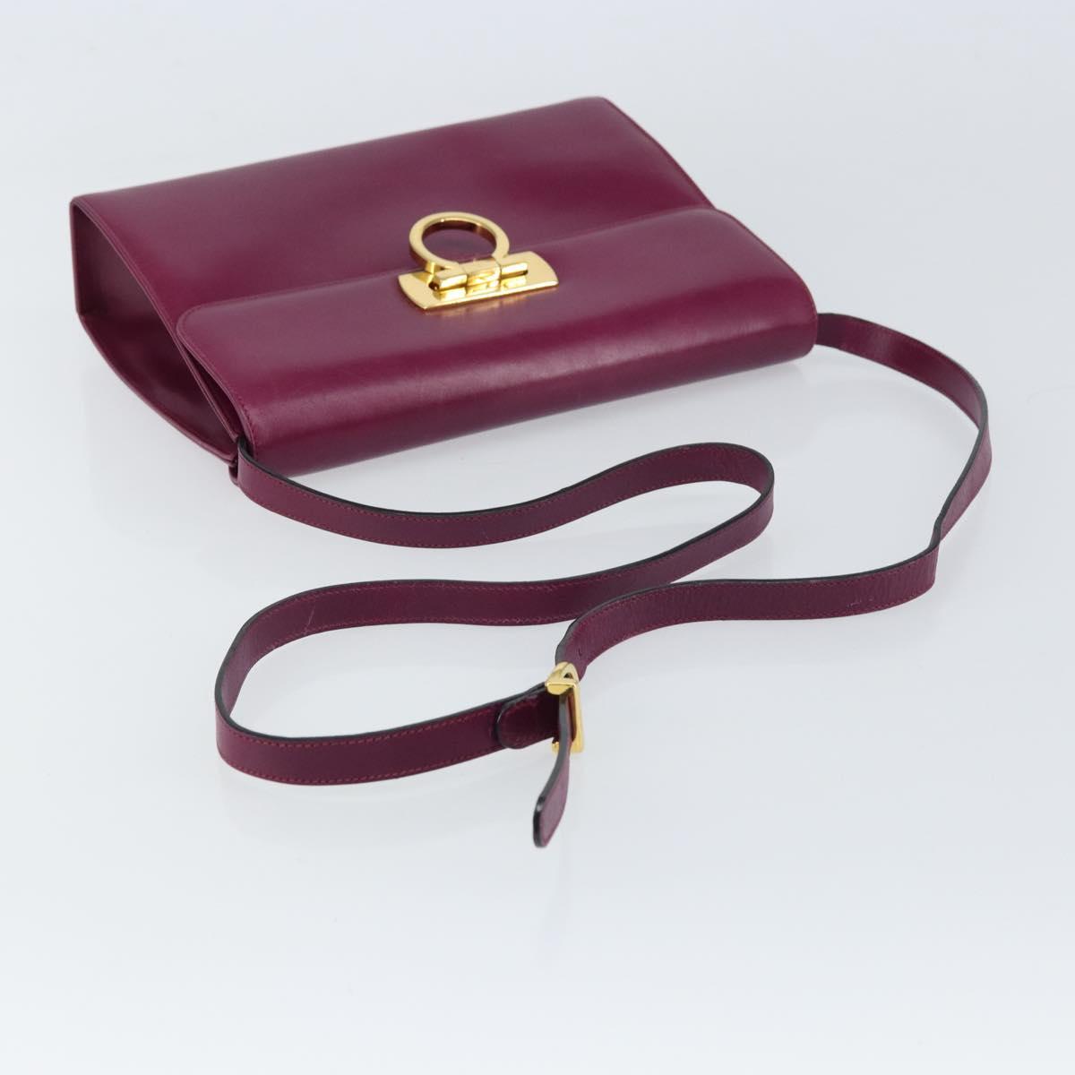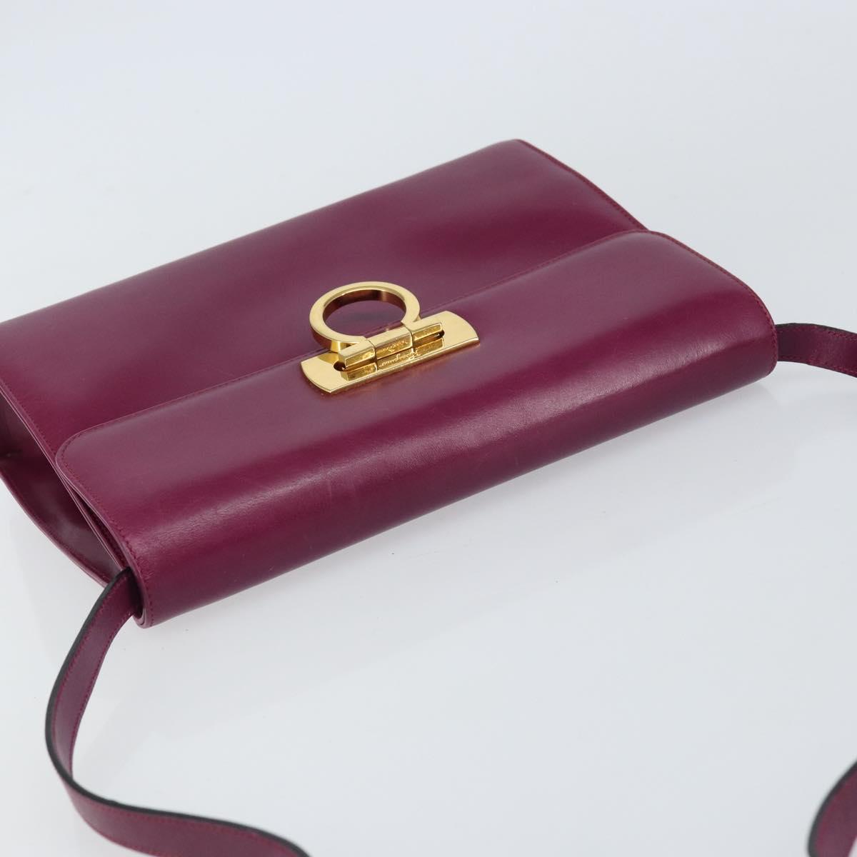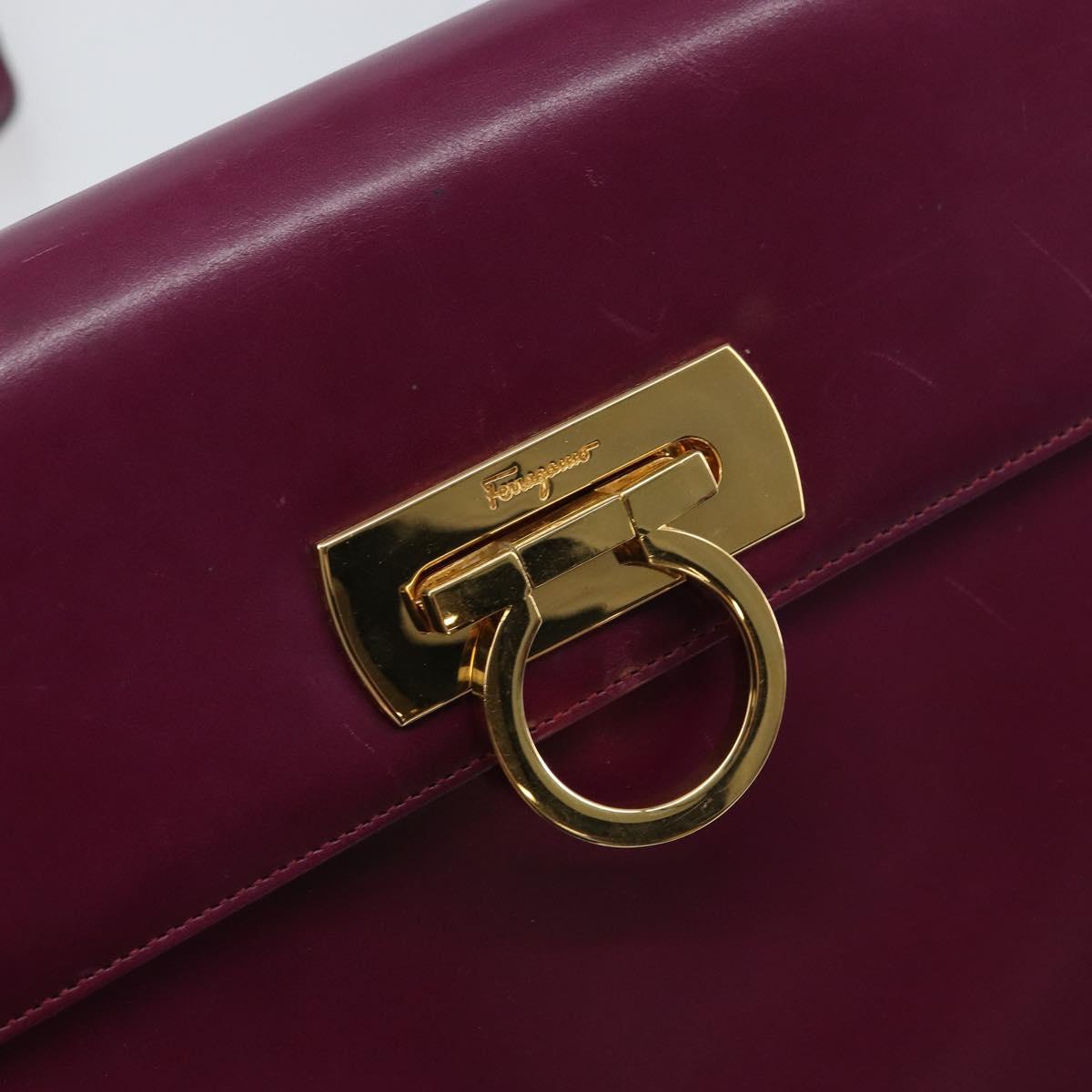 Salvatore Ferragamo Gancini Shoulder Bag Leather Purple Gold Auth 159368