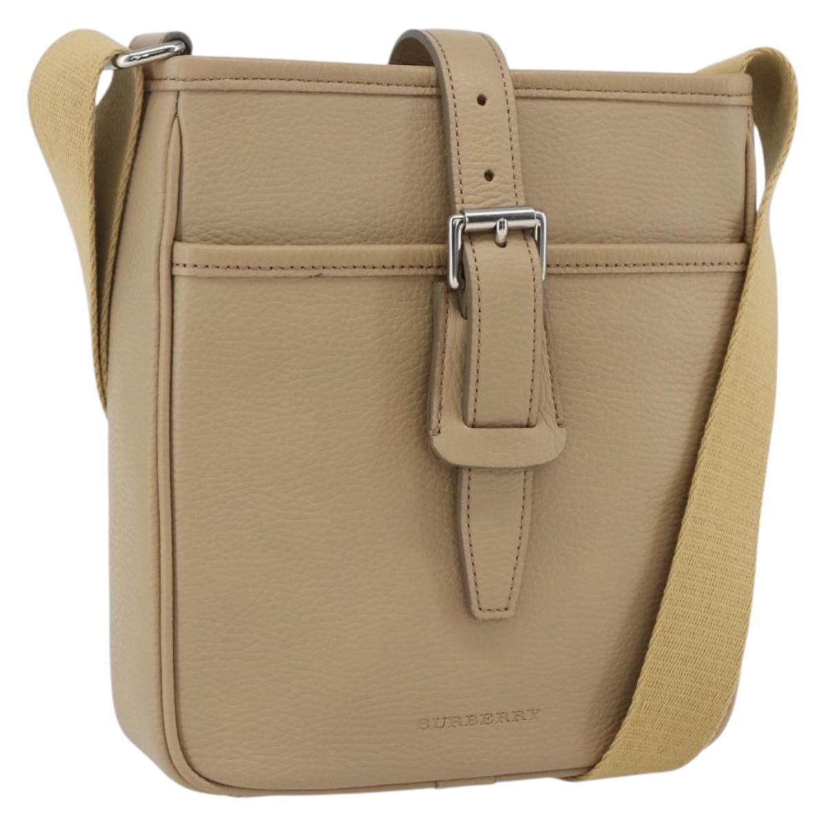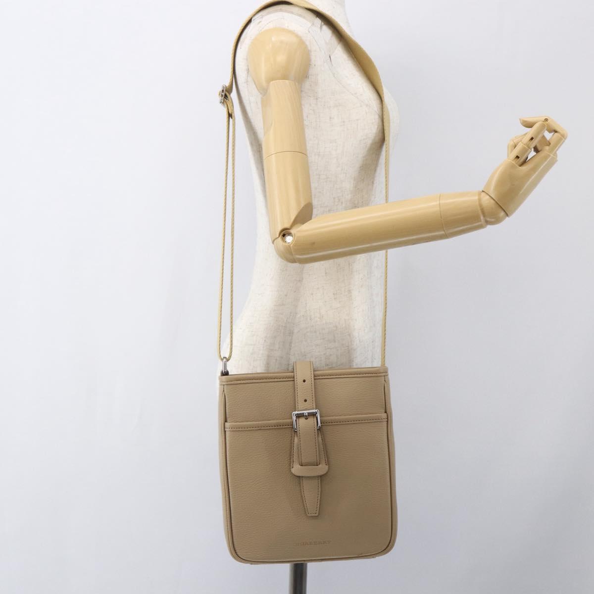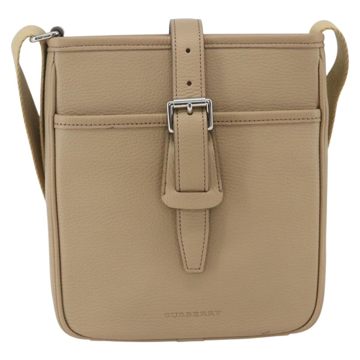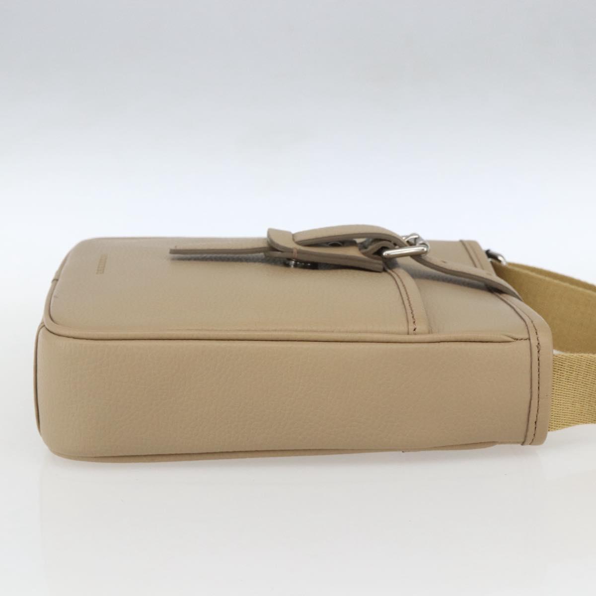 BURBERRY Shoulder Bag Leather Beige Silver Auth am10199V