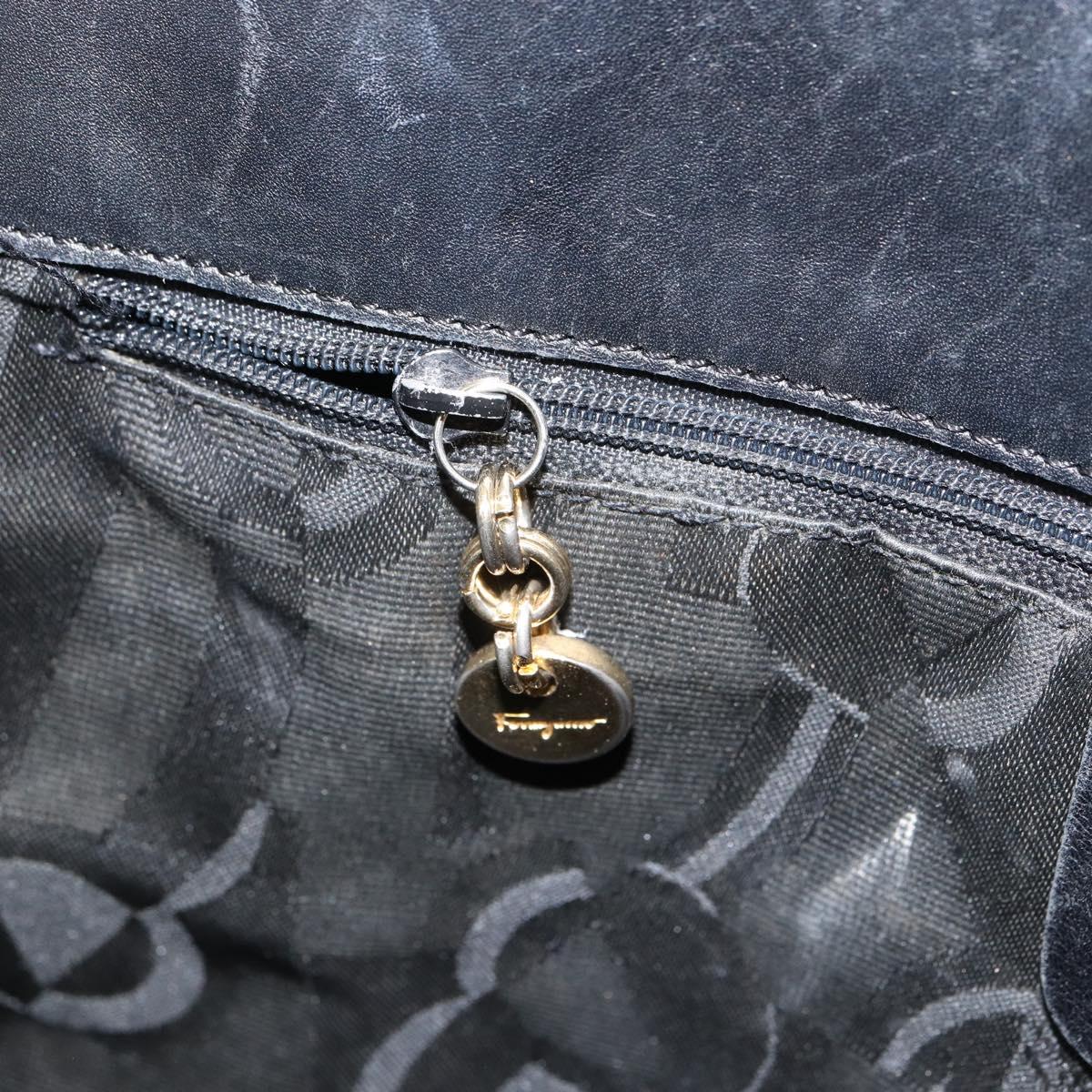 Salvatore Ferragamo Vala Shoulder Bag Canvas Black Gold Auth 160695