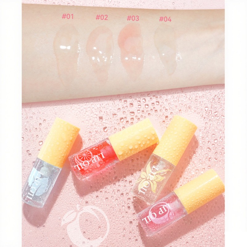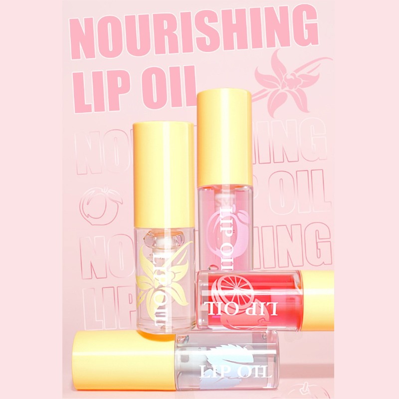Fruit-flavored lip gloss, offering a pleasant and refreshing taste while applying makeup.