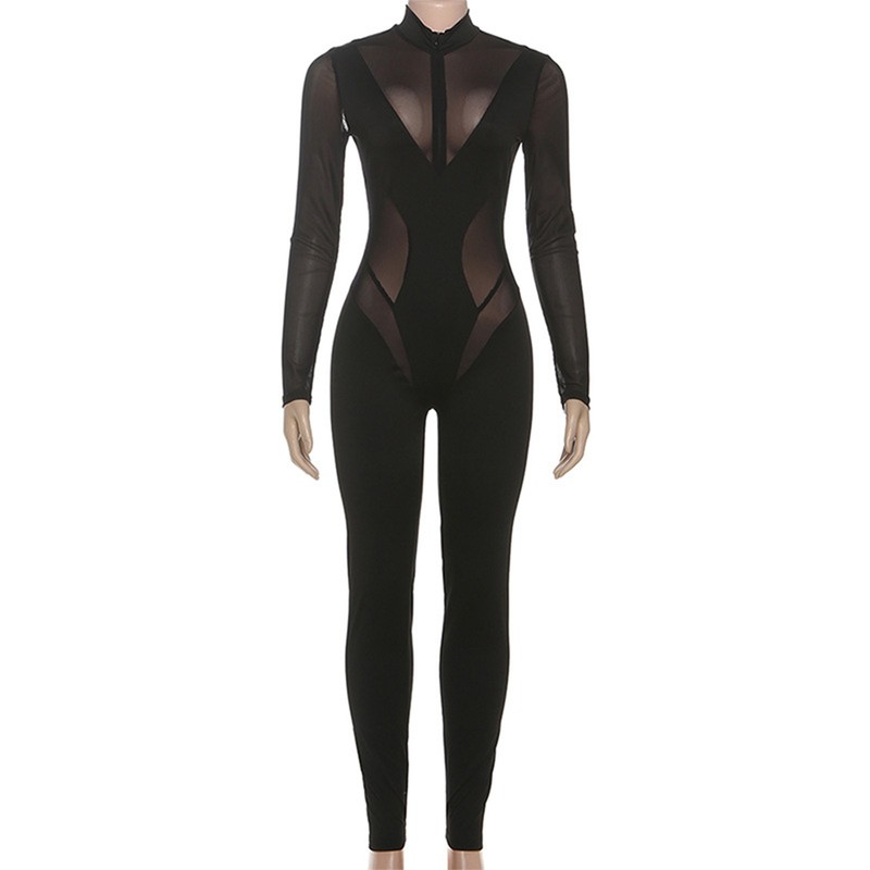Crafted from a blend of polyester and spandex, the jumpsuit offers stretch and durability, ensuring a comfortable and flexible fit for all-day or all-night wear.