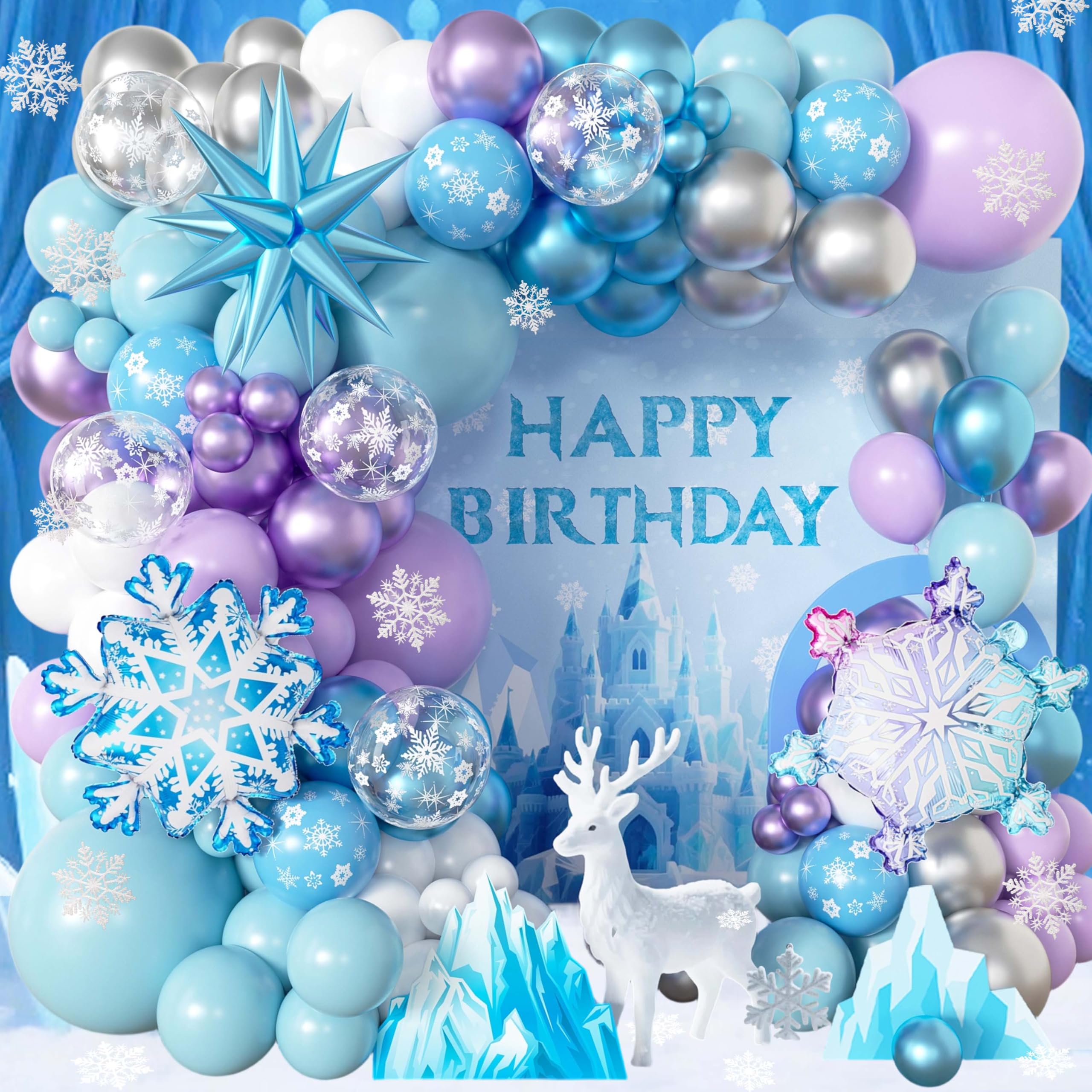 Frozen Balloon Arch Kit,Blue Purple White Balloons Arch Garland,Frozen Birthday Party Decorations For Girls,Cartoon Theme Party Supplies