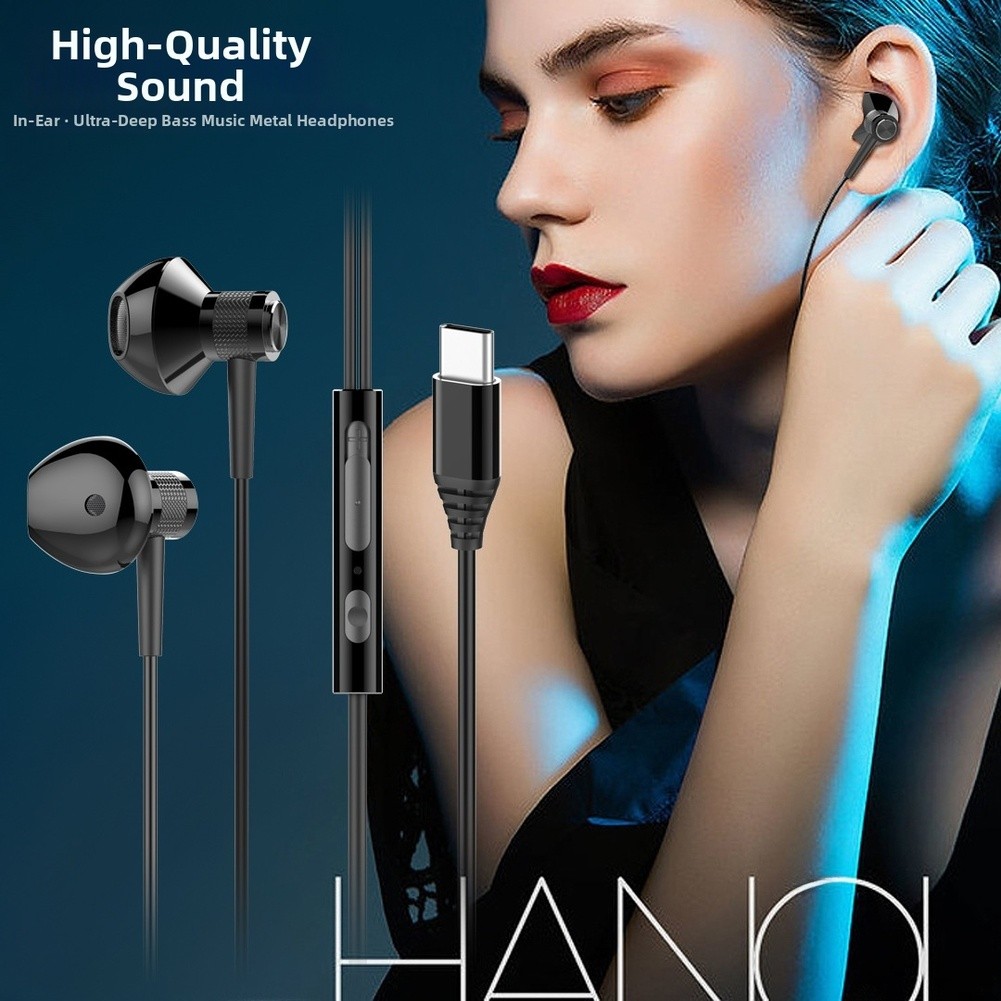 Gaming Focused Wired Earphones with Microphone Type C HiFi Sound 3.5mm Metal