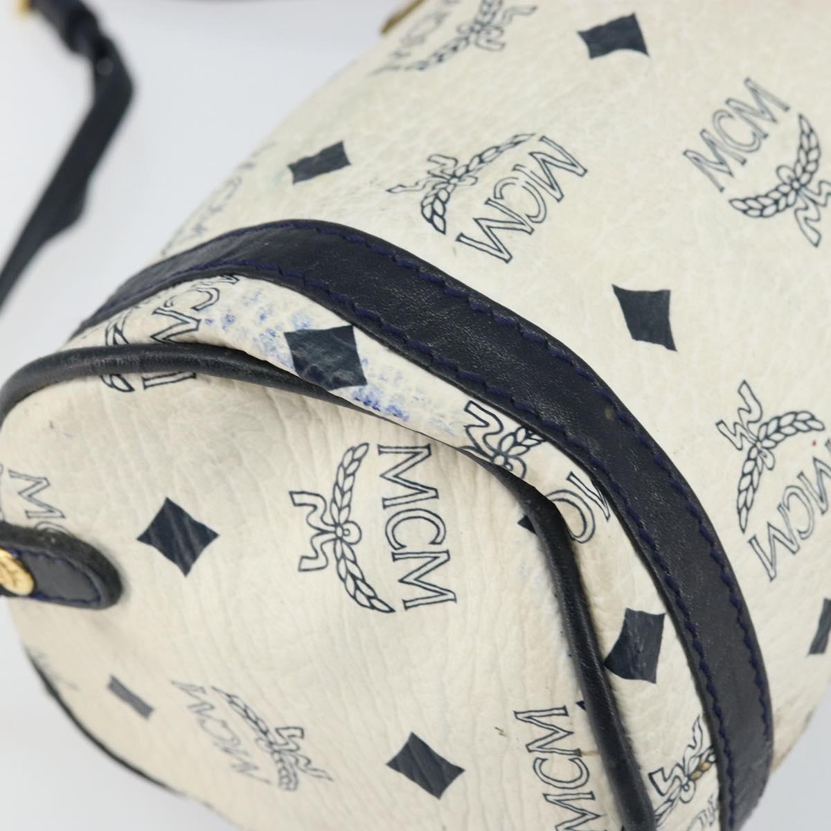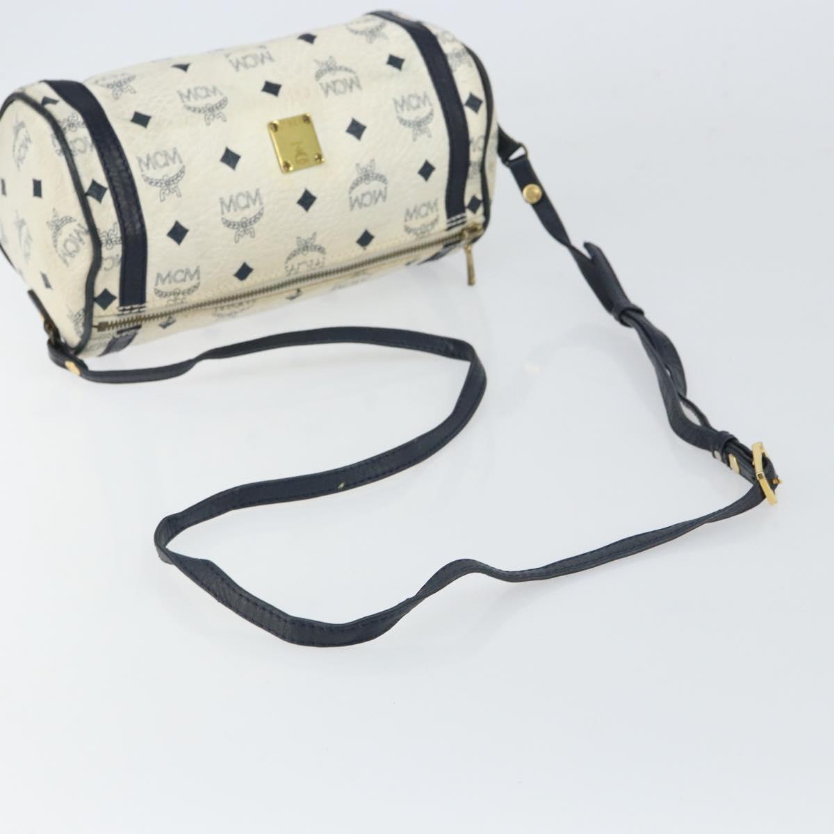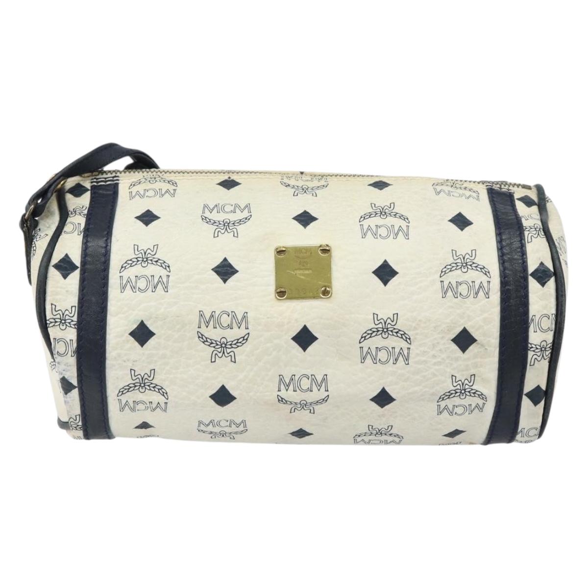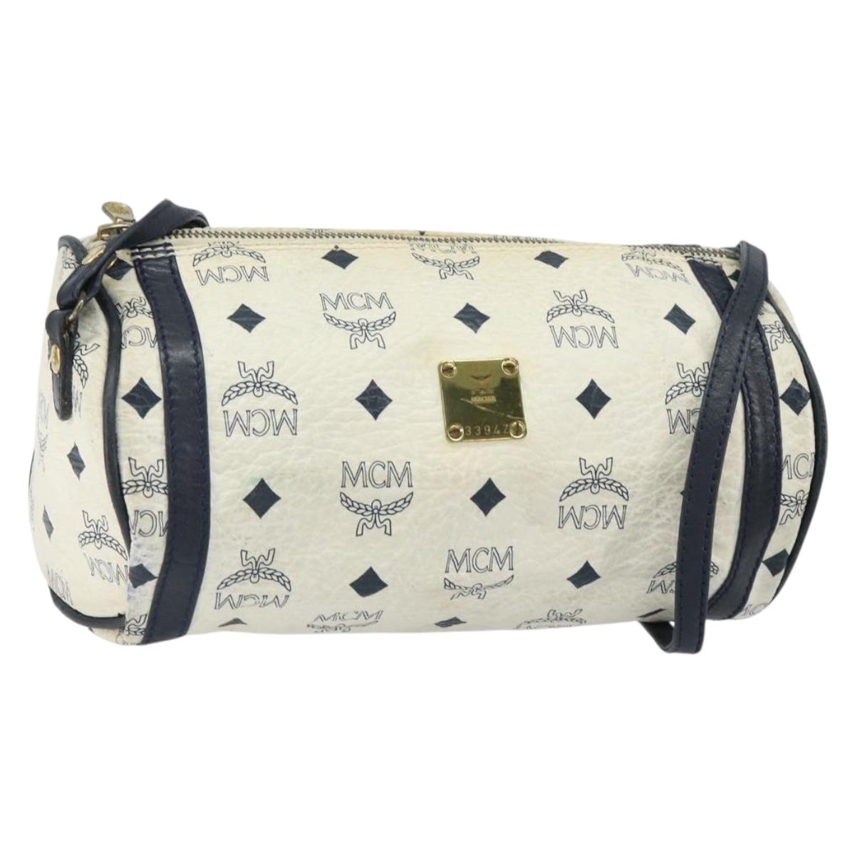 MCM Vicetos Logogram Shoulder Bag PVC Leather White Gold Auth 161404