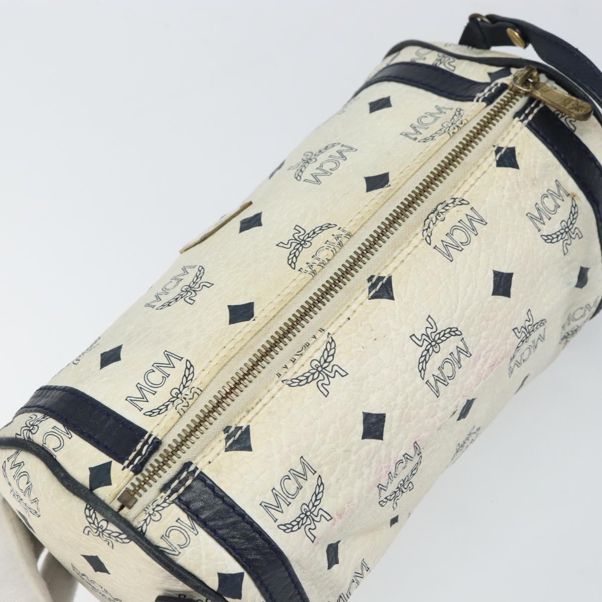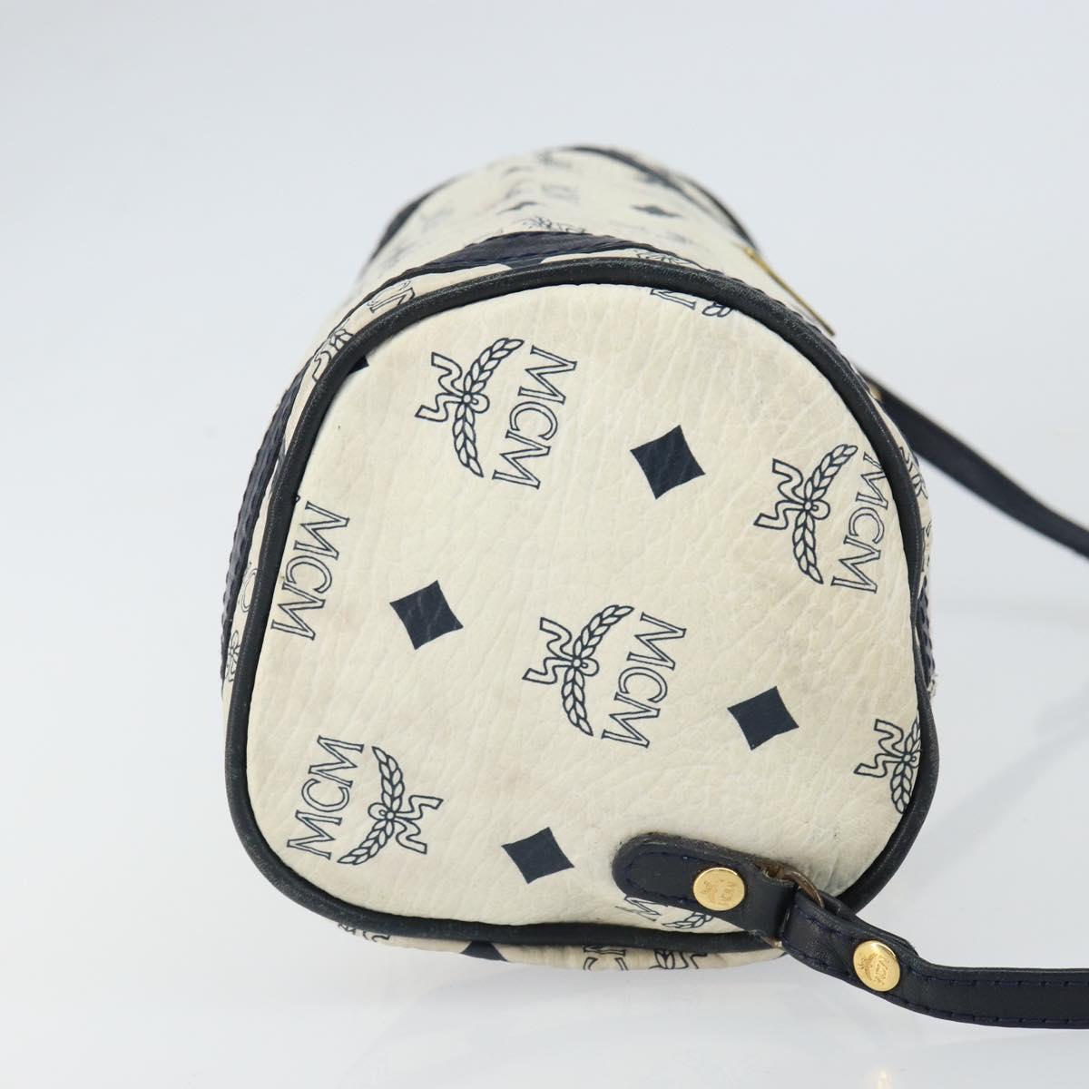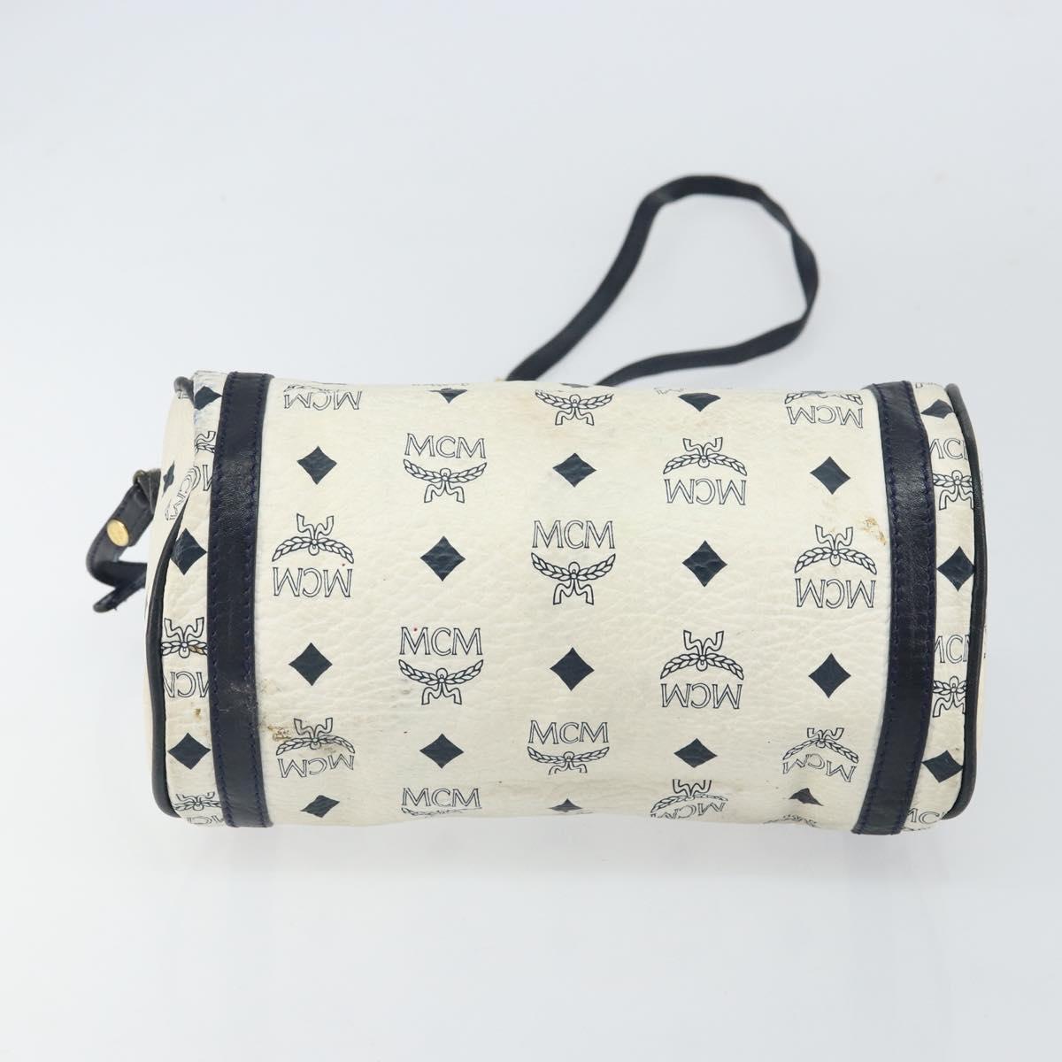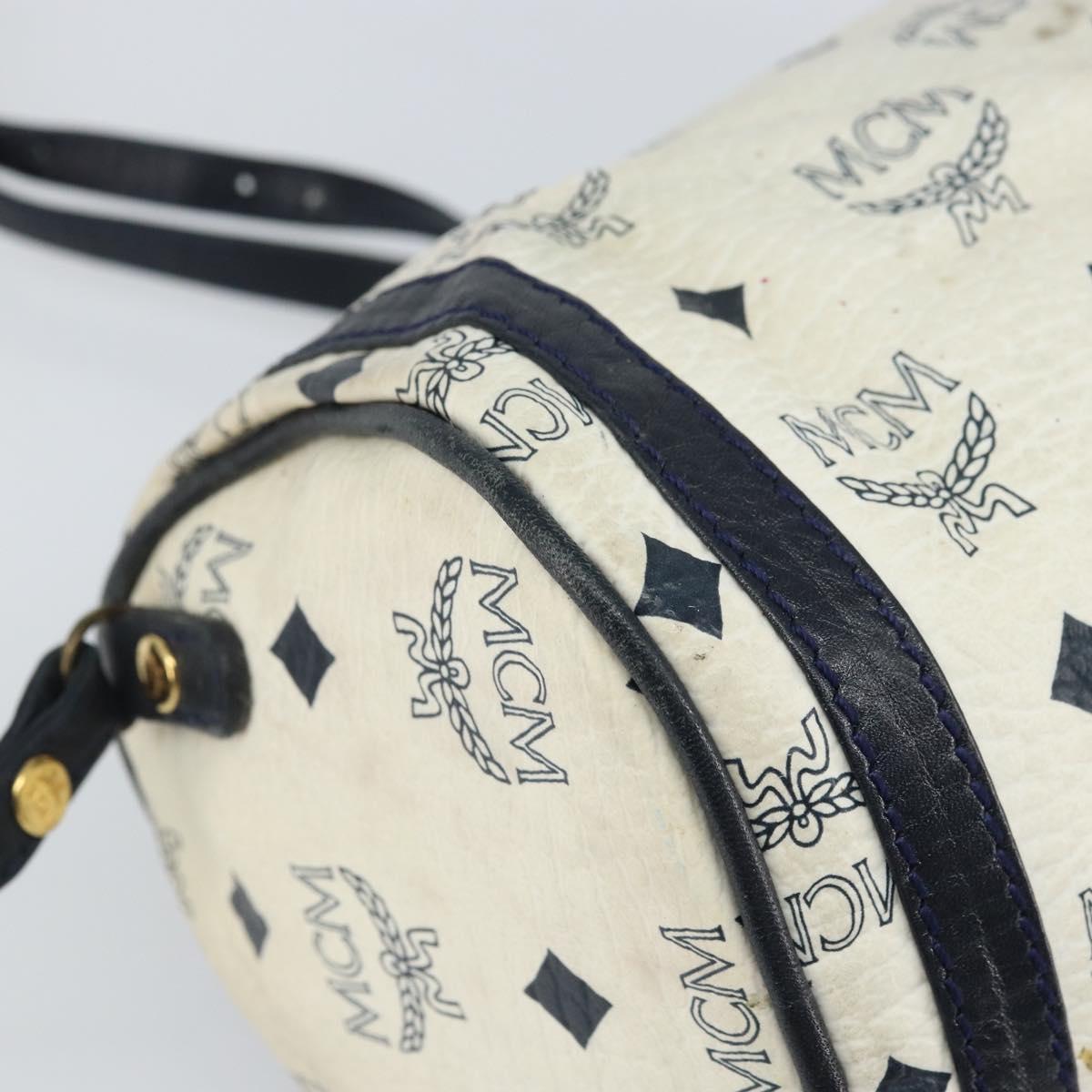 MCM Vicetos Logogram Shoulder Bag PVC Leather White Gold Auth 161404