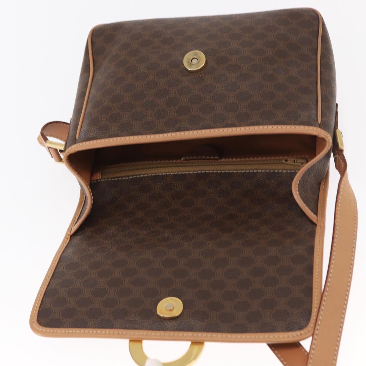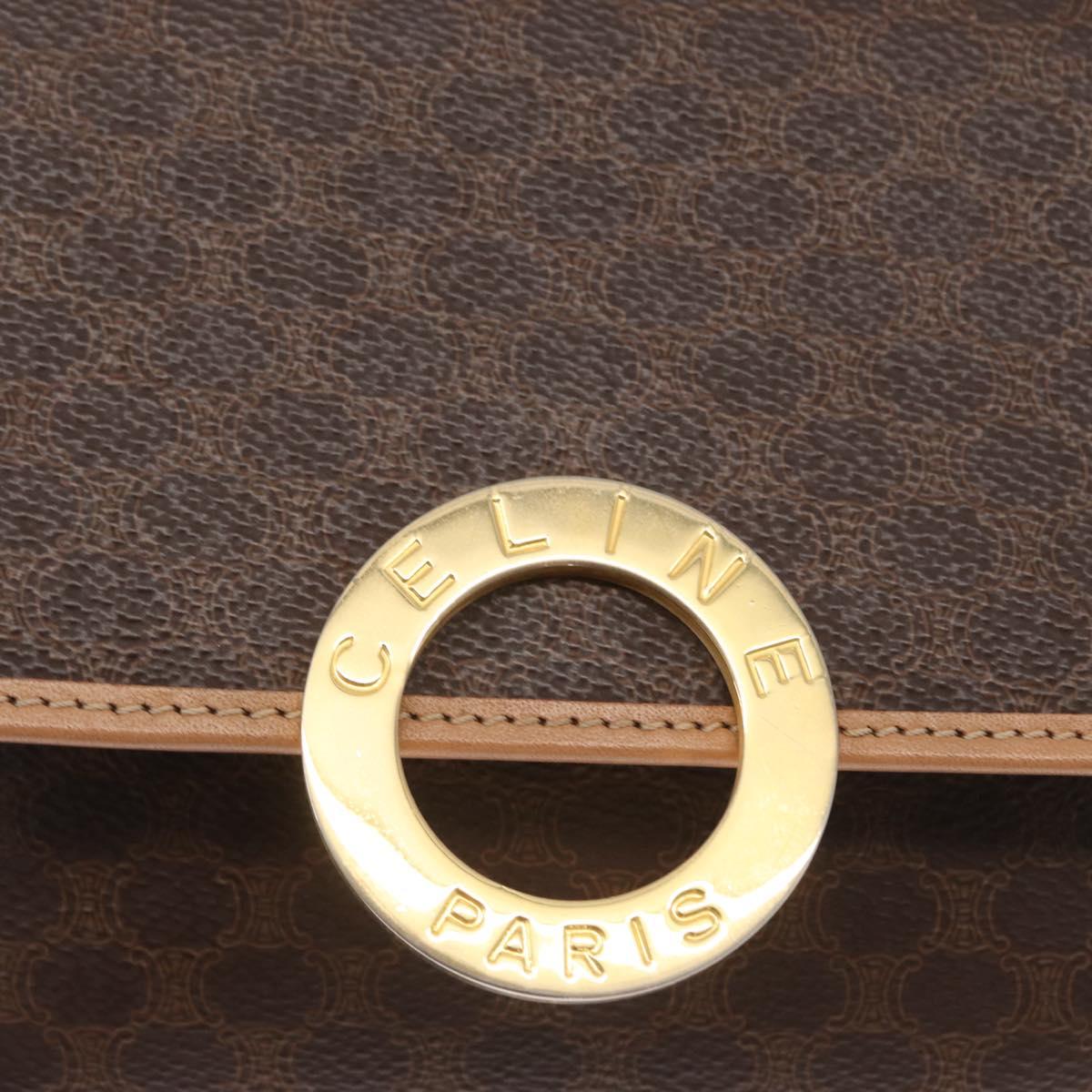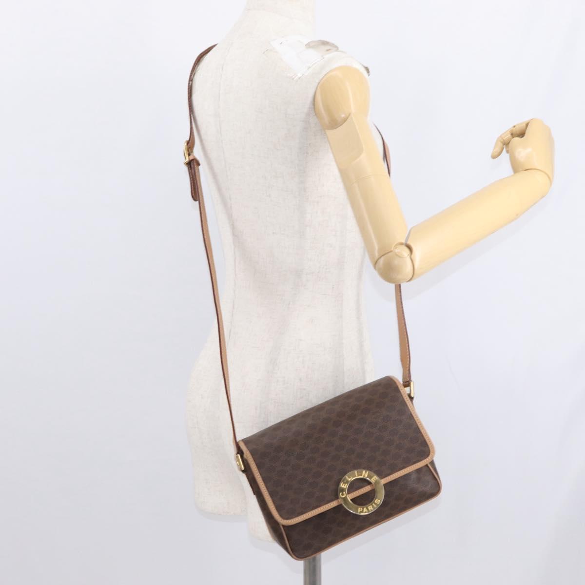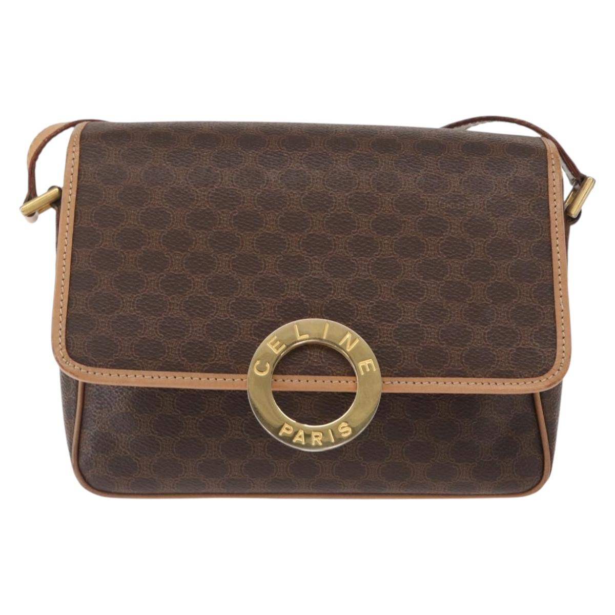 CELINE Macadam Canvas Shoulder Bag PVC Leather Brown Gold Auth 161505