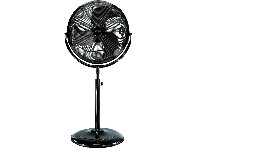 Der Koenic Standventilator KSF 5020 M ist aus hochwertigem Metall gefertigt und damit besonders robust. Die schwarze Farbe verleiht dem Gerät eine schlichte, aber elegante Optik, mit der es sich mühelos in jede Umgebung integriert und nicht wie in Fremdkörper wirkt. Dank des Standfußes platzieren Sie den Ventilator auf dem Boden – so haben Sie mehr Platz auf Ihrem Schreibtisch und genießen dennoch die kühle Brise.