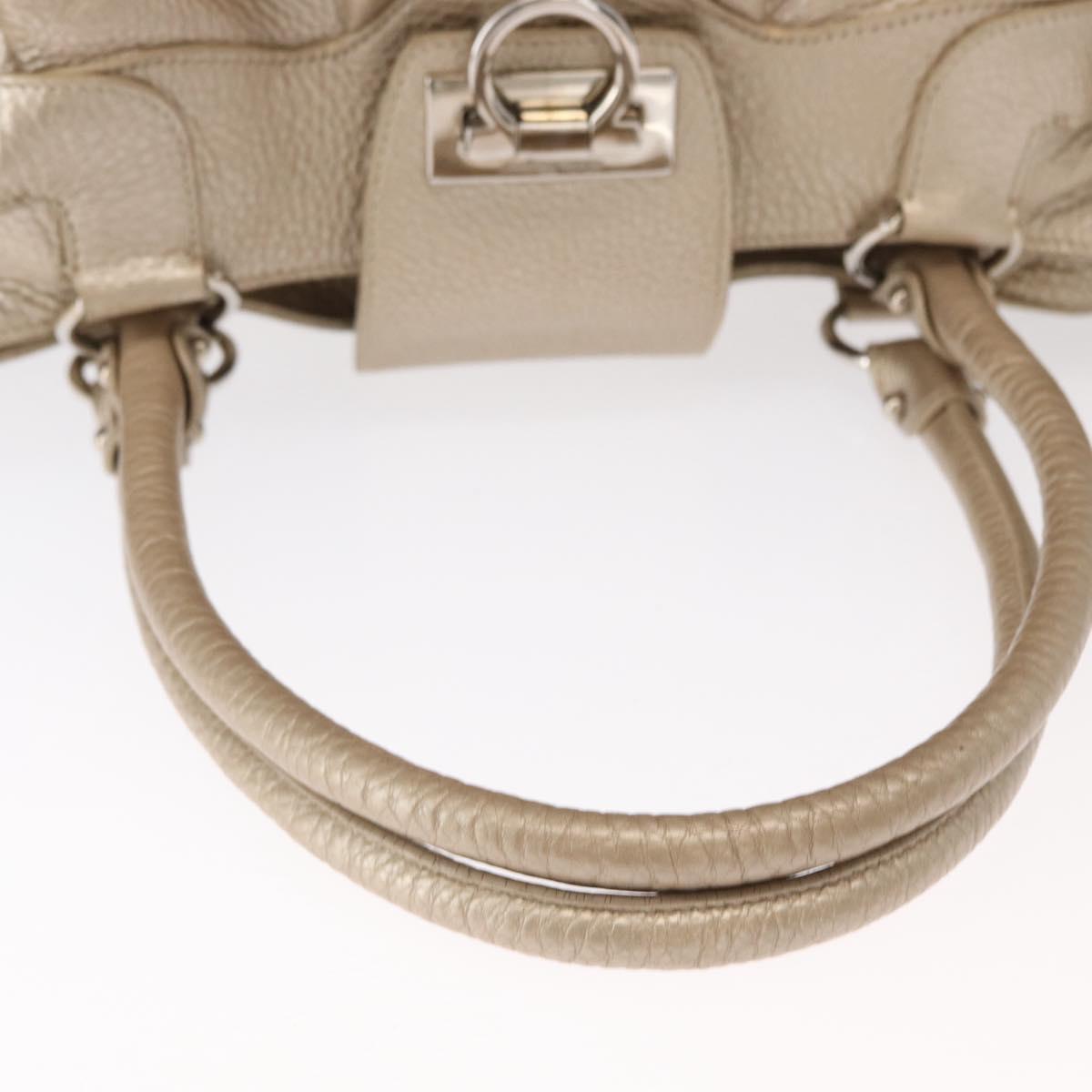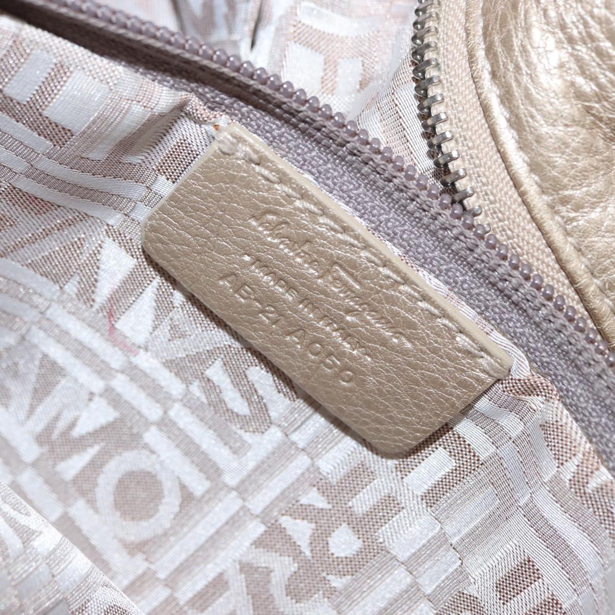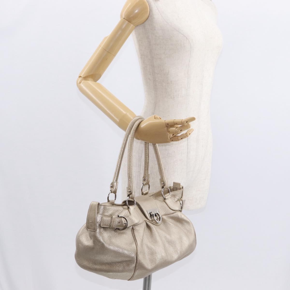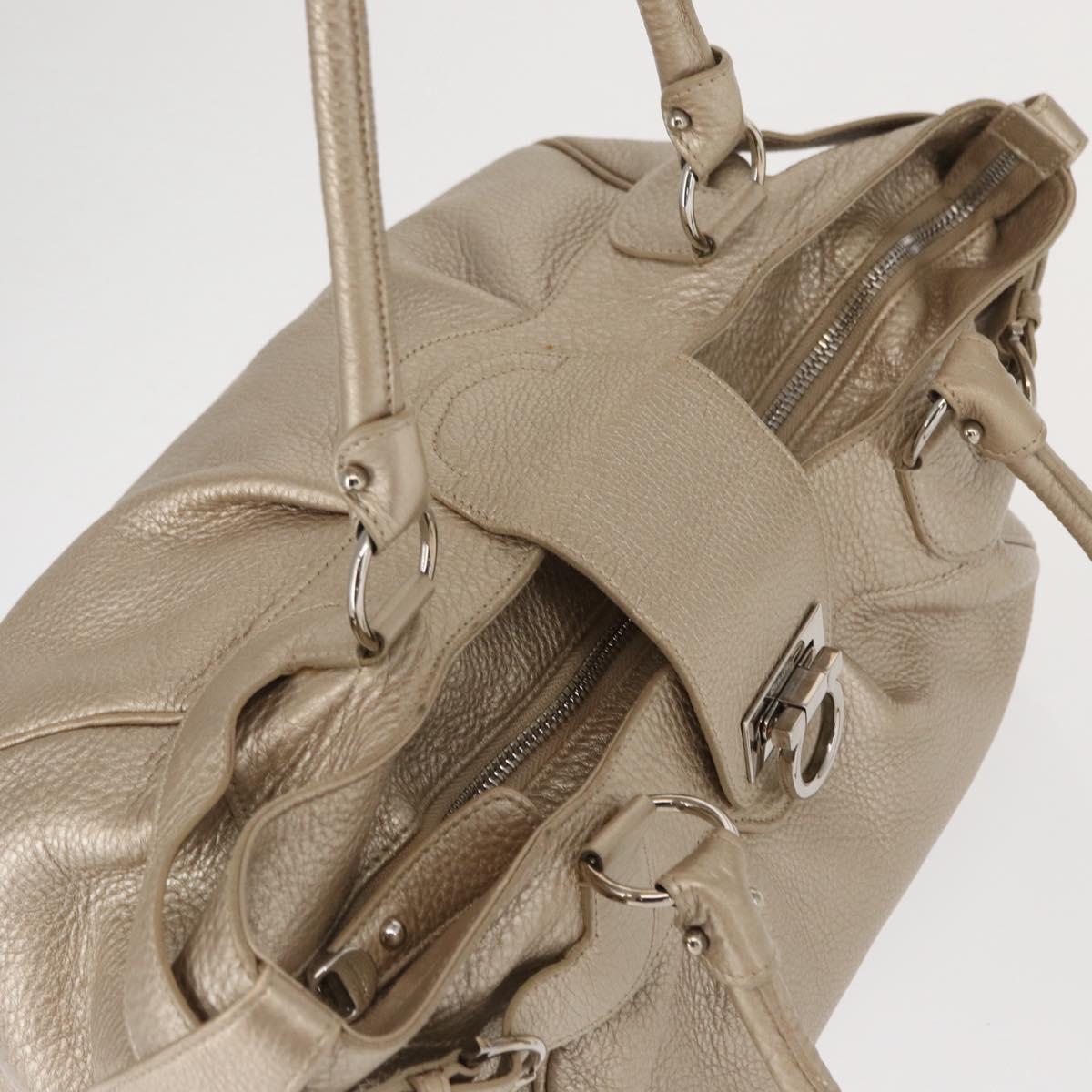 Salvatore Ferragamo Gancini Hand Bag Leather Champagne Gold Silver Auth 161013