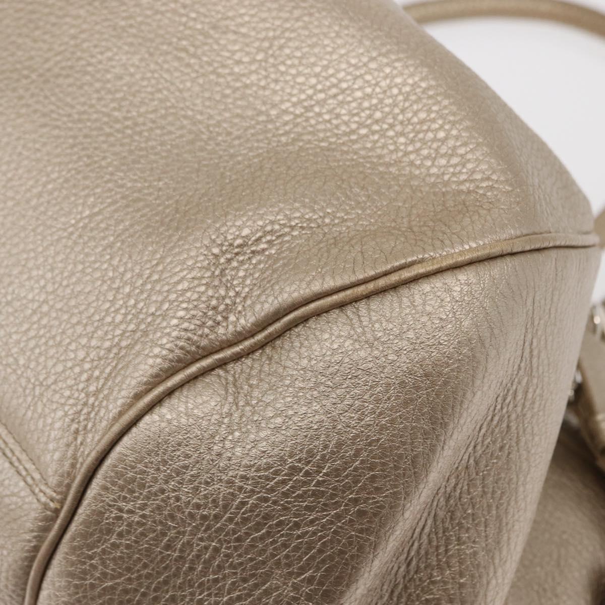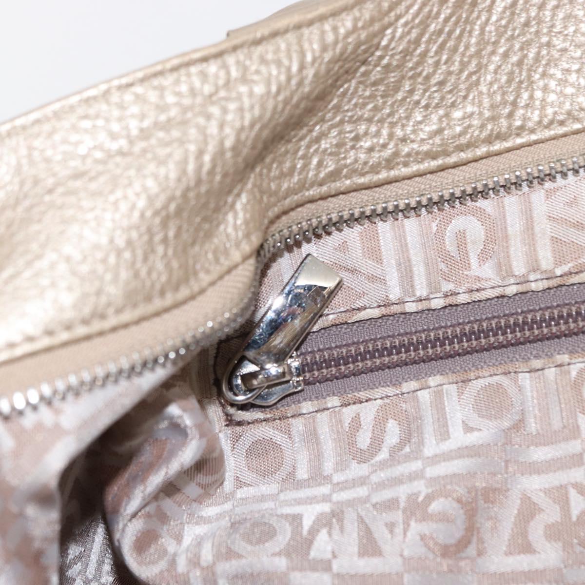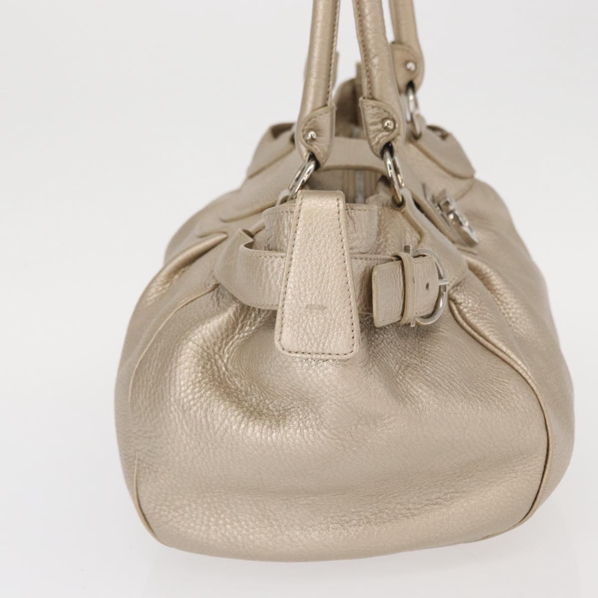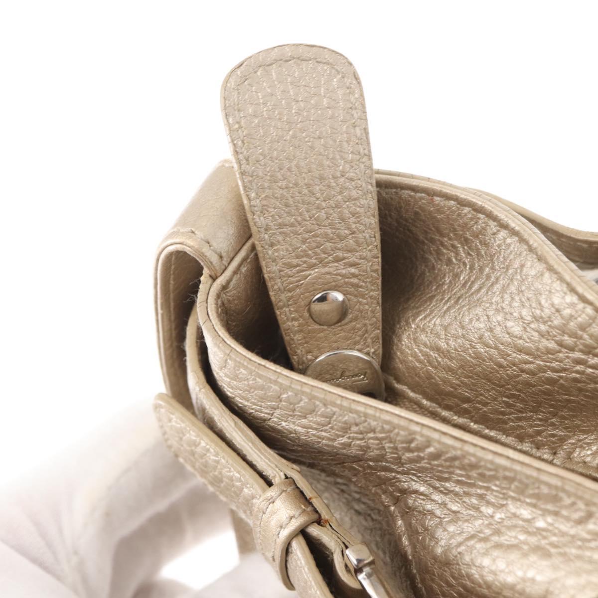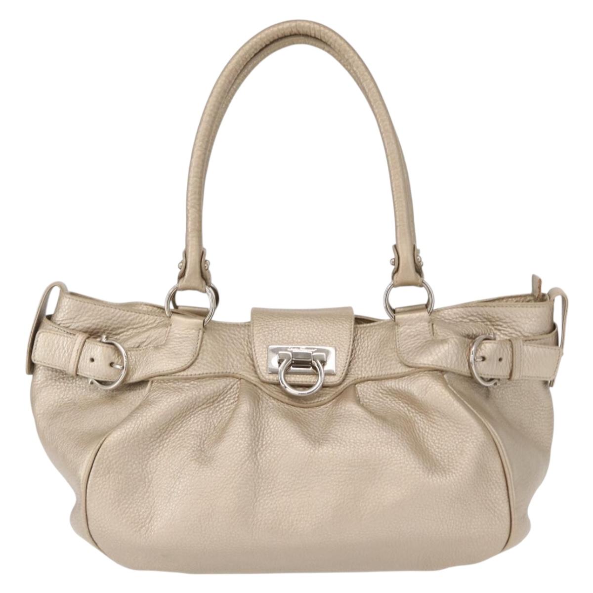 Salvatore Ferragamo Gancini Hand Bag Leather Champagne Gold Silver Auth 161013