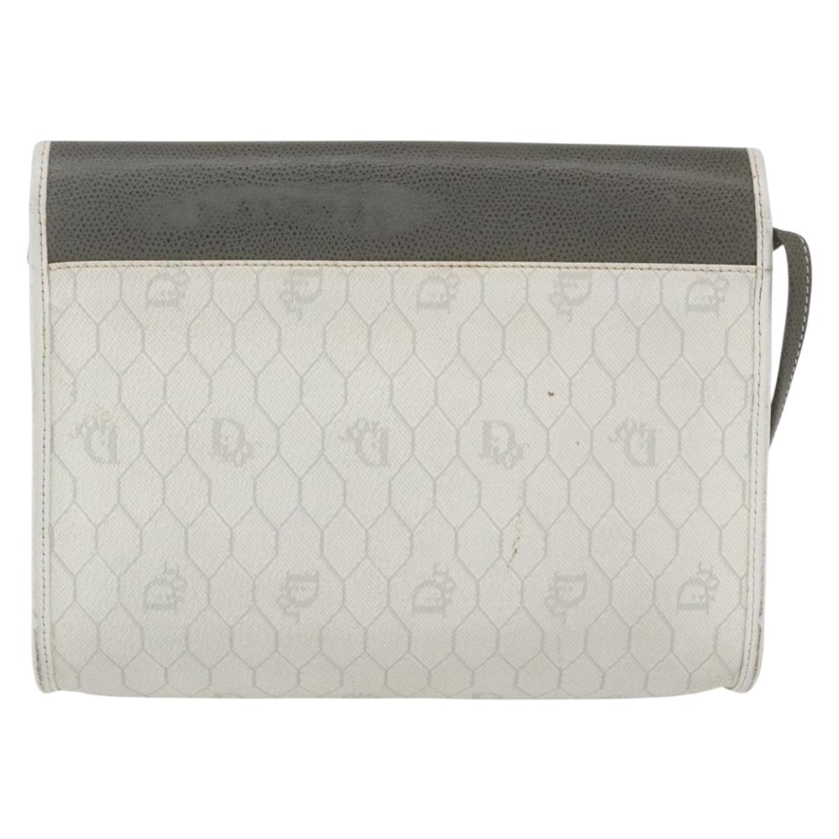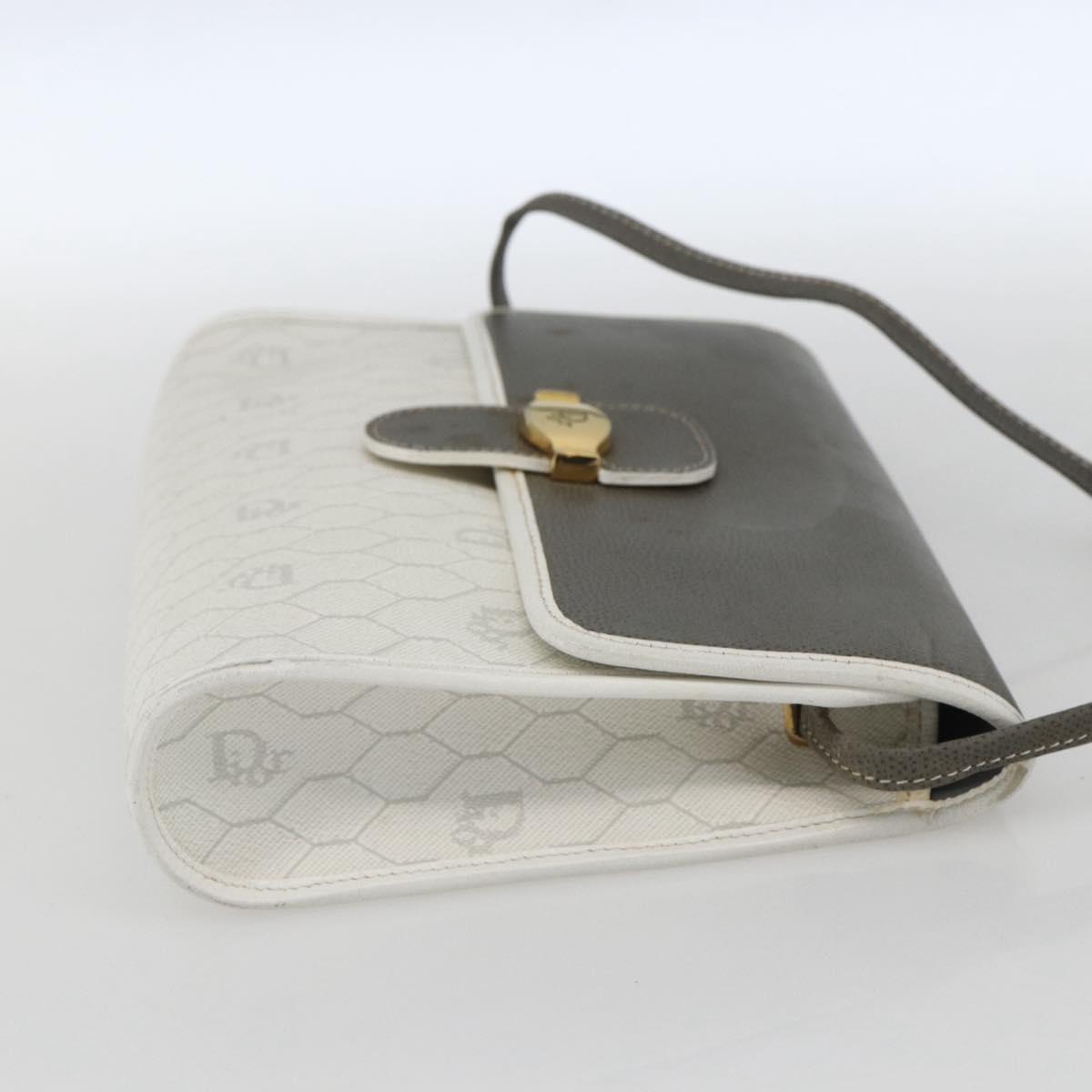 Christian Dior Honeycomb Canvas Shoulder Bag PVC Gold White Auth 161608