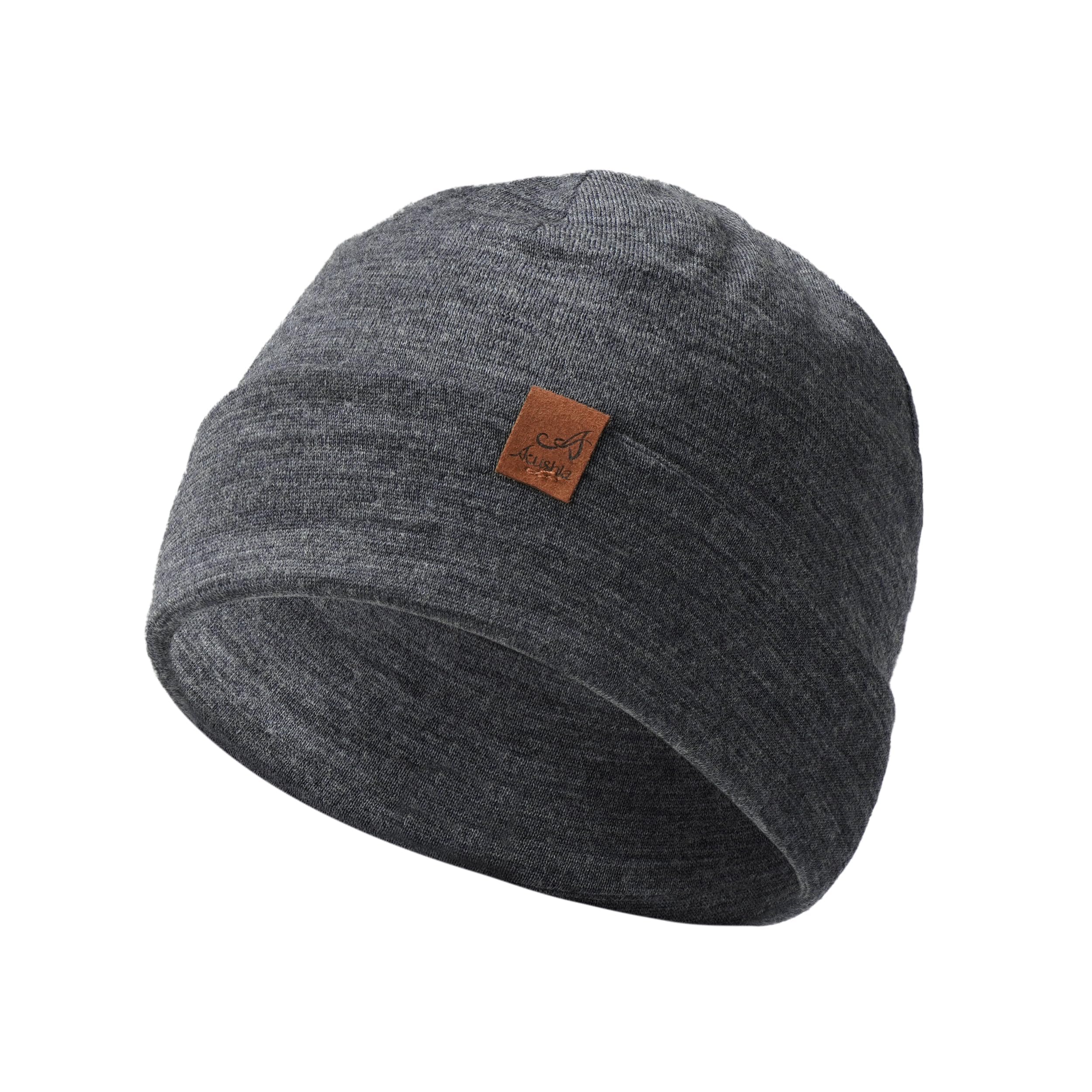 100% Merino Wool Cuff Beanie for Men & Women Knitted Winter Hat Unisex Watch Cap Skull Wrap for Cold Weather, Dark Grey