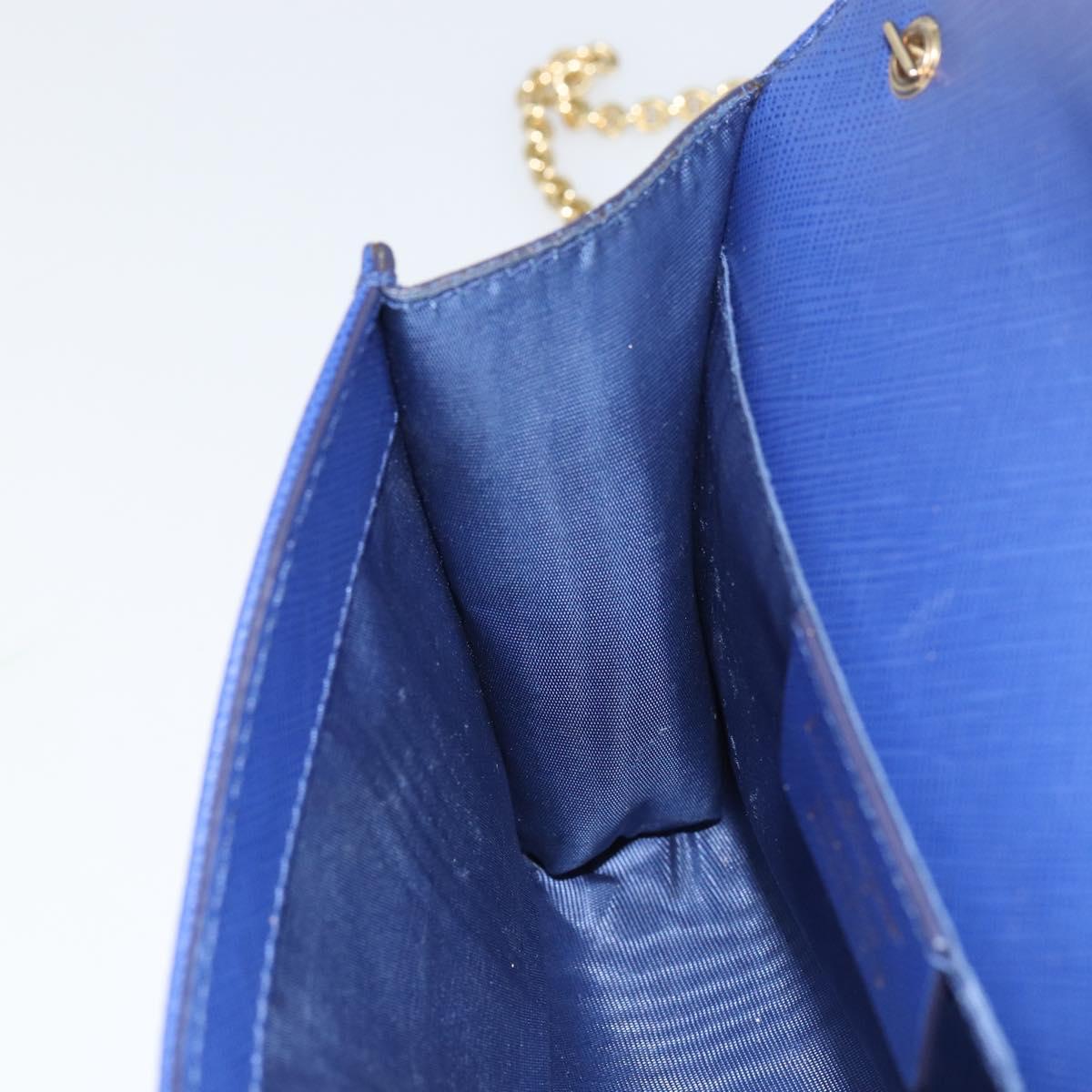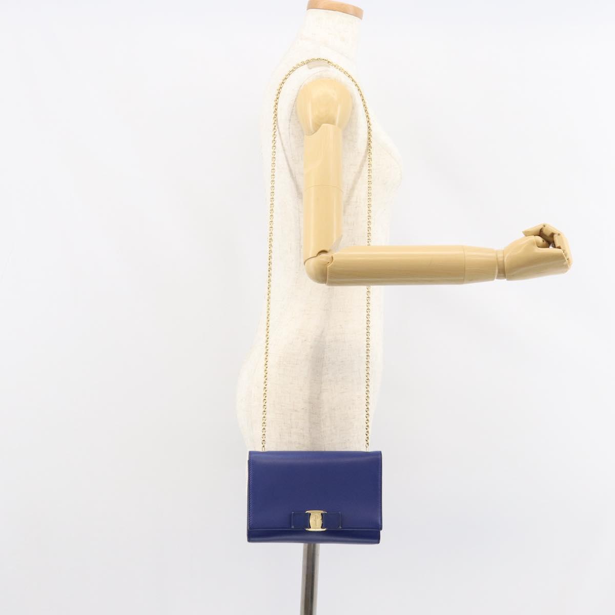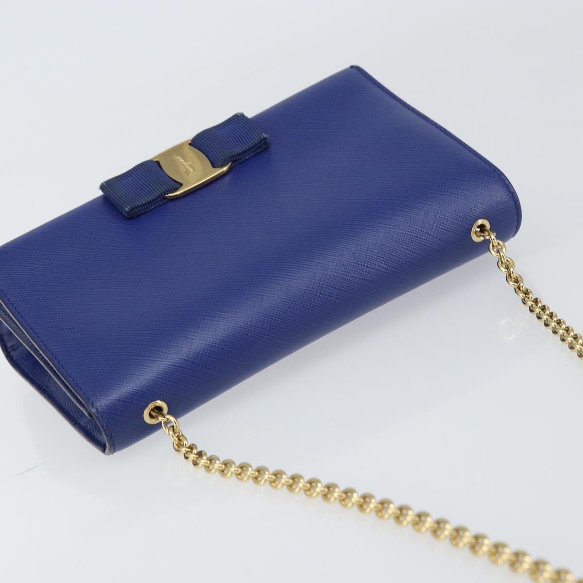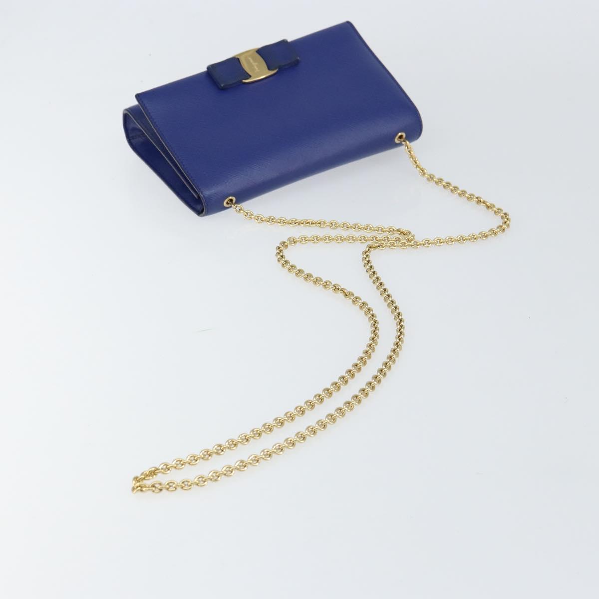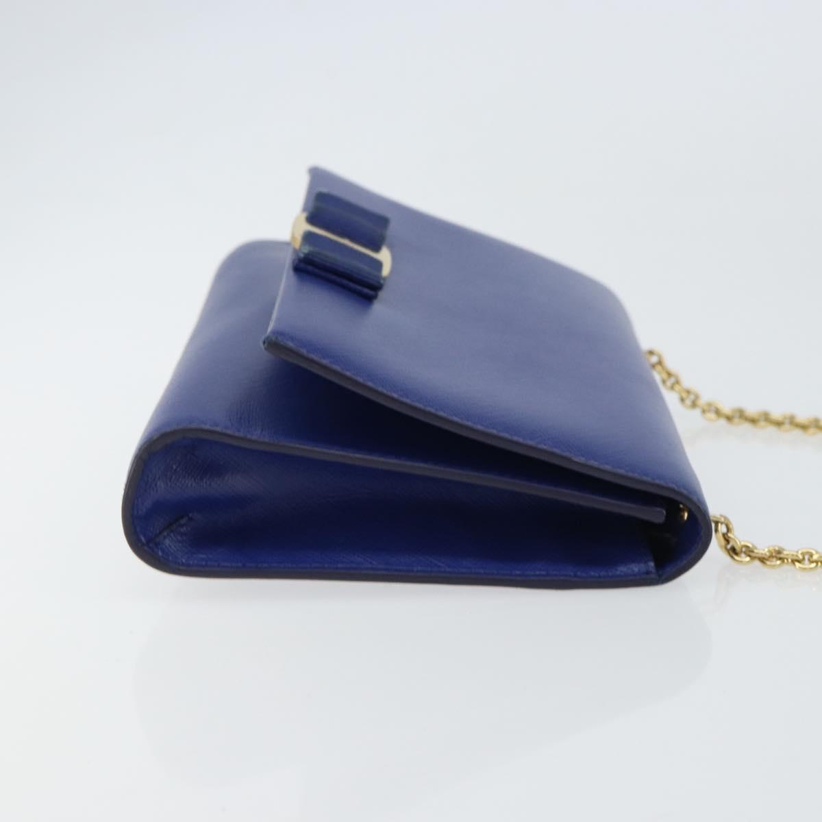 Salvatore Ferragamo Vala Chain Shoulder Bag Leather Blue Gold Auth 161081