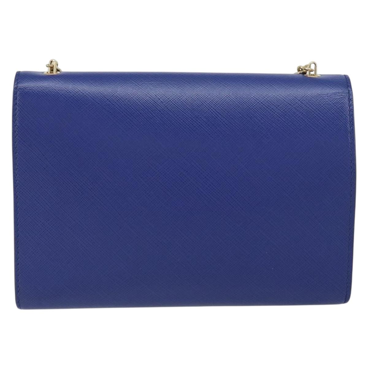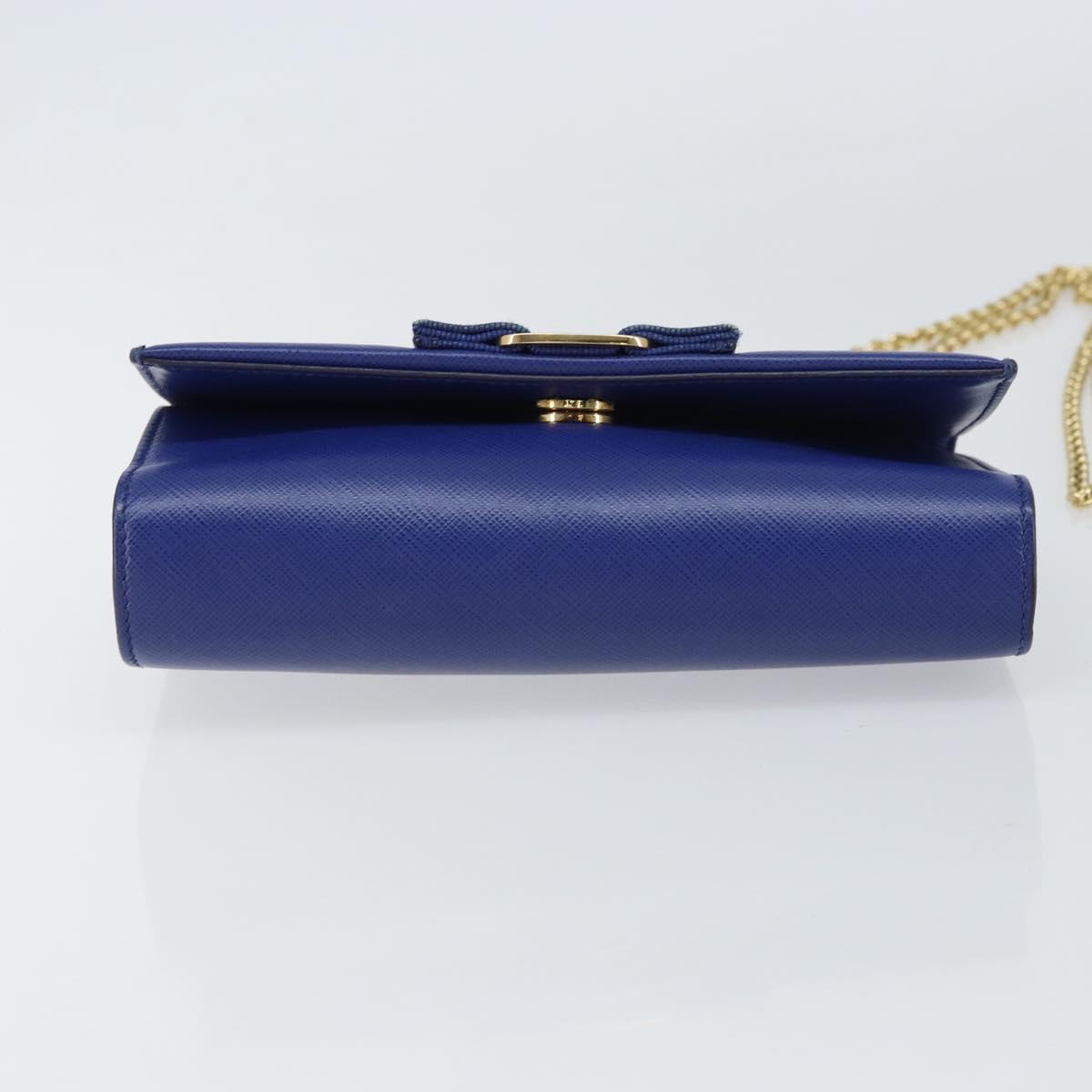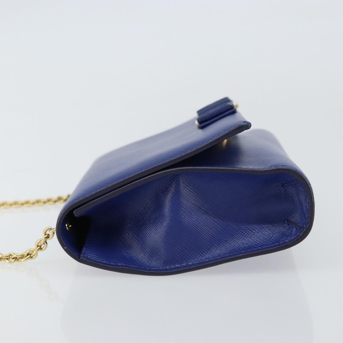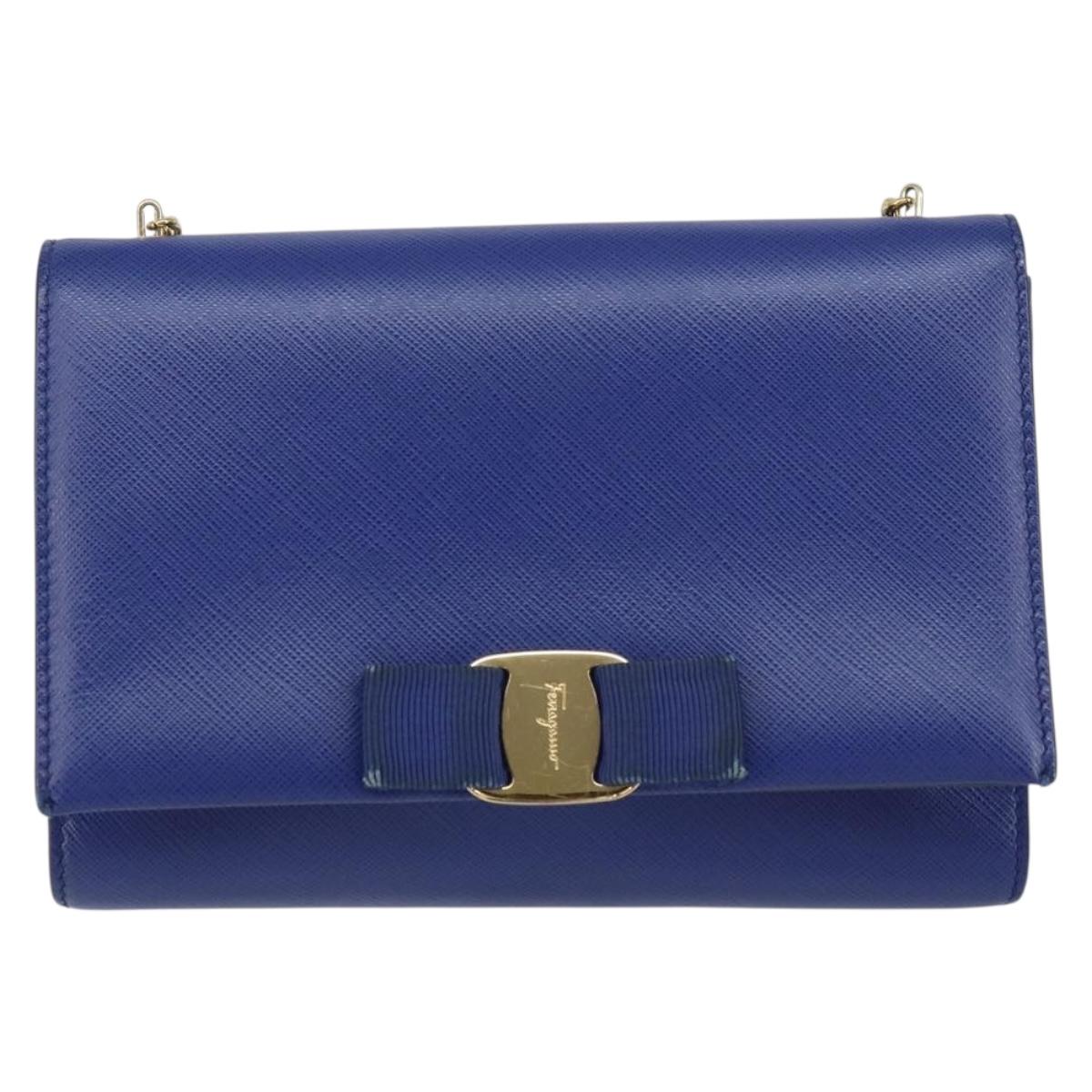 Salvatore Ferragamo Vala Chain Shoulder Bag Leather Blue Gold Auth 161081