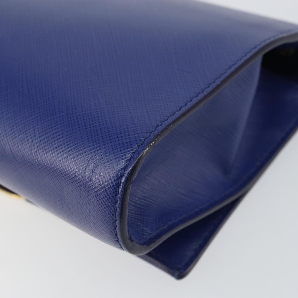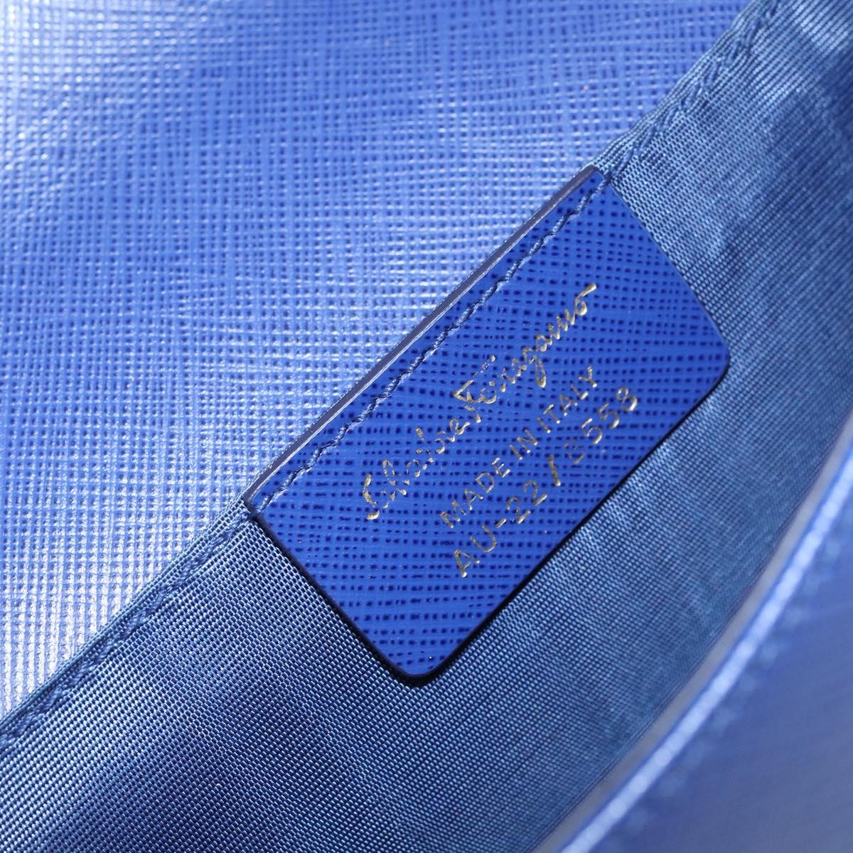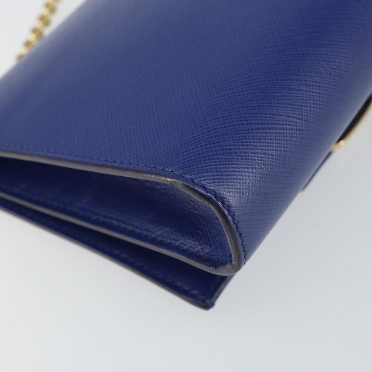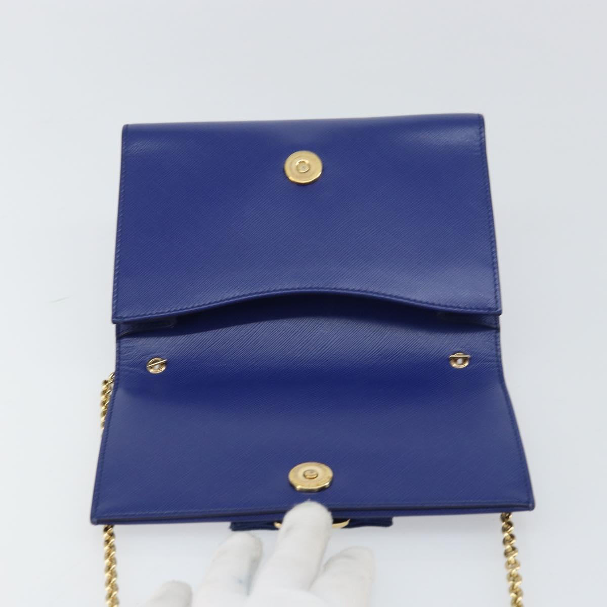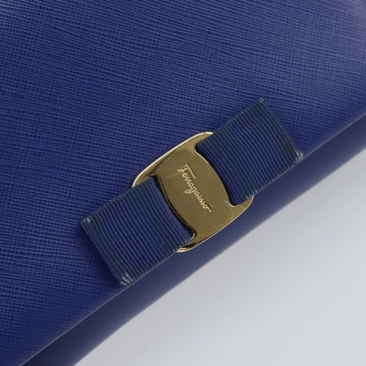 Salvatore Ferragamo Vala Chain Shoulder Bag Leather Blue Gold Auth 161081