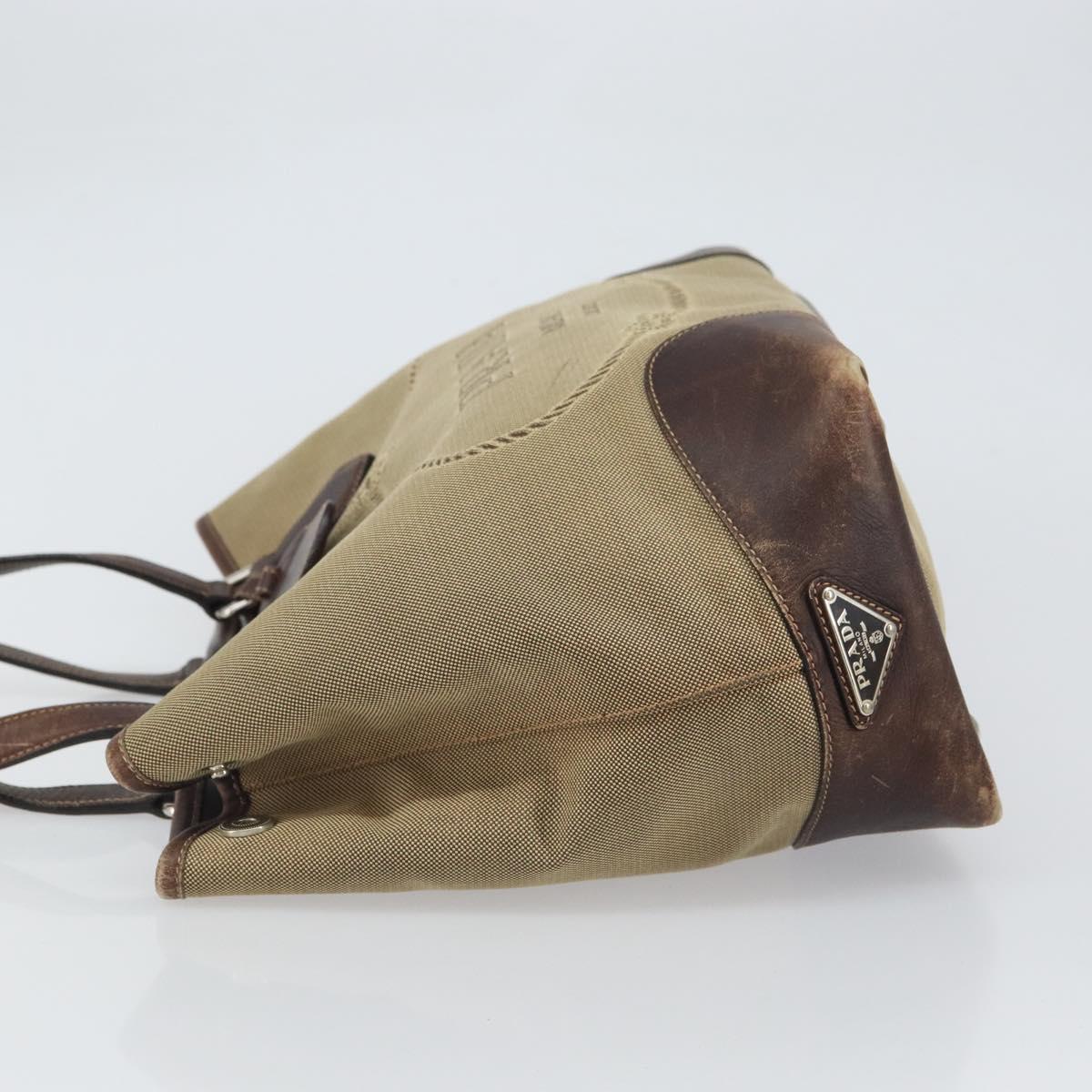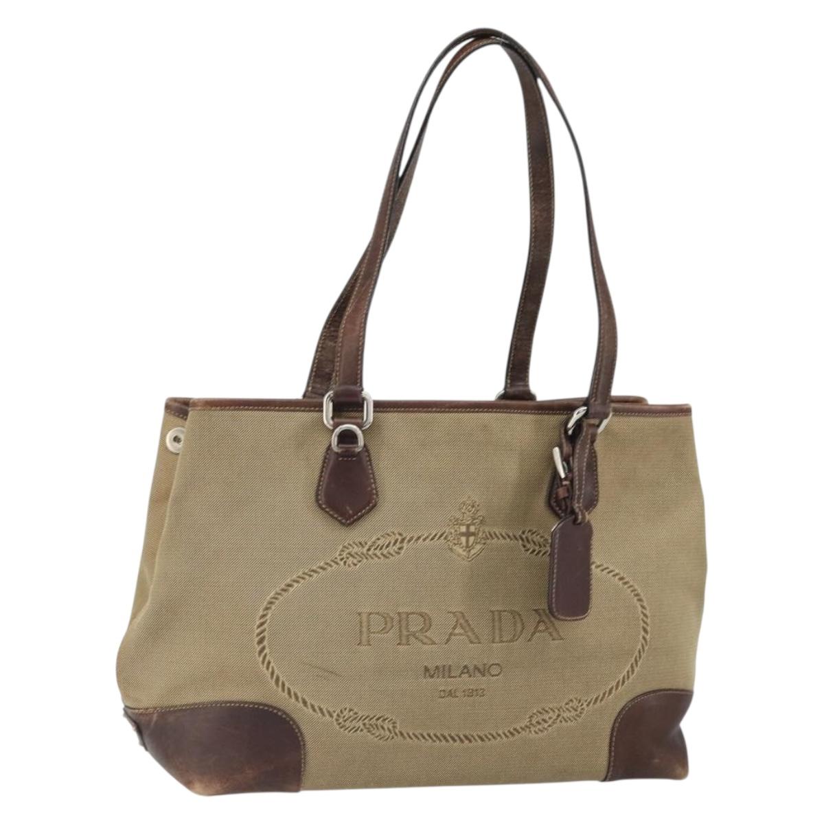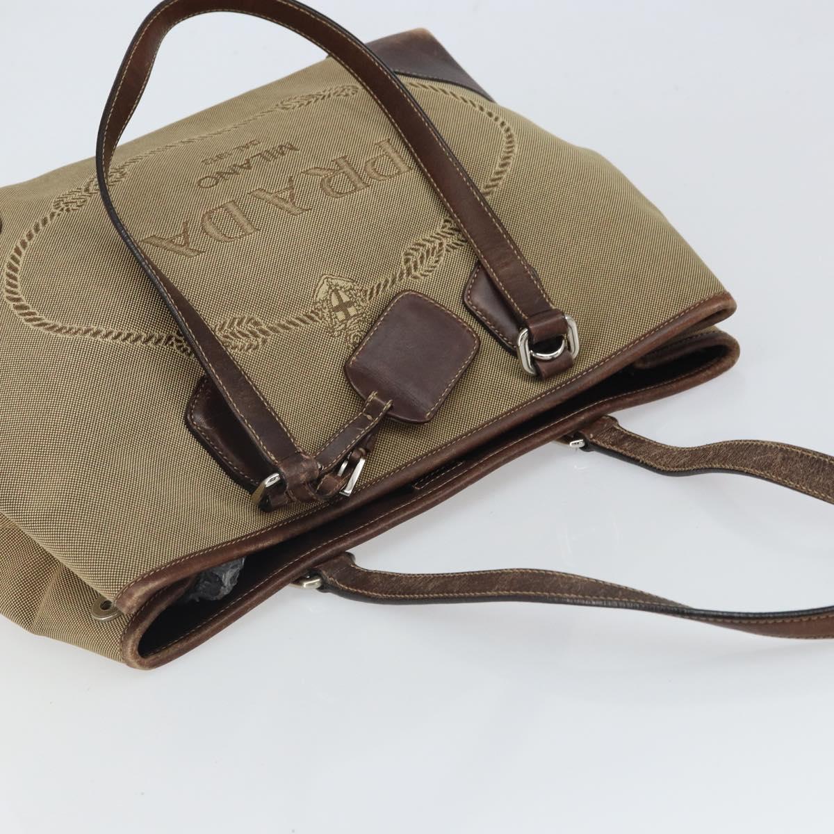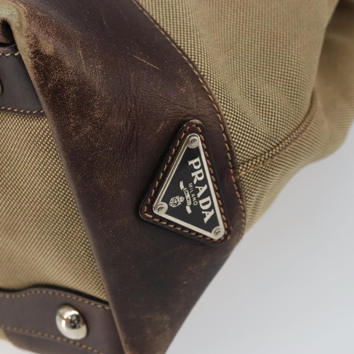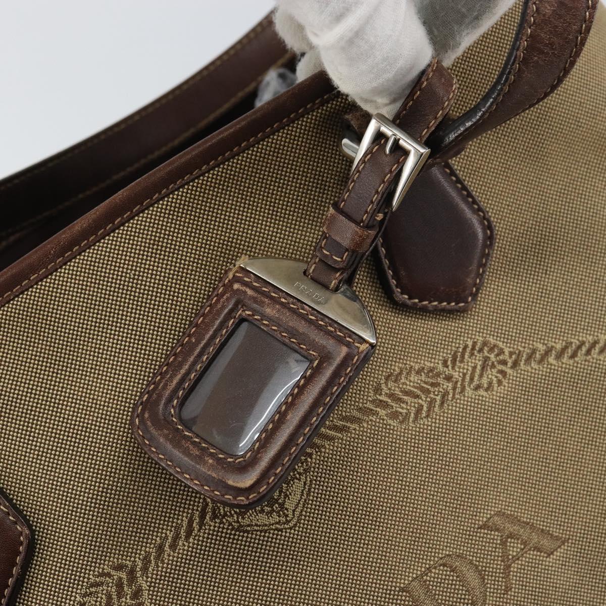 PRADA Tote Bag Canvas Beige Silver Auth 162142