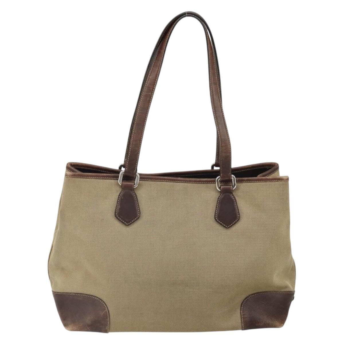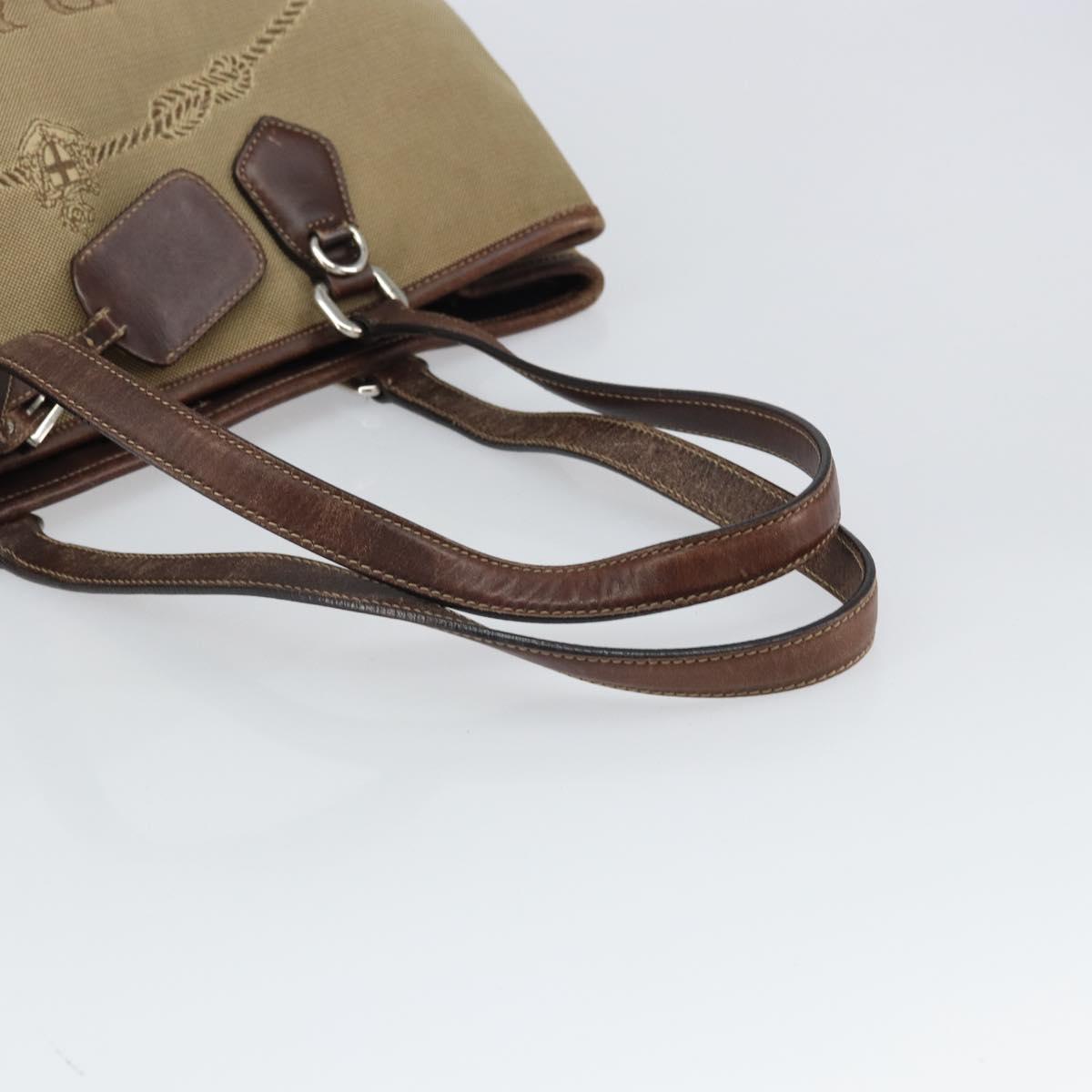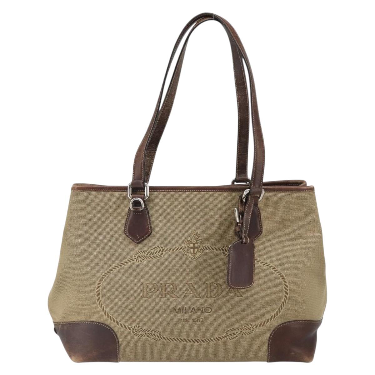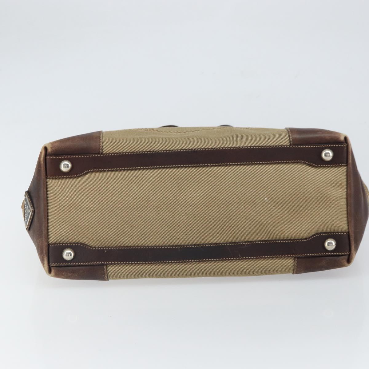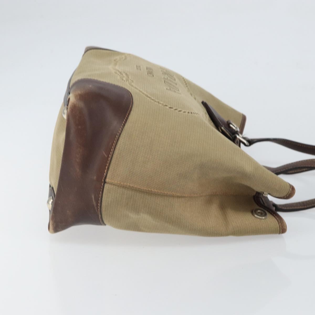 PRADA Tote Bag Canvas Beige Silver Auth 162142