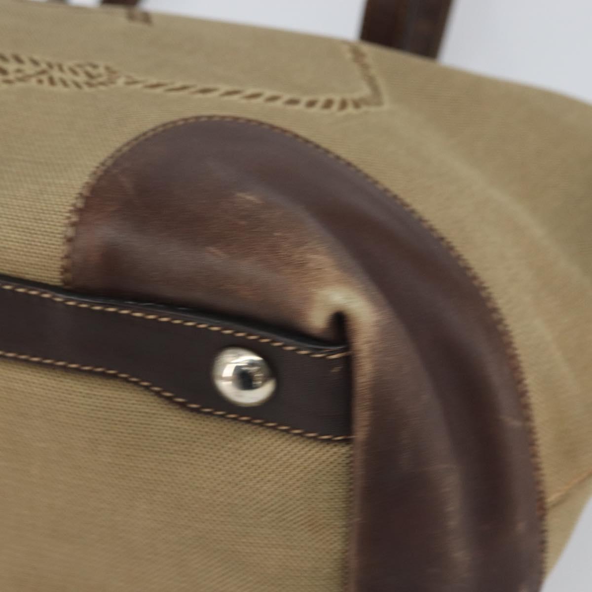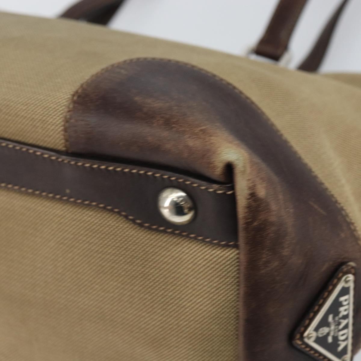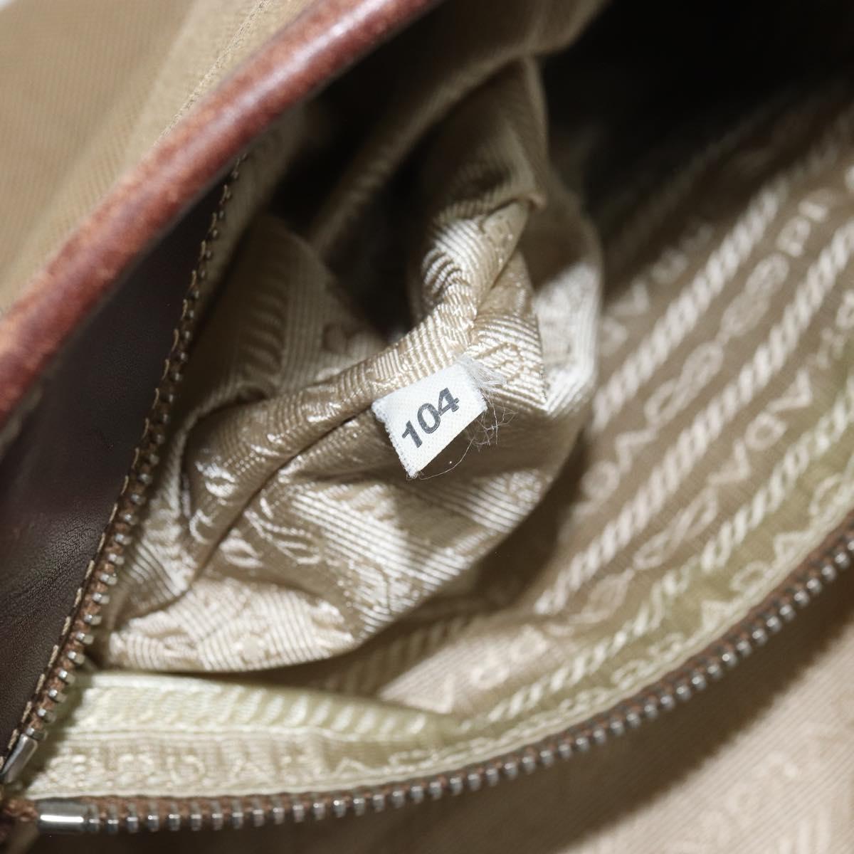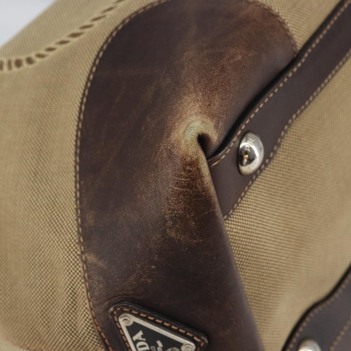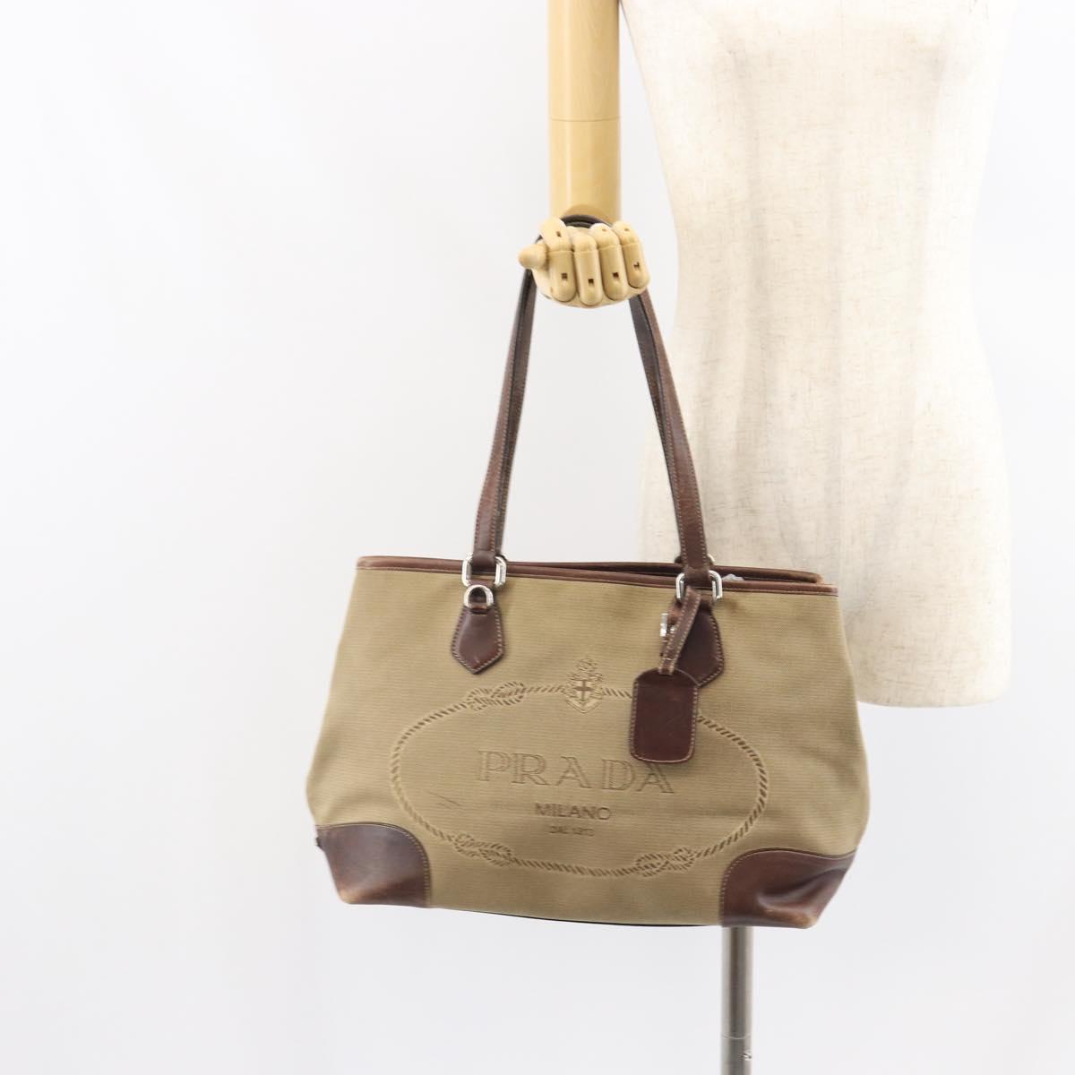 PRADA Tote Bag Canvas Beige Silver Auth 162142