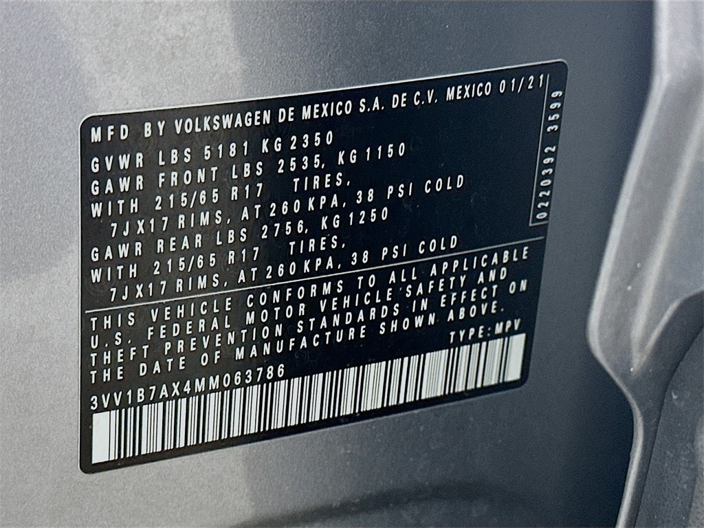 This 2021 Volkswagen Tiguan 2.0T S FWD delivers a refined driving experience with turbocharged efficiency, modern safety technology, and everyday versatility. Powered by a responsive turbocharged 4 cylinder engine paired with a smooth automatic transmission, this Tiguan offers confident acceleration and excellent fuel efficiency for commuting and road trips. Safety features include automatic emergency braking, forward collision warning, blind spot monitoring, rear cross traffic alert, stability control, and a rear backup camera to help support confident daily driving. The interior provides a comfortable and functional cabin with supportive cloth seating, touchscreen infotainment system, Bluetooth connectivity for handsfree calls and audio streaming, steering wheel mounted controls, cruise control, multiple storage areas, and a spacious cargo area for added practicality. Exterior highlights include LED brake lights, roof rack side rails, deep tinted glass, body color bumpers and door handles, power heated mirrors with integrated turn signals, and a clean, modern Volkswagen design. With its certified status and clean history, this Tiguan is a smart choice for drivers seeking reliability, comfort, and value in a compact SUV.