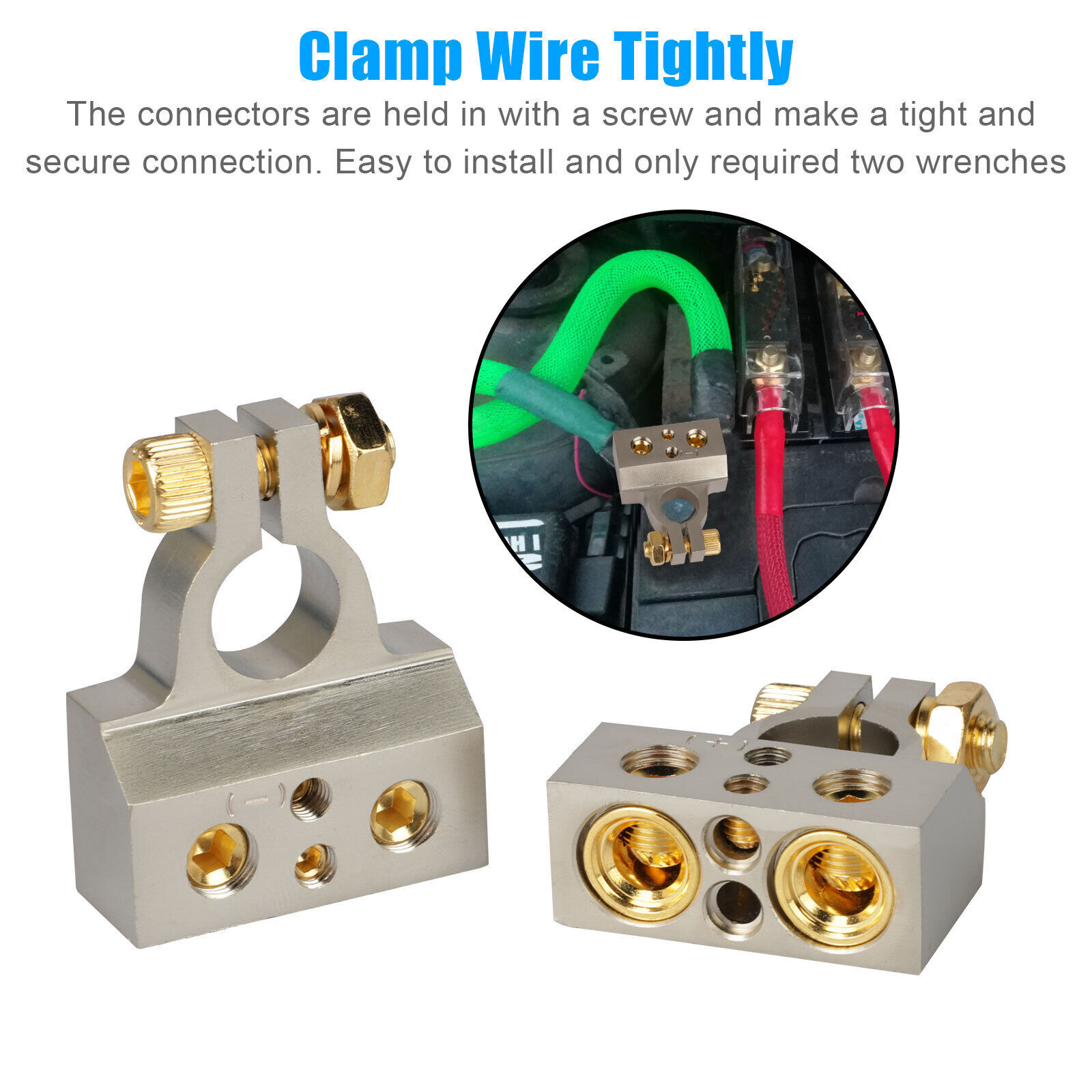- 【Clamp Wire Tightly】The connectors are held in with a screw and make a tight and secure connection. Easy to install and only required two wrenches