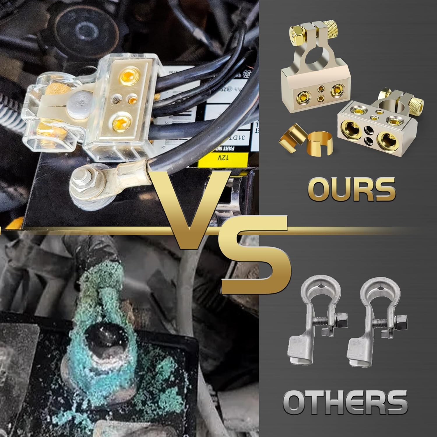 - 【Sturdy & Durable】 Zinc Alloy and Copper Material for Strong Electrical Conductivity, Super Corrosion Resistance, Reduce Current Transmission Loss. Also, protect battery post against corrosion for long battery lifetime