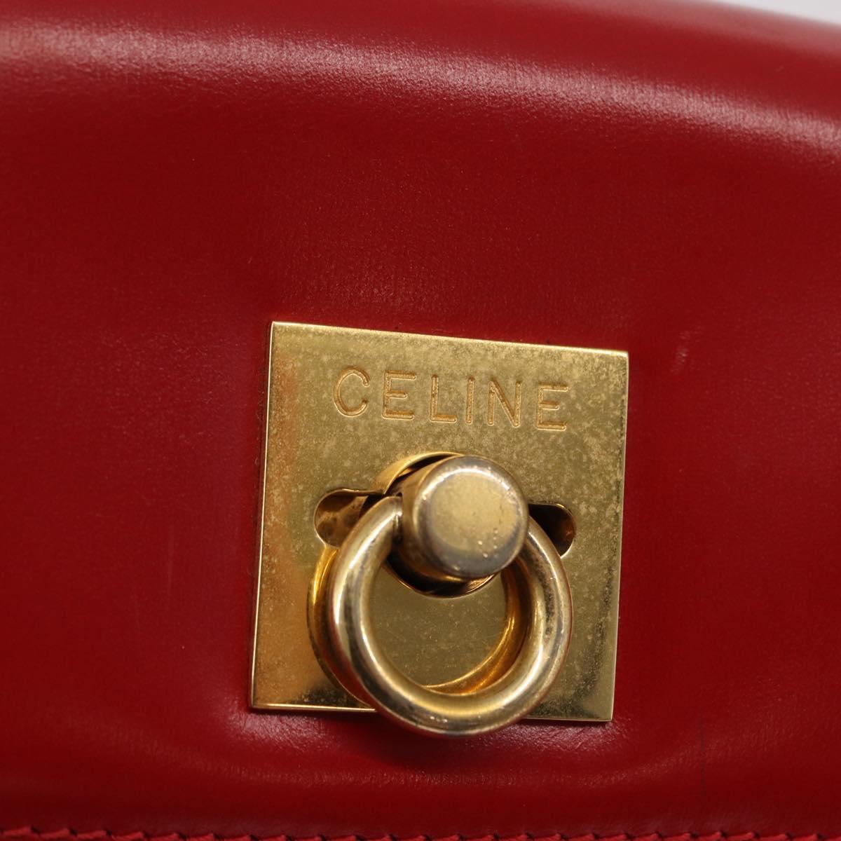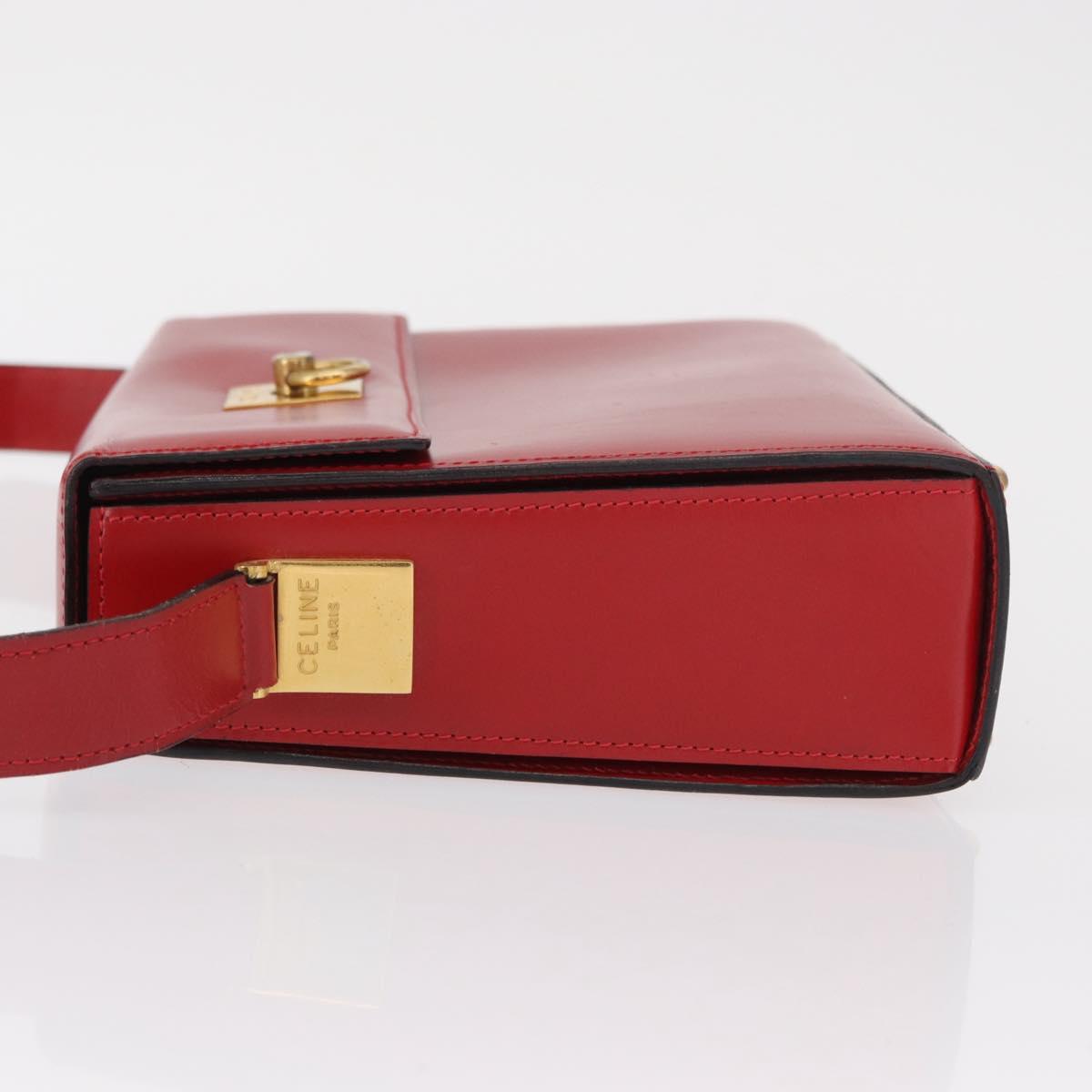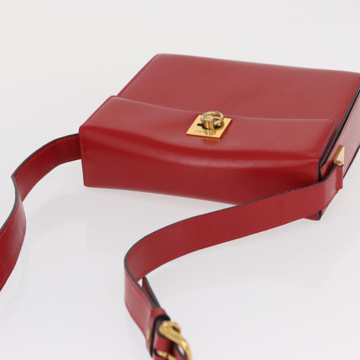 CELINE Shoulder Bag Leather Red Gold Auth 162839