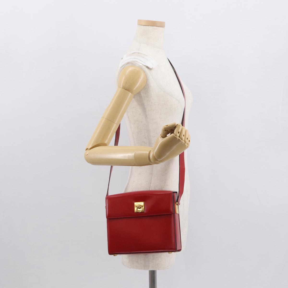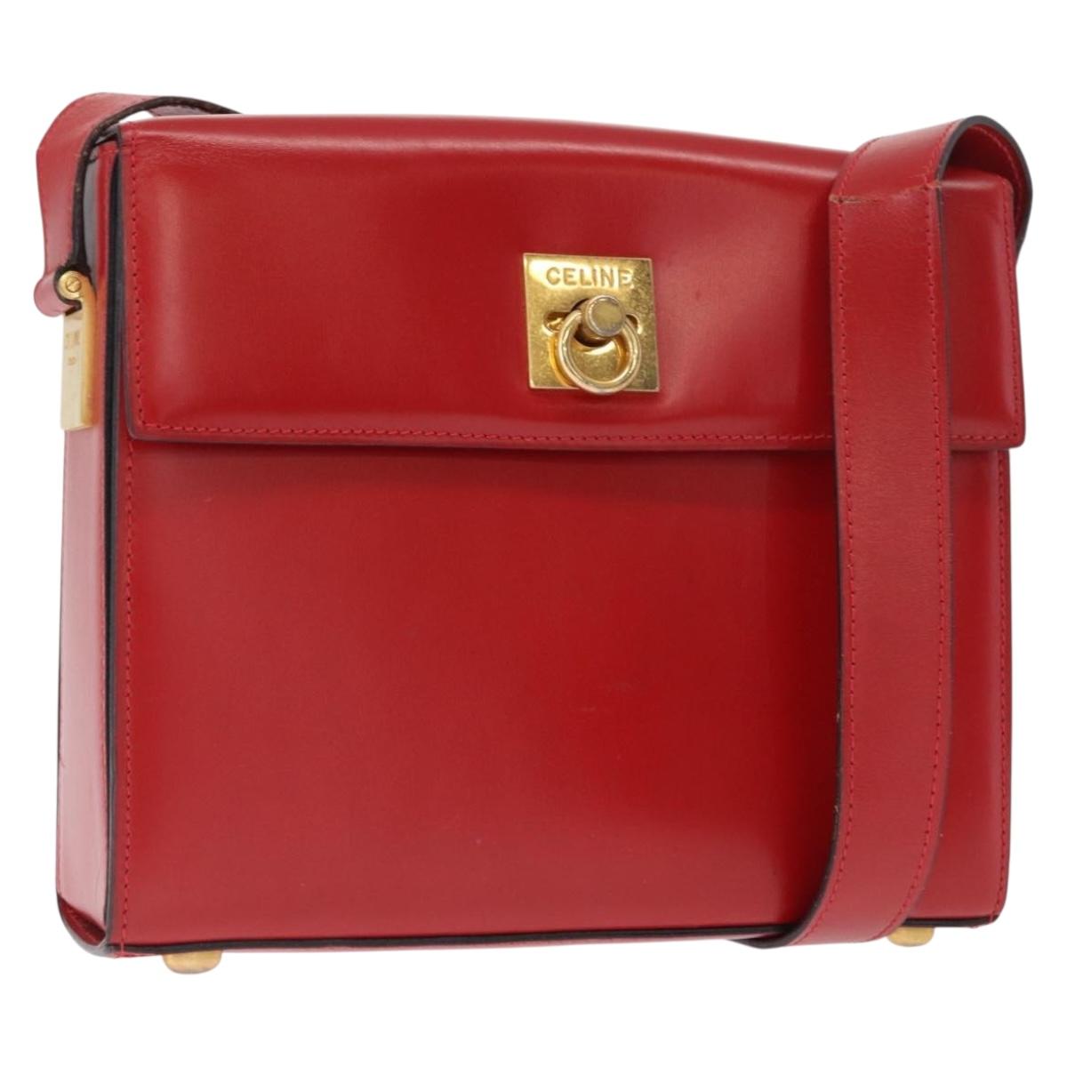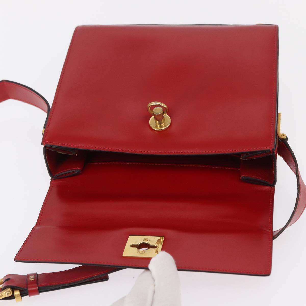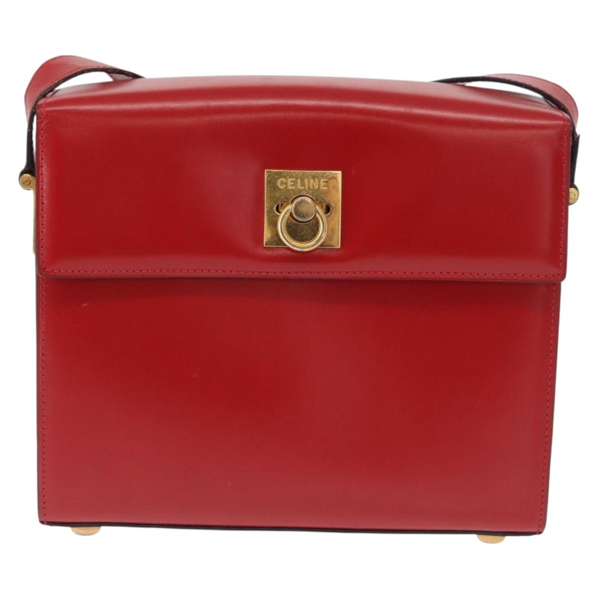 CELINE Shoulder Bag Leather Red Gold Auth 162839