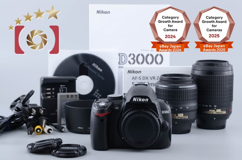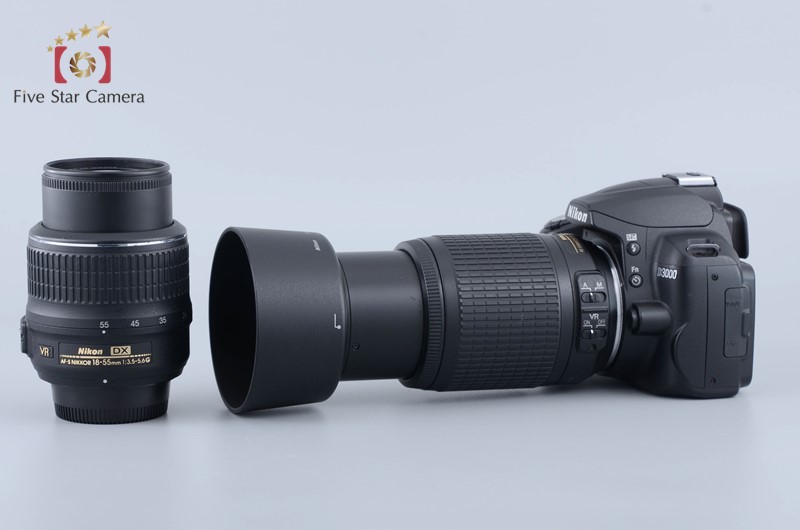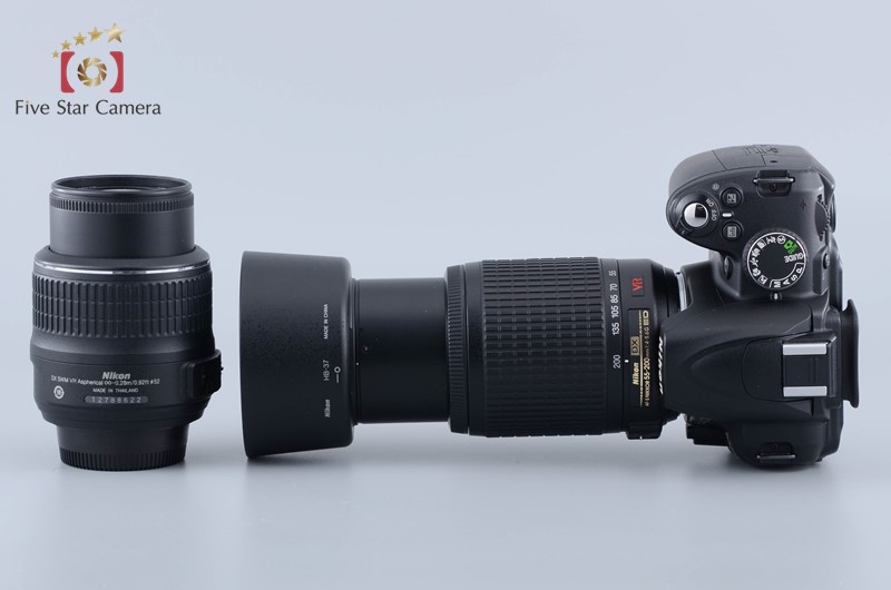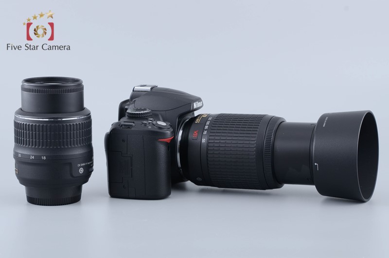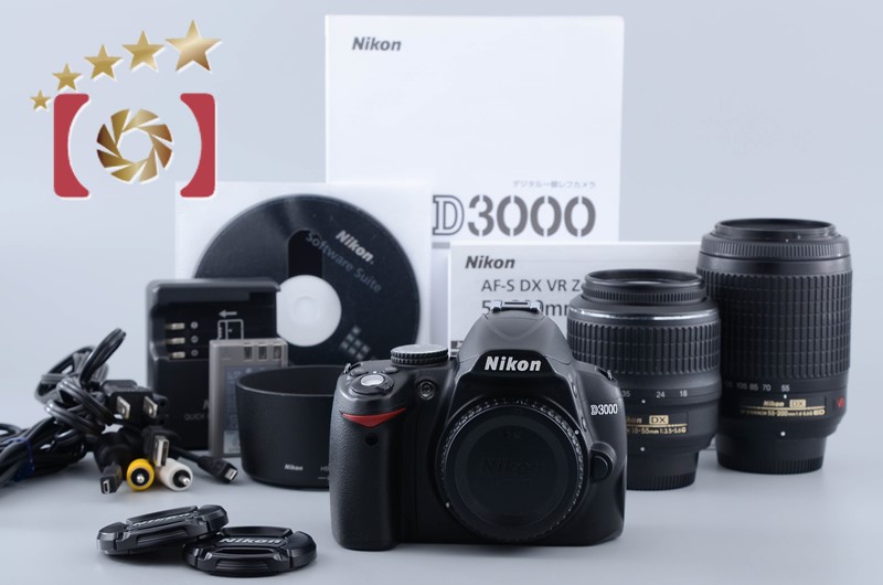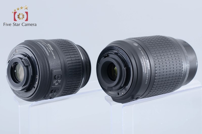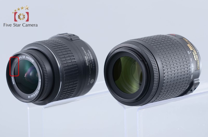 | Appearance | Please refer photo. The exterior has slight signs of use and shine due to wear. There are scratches around the front element of the 18-55mm lens, the silver line has deteriorated, and the paint on the 55-200mm lens has peeled off. |