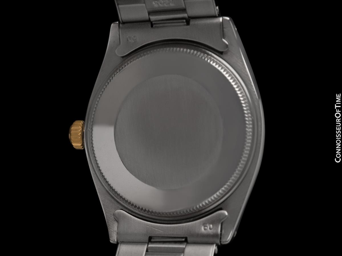 steel with 14K gold bezel, signed Rolex, three-body, polished