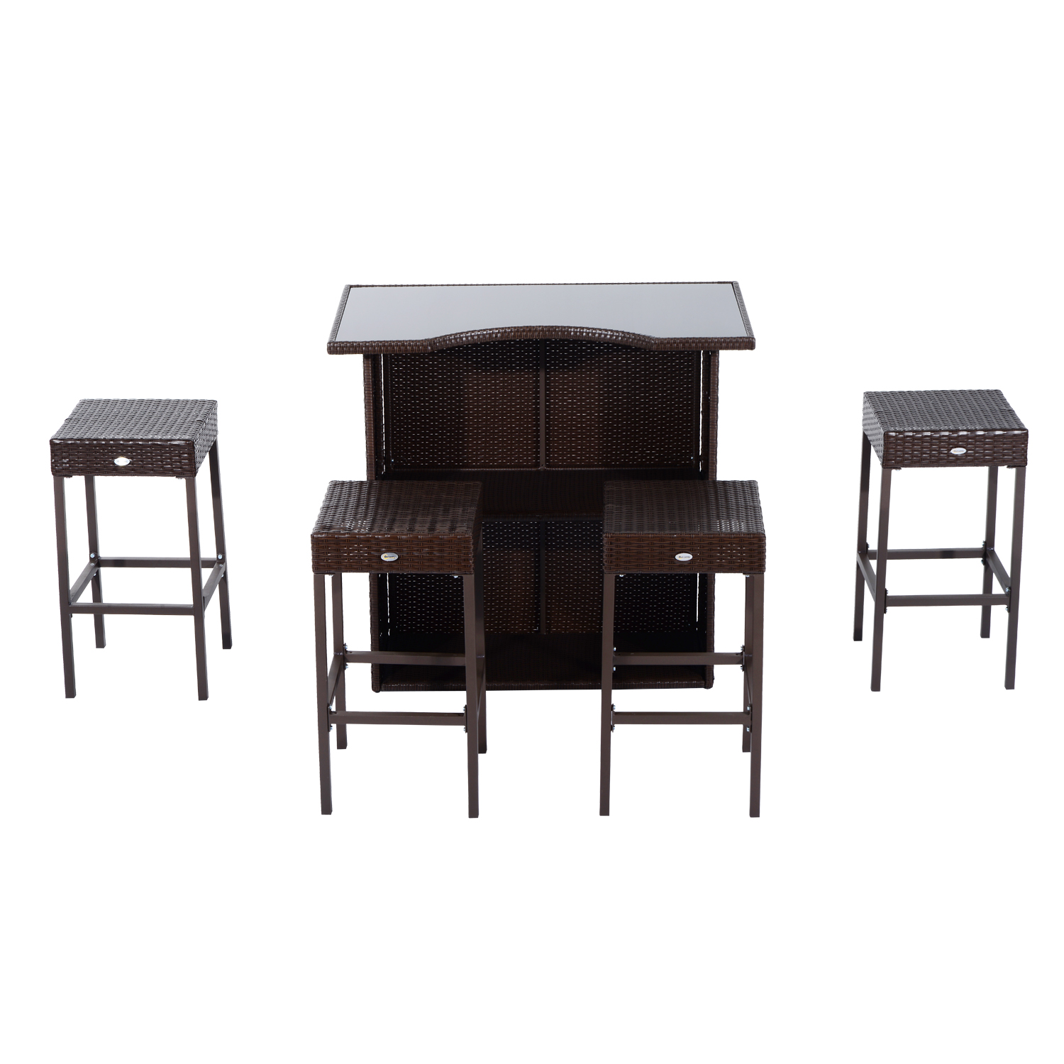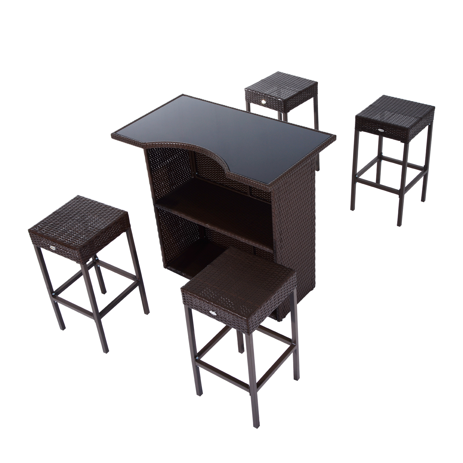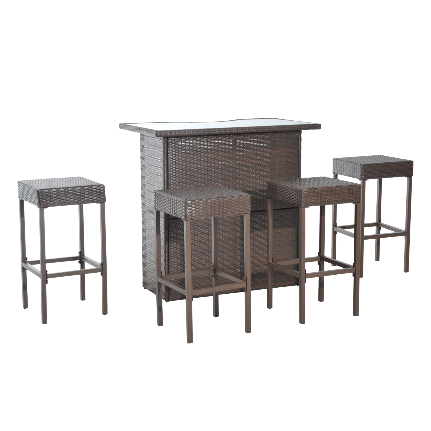 Every hour is happy hour when you spend it enjoying your bar height outdoor table and chairs set from UIRIO. The stylish, all-weather outdoor wicker bar contains everything you need for year-round hosting. This patio bar table and chairs set features a bar table with glass top and four bar stools for endless entertaining.