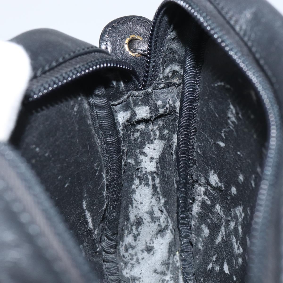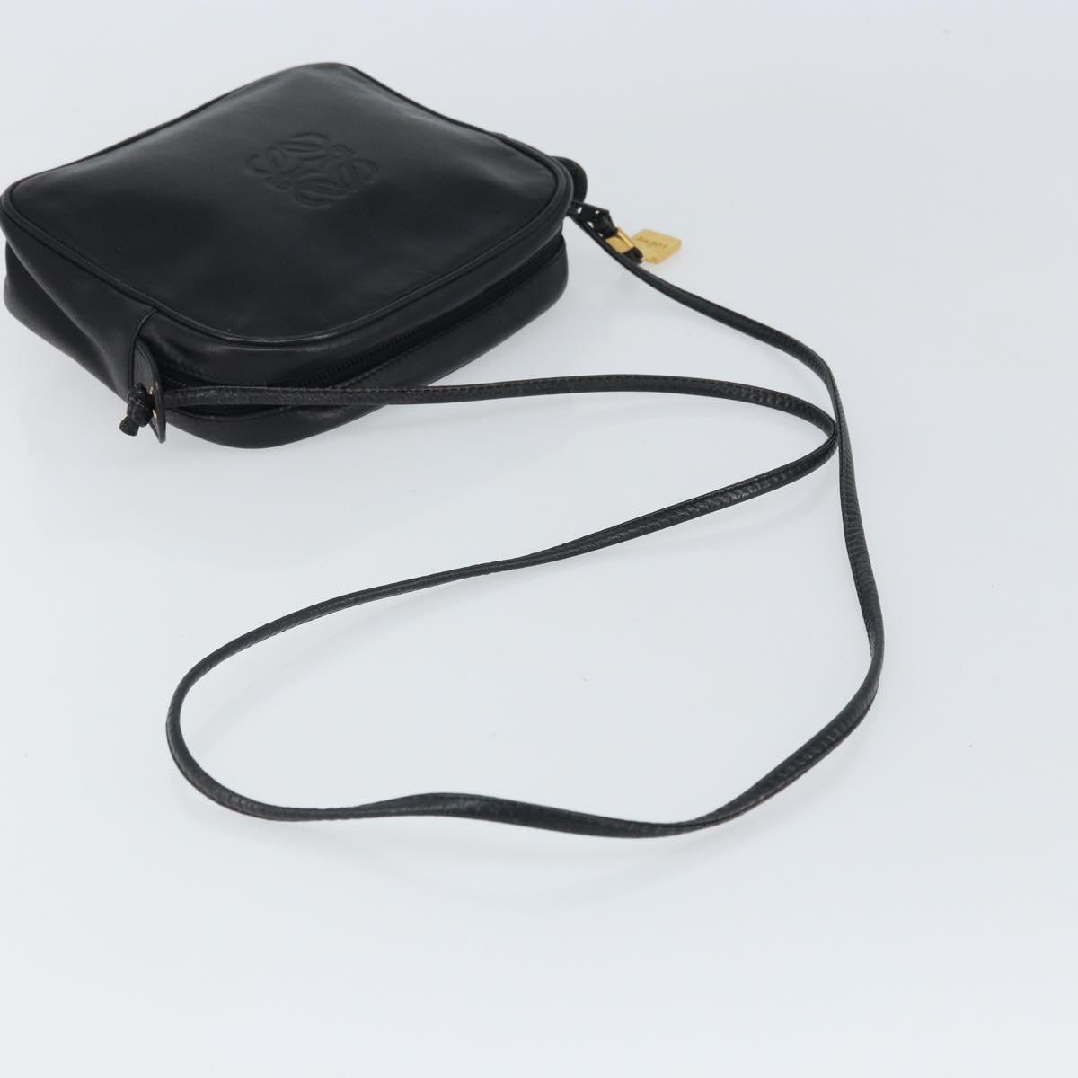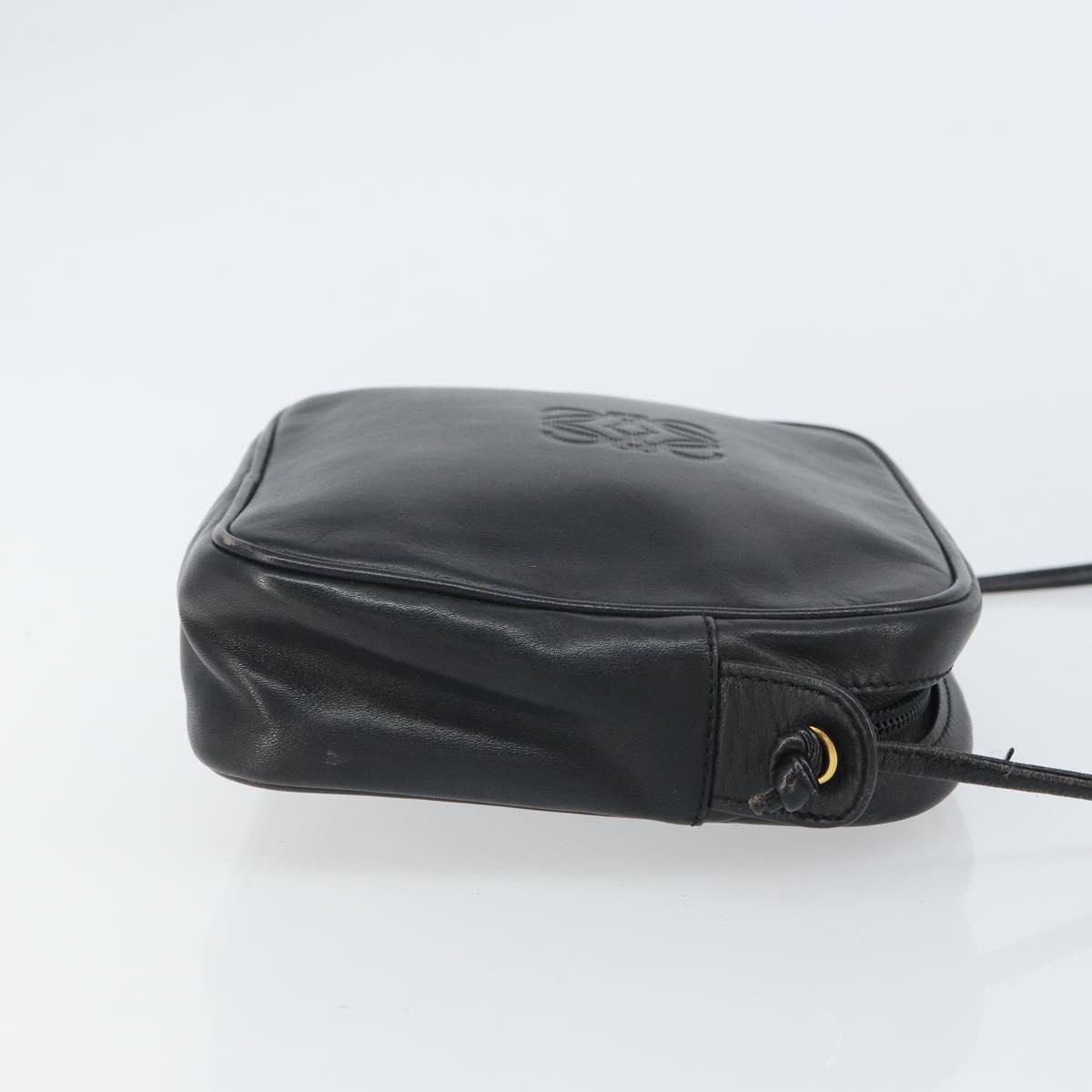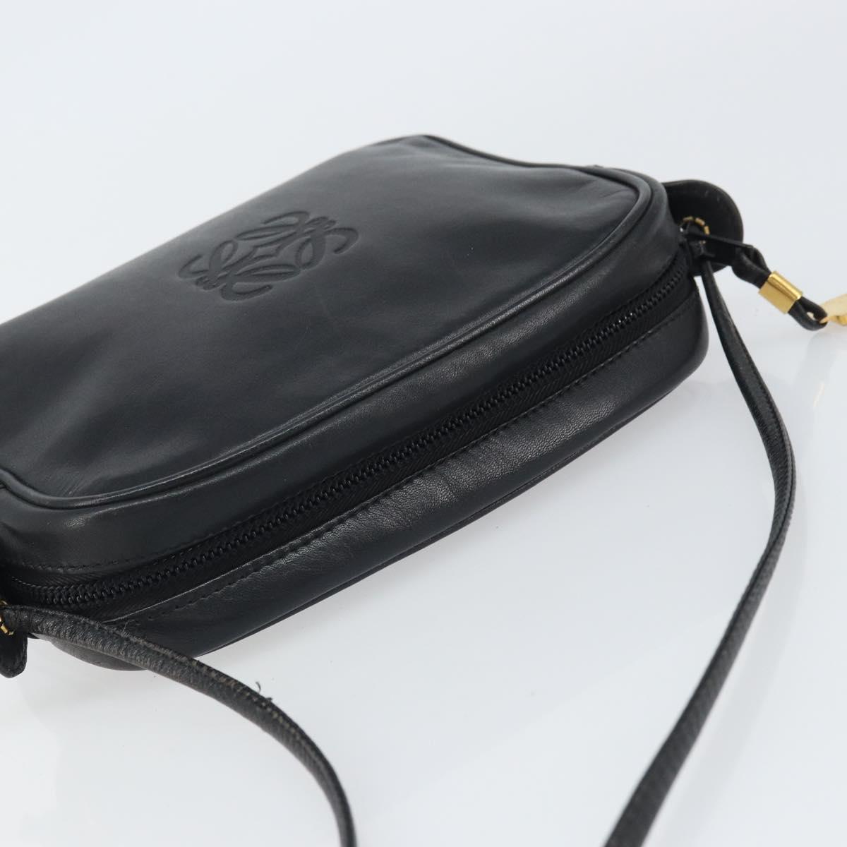 LOEWE Anagram Shoulder Bag Leather Black Gold Auth 162165