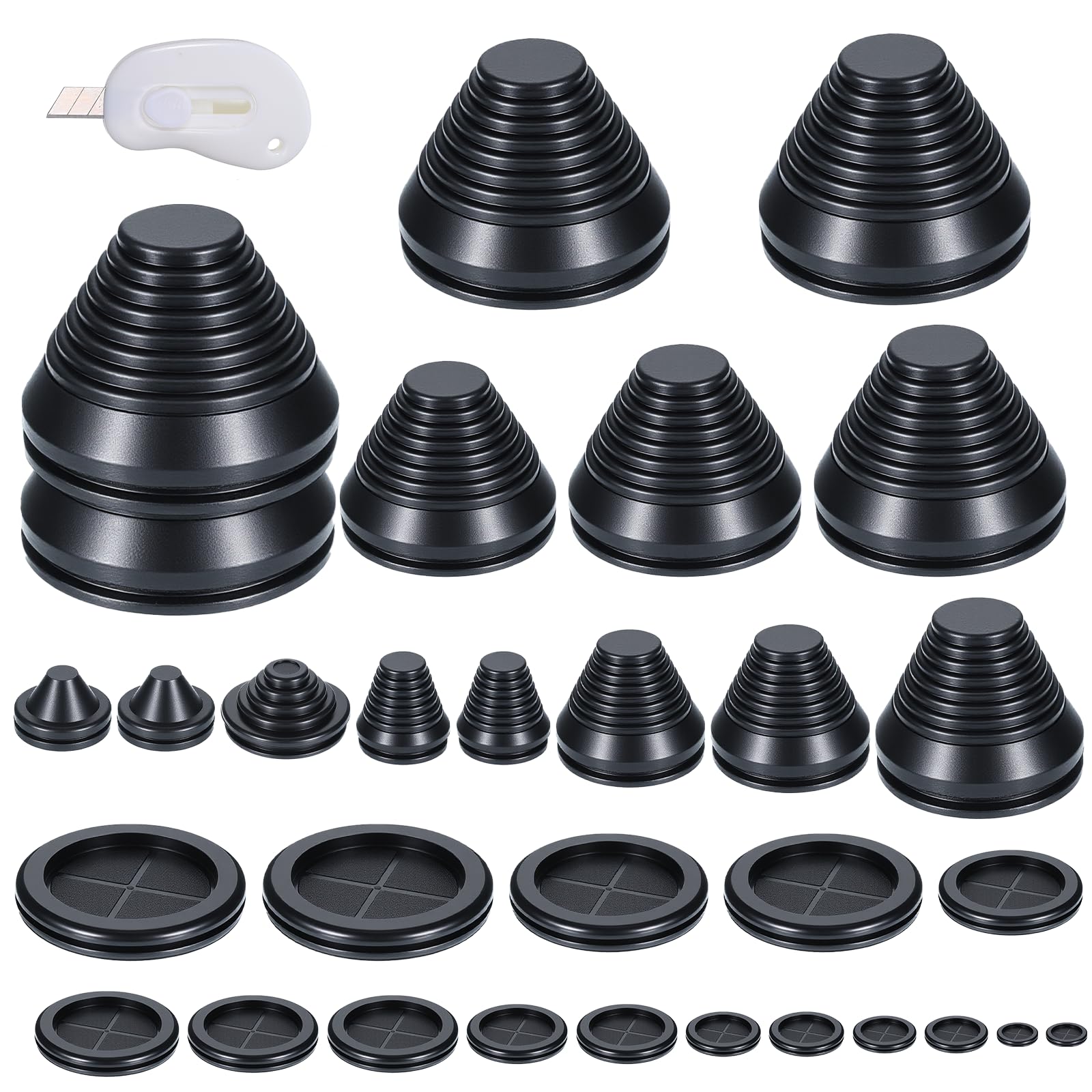 【Value Packaging】You will receive 14 tower cable grommets and 16 round cable grommets, with a retractable knife, and other tools are required to customize the cable grommets
