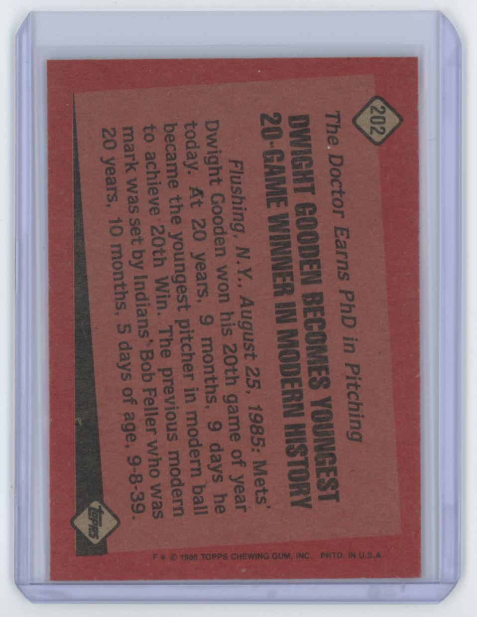 | Description: | Dwight Gooden. | | Category: | Baseball | | Year: | 1986 | | Product: | Topps | | Team: | New York Mets | | Card Number: | 202 | | Dimensions: | 4" x 3" |