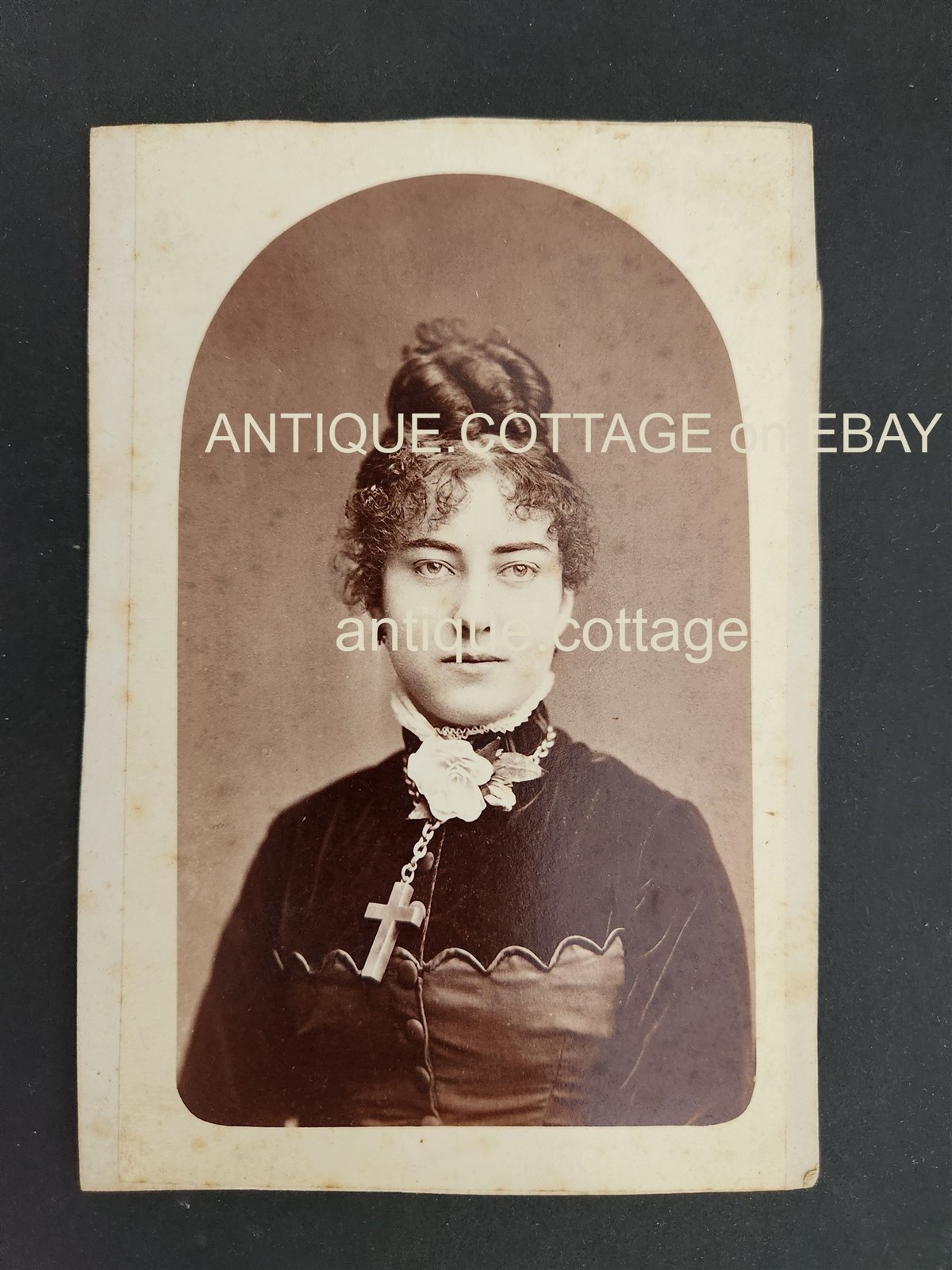 antique PHOTOGRAPH san jose ca ANNIE OSGOOD fashion lady hair CROSS NECKLACE