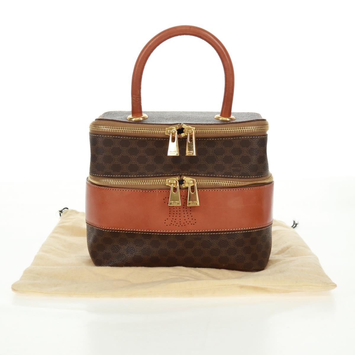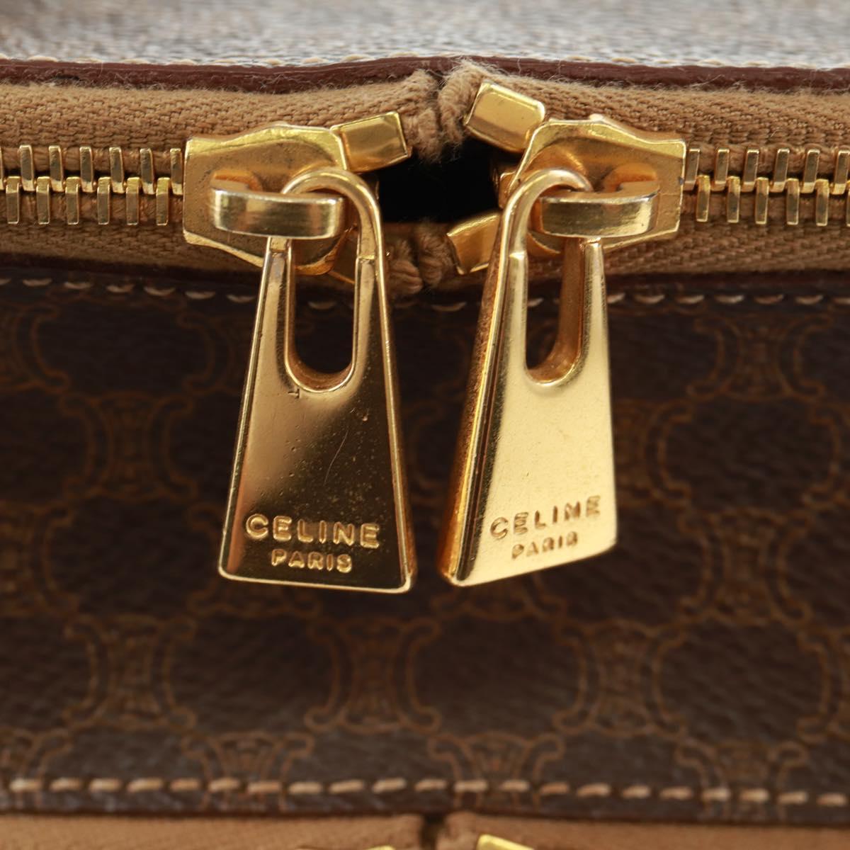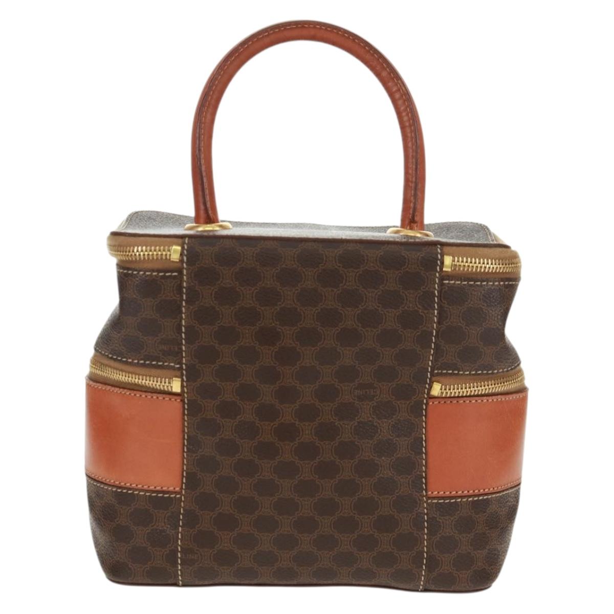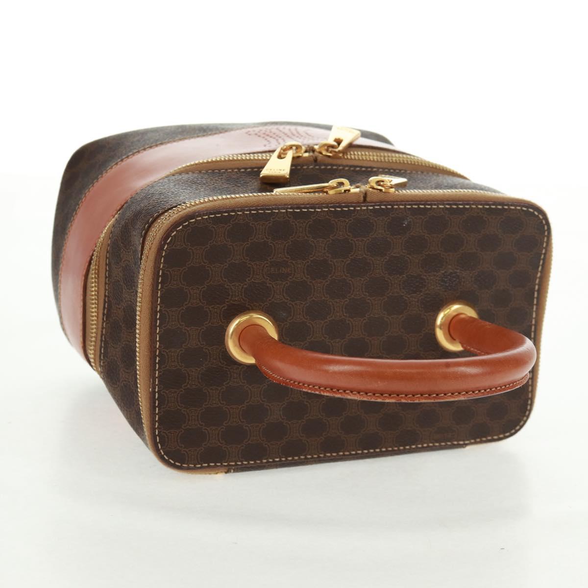 CELINE Vanity Macadam Canvas Hand Bag PVC Leather Brown Gold Auth 163366V
