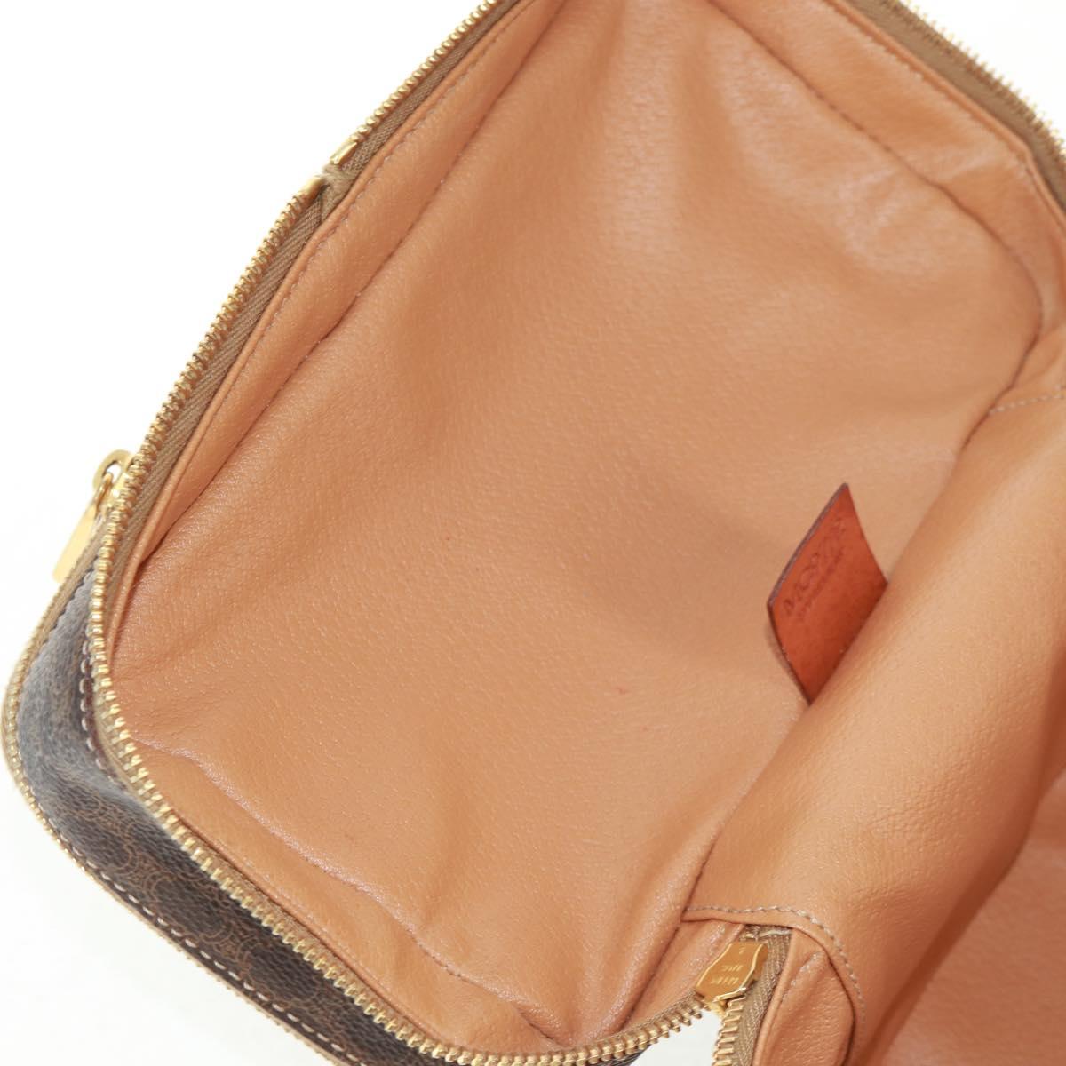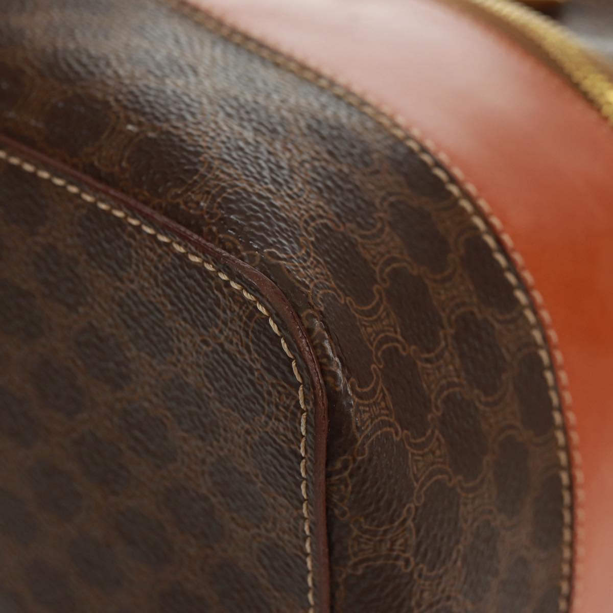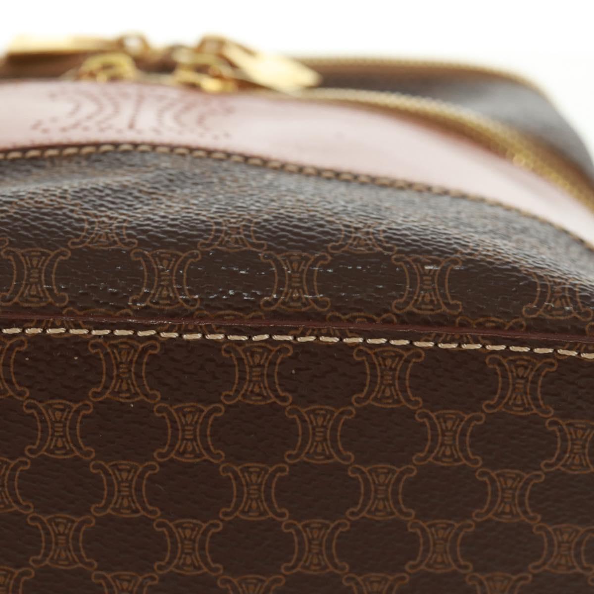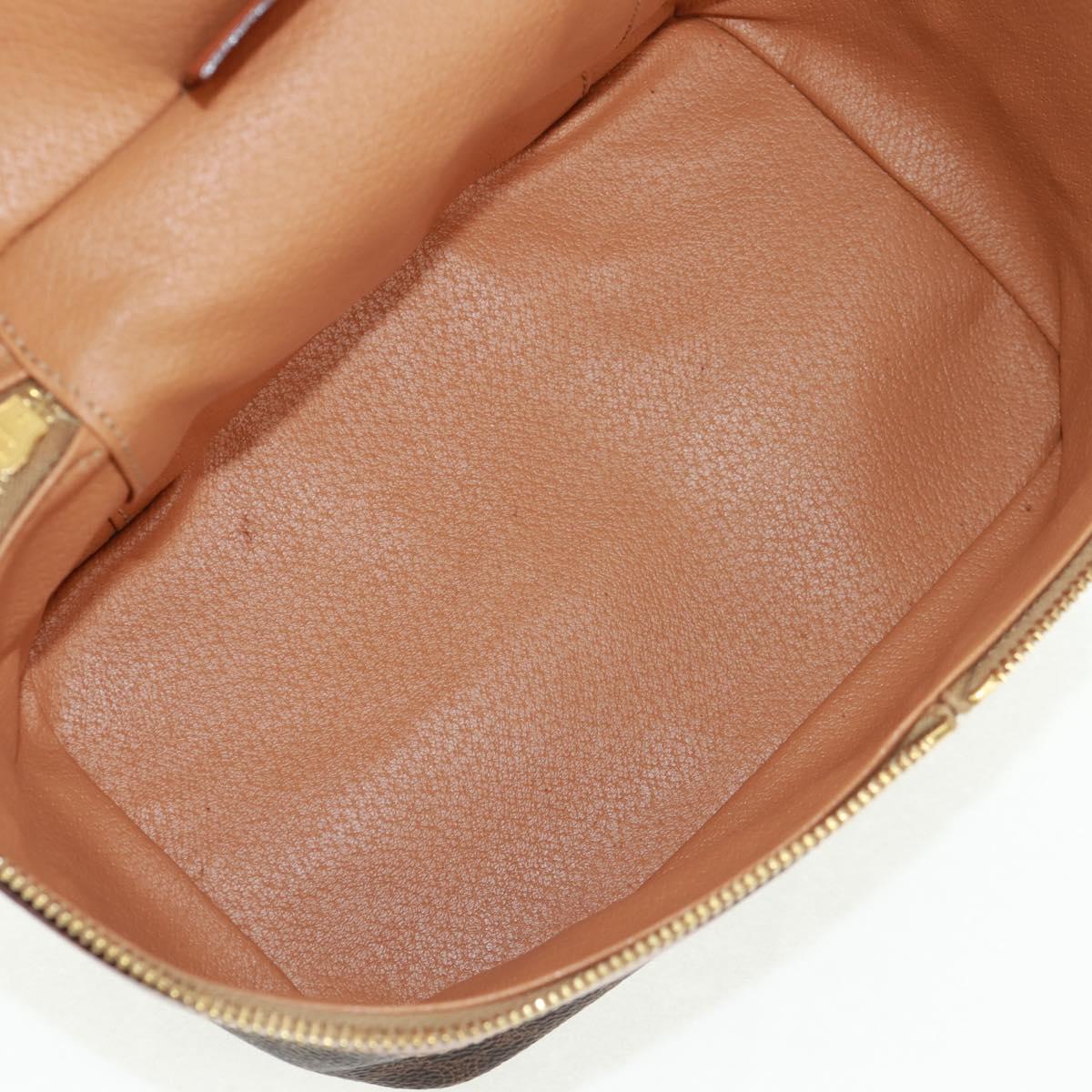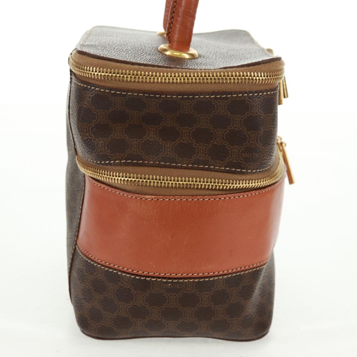 CELINE Vanity Macadam Canvas Hand Bag PVC Leather Brown Gold Auth 163366V